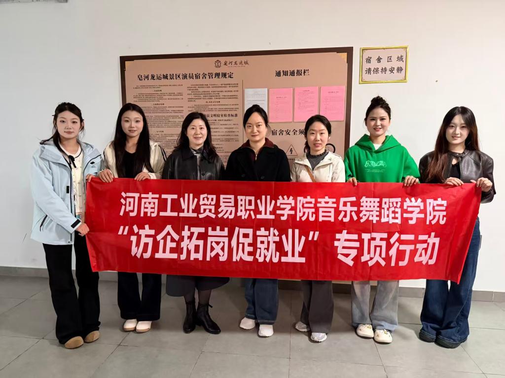 为深入贯彻落实国家关于高校毕业生就业工作的决策部署,精准对接市场需求,拓宽学生实习与就业渠道,2025年11月14日,河南工业贸易职业学院音乐舞蹈学院院长李晖、副院长范殿红及舞蹈教研室主任杨起帆一行,赴宿迁文旅集团开展“访企拓岗”专项调研活动。本次活动旨在通过实地走访,深入了解行业发展趋势与企业用人需求,推动学院专业建设与人才培养模式改革,实现校企供需的精准对接。
