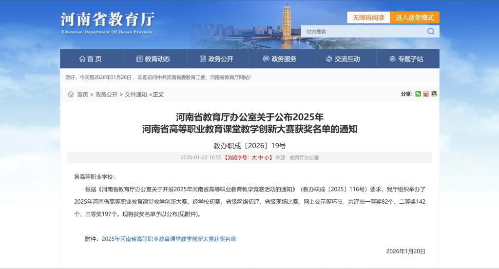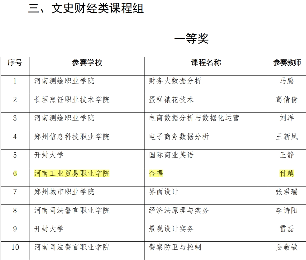 近日由河南省教育厅主办的2025年河南省高等职业教育课堂教学创新大赛获奖名单公布,我院教师付越荣获文史财经类一等奖。