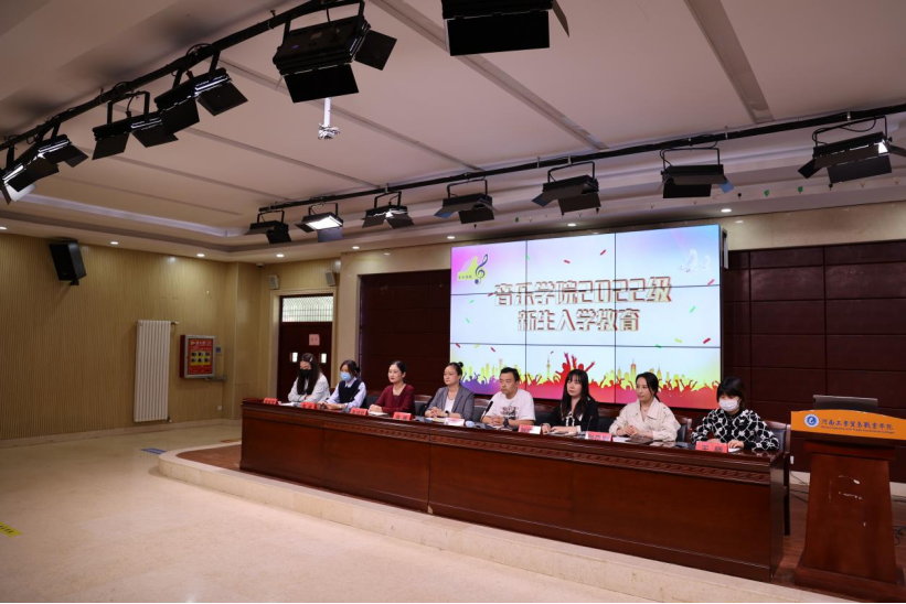 随后,音乐教研室主任李晓莹从课程设置、师资力量以及就业方向进行了详细的介绍;音乐学院团总支书记郭琼惠对安全教育的相关知识进行了详细的讲解;苏妍老师对国家资助政策进行了宣讲;张凤羽老师介绍了学校学生管理相关制度并强调了疫情防控的重要性;包紫筠老师对琴房实训室使用进行了说明;陈曦老师对新生进行了心理健康的讲解。