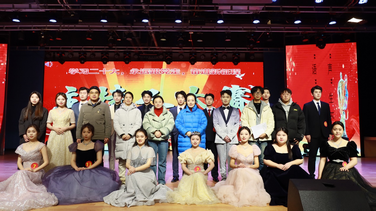 为进一步贯 彻落实党的二十大精神,扎实开展团员和青年主题教育,培育和践行社会主义核心价值观,充分发挥实践育人作用,展现我校学子积极向上,锐意进取的良好精神风貌。12月19日,由校团委主办的第十七届“金话筒”校园主持人大赛在学术报告厅顺利举行。校团委全体老师及各二级学院团总支书记、校级学生组织代表、各二级学院学生代表参加本次活动。团委副书记田莉莉、社团部主任岳杰、经济贸易学院团总支书记宁光立、团委老师王璇担任本次大赛评委。本次比赛采用“线上线下”相结合的方式,吸引了近万名同学关注参与。