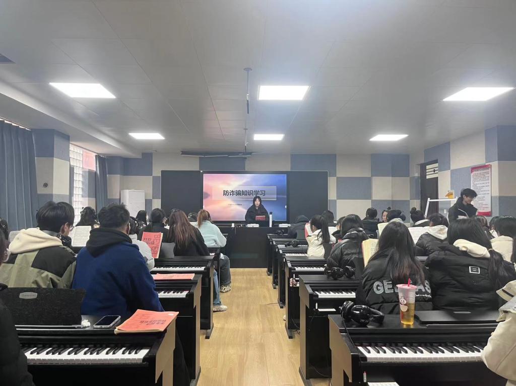 为进一步加强同学们防诈骗安全教育,提高同学们防范、识别网络电信诈骗的意识和能力,维护人身财产安全,助力无诈校园建设。12月25日至28日,音乐学院在各班开展防诈骗主题班会。