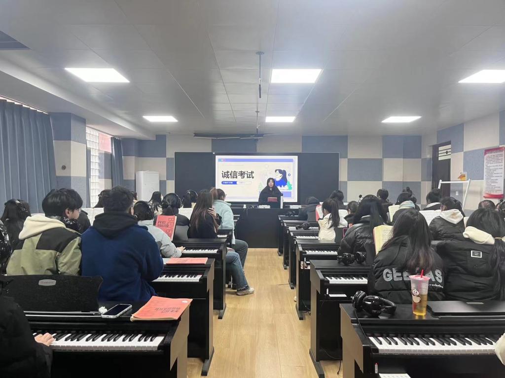 为培养学生的诚信意识,端正学生对学习和考试的态度,弘扬诚信精神,严格遵守学校考试规章制度,音乐学院于2023年12月27日各班开展了“诚信考试,诚信做人”为主题的诚信教育主题班会。