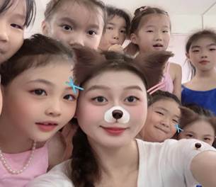 23舞蹈101班张雅琳,暑假在家乡的舞蹈机构中担任舞蹈老师。她的任务是启发及培养小朋友的舞蹈感知力,设计不同的舞蹈教学动作和舞蹈课程。这次实践让她看到孩子们在家乡也能接受到优质的艺术教育,看到他们在舞蹈中展现出的自信和快乐。张雅琳为自己能为家乡的艺术发展贡献了微薄的力量而自豪。