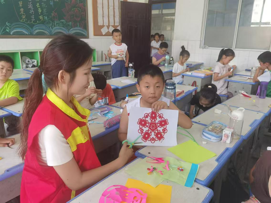 23舞蹈102班韩艺暑期报名参加了新时代文明实践、文化传承以及儿童等多项志愿服务活动。在志愿活动中,她带领孩子们制作出精美的剪纸作品,让孩子们充分体验到了剪纸的乐趣,感受到了中国传统艺术之美,为儿童送去了关爱和快乐。