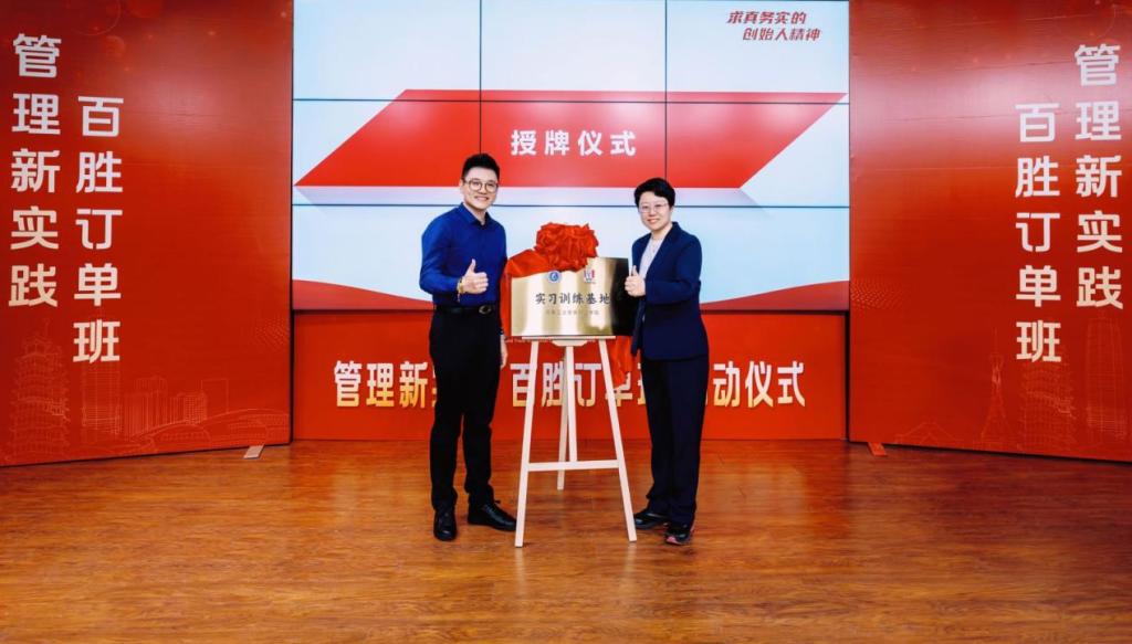 工商管理学院党总支副书记、副院长张慧和郑州肯德基有限公司营运经理王振宇为“百胜订单班”“实习训练基地”授牌。启动仪式上,为首批入选订单班的28名学员颁发录取通知书。郑州肯德基人力资源部经理陈娟娟现场解码百胜中国“职业加速计划”内核,为学员们讲解百胜企业课程设置、实践安排、激励举措。工商管理学院2023级工商管理101班学生代表黄晶瑶发言。