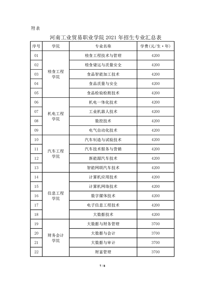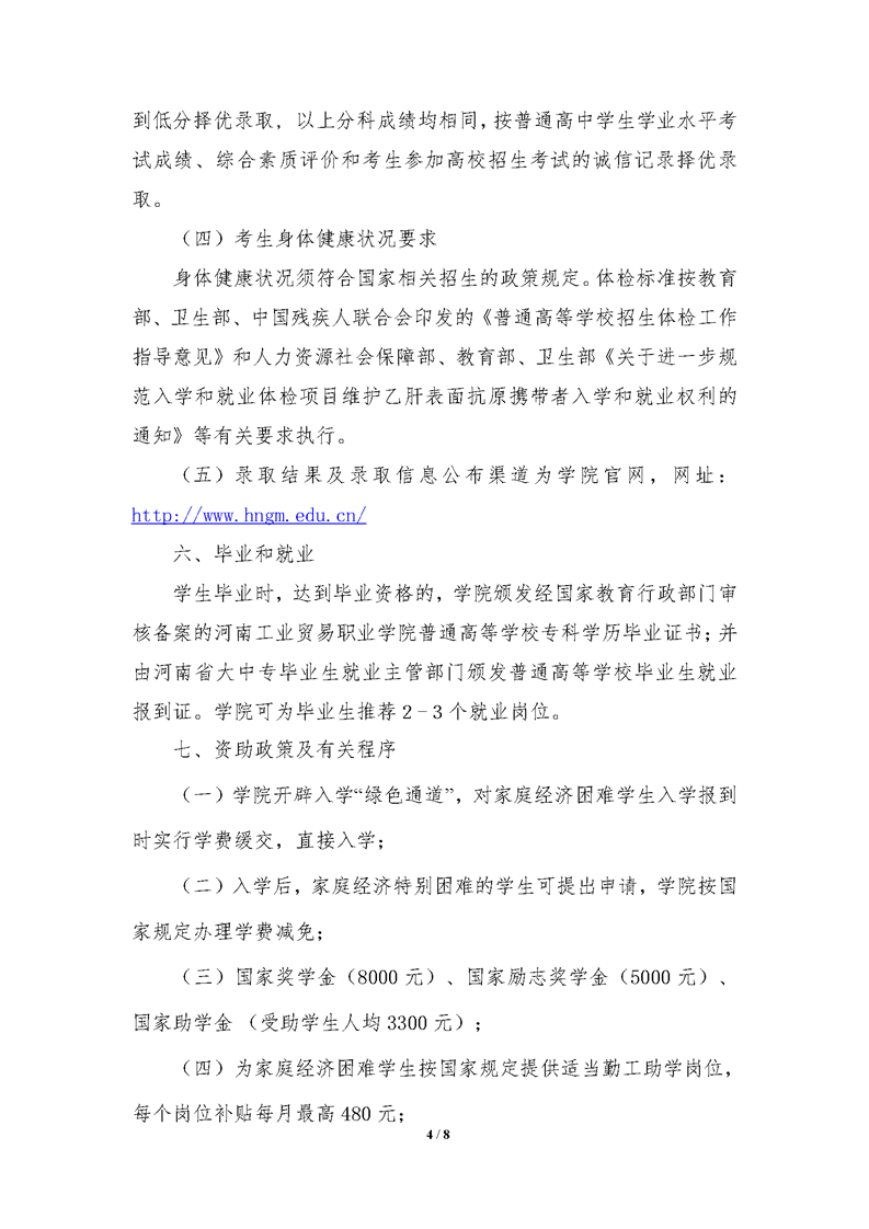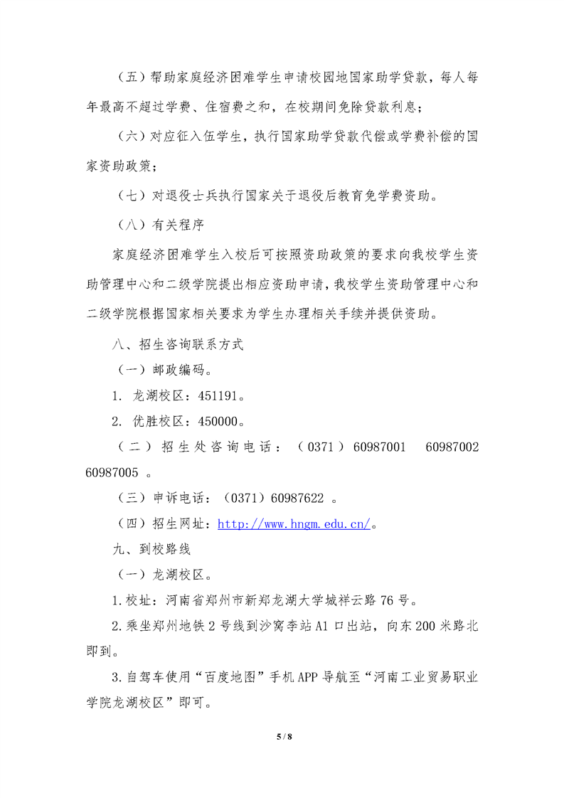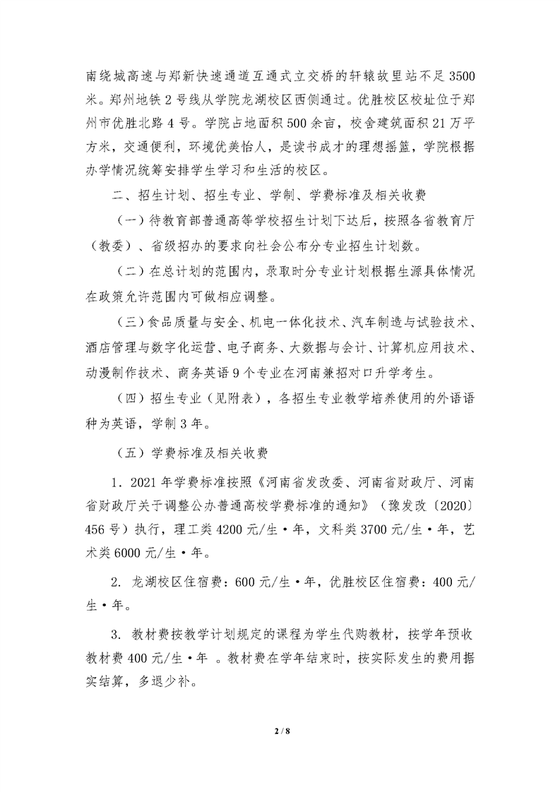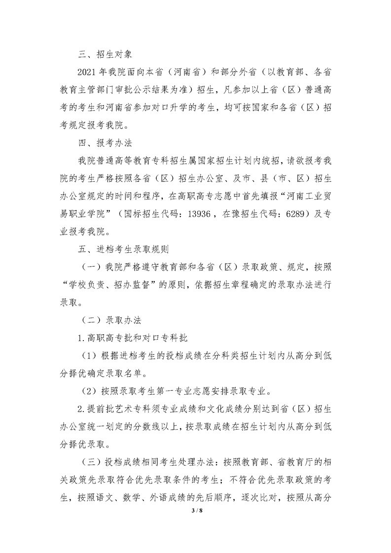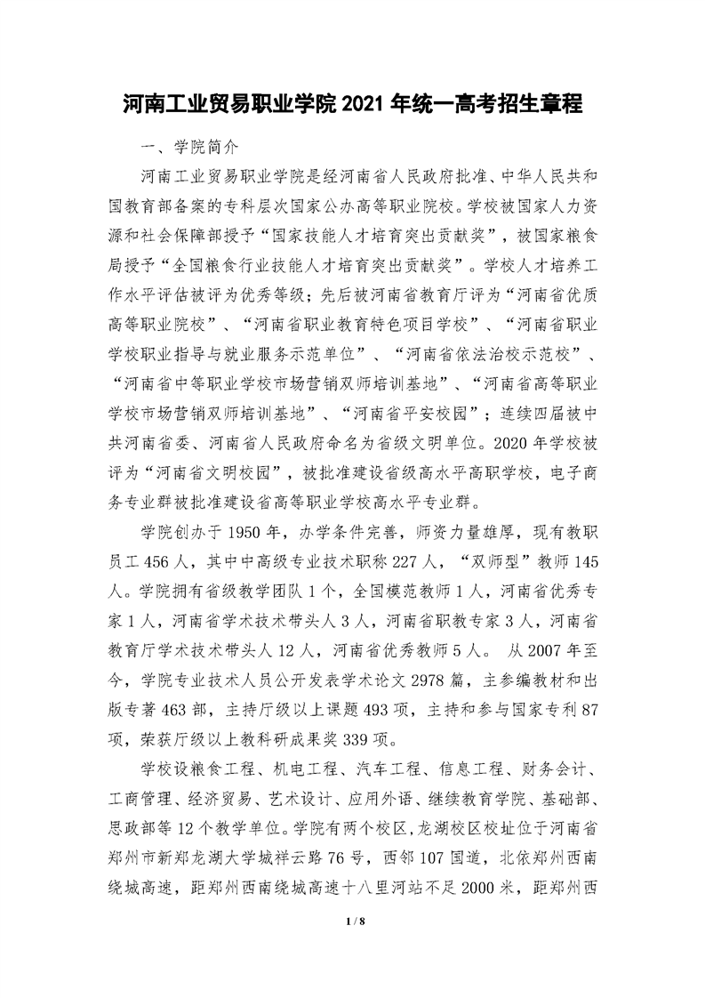 河南工业贸易职业学院2021年统一高考招生章程