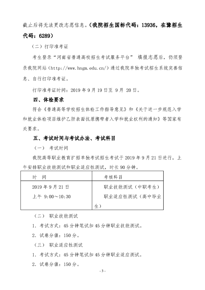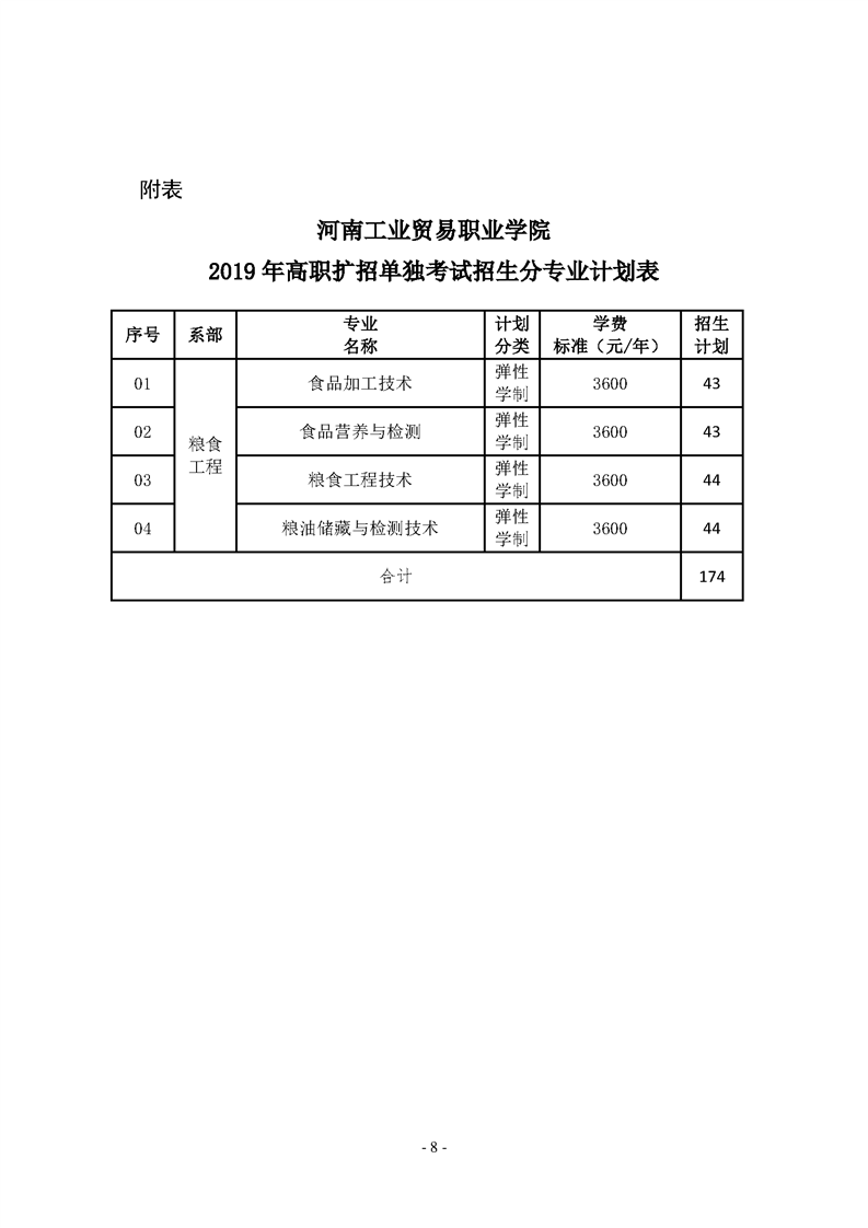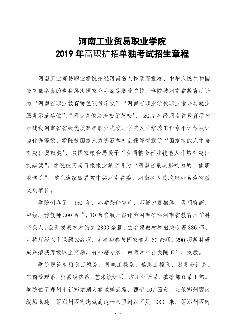 河南工业贸易职业学院 2019年高职扩招单独考试招生章程