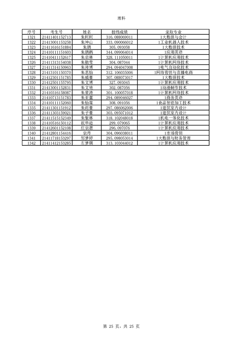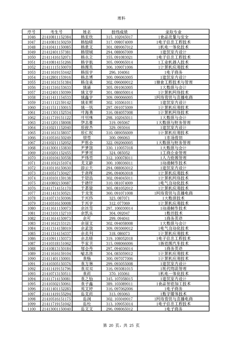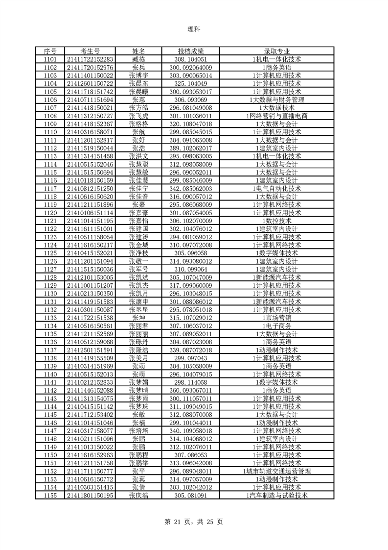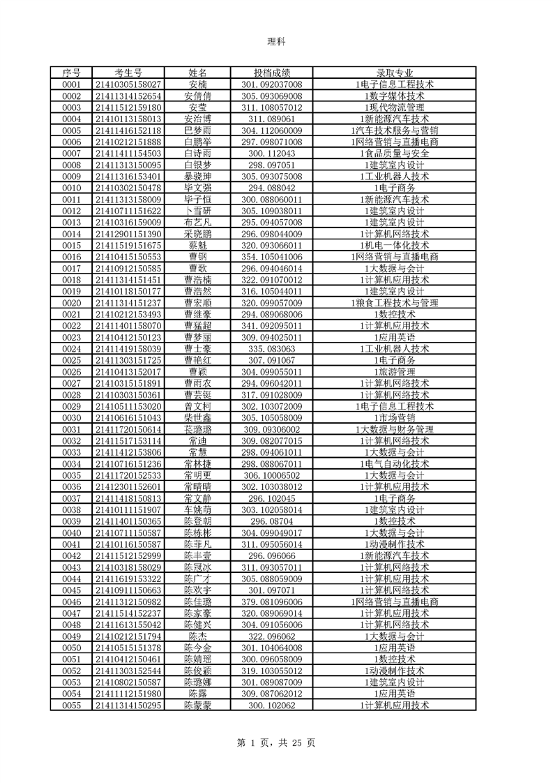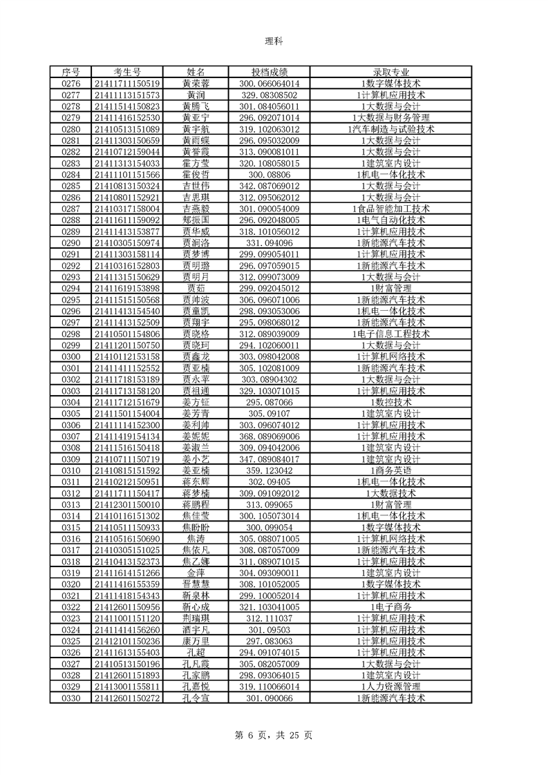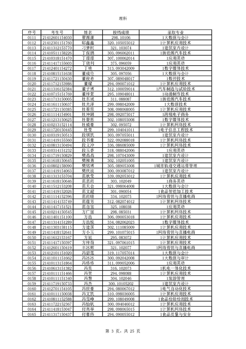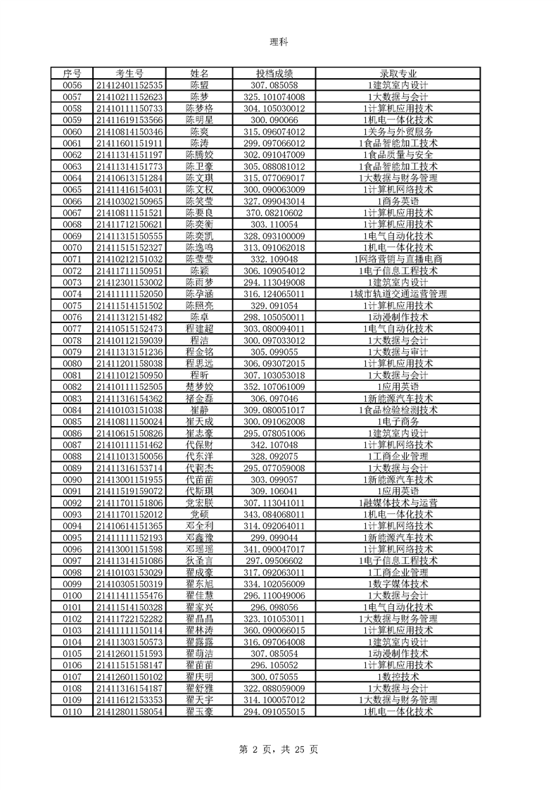 河南工业贸易职业学院2021年高职高专理科录取新生名单(按姓氏排序)