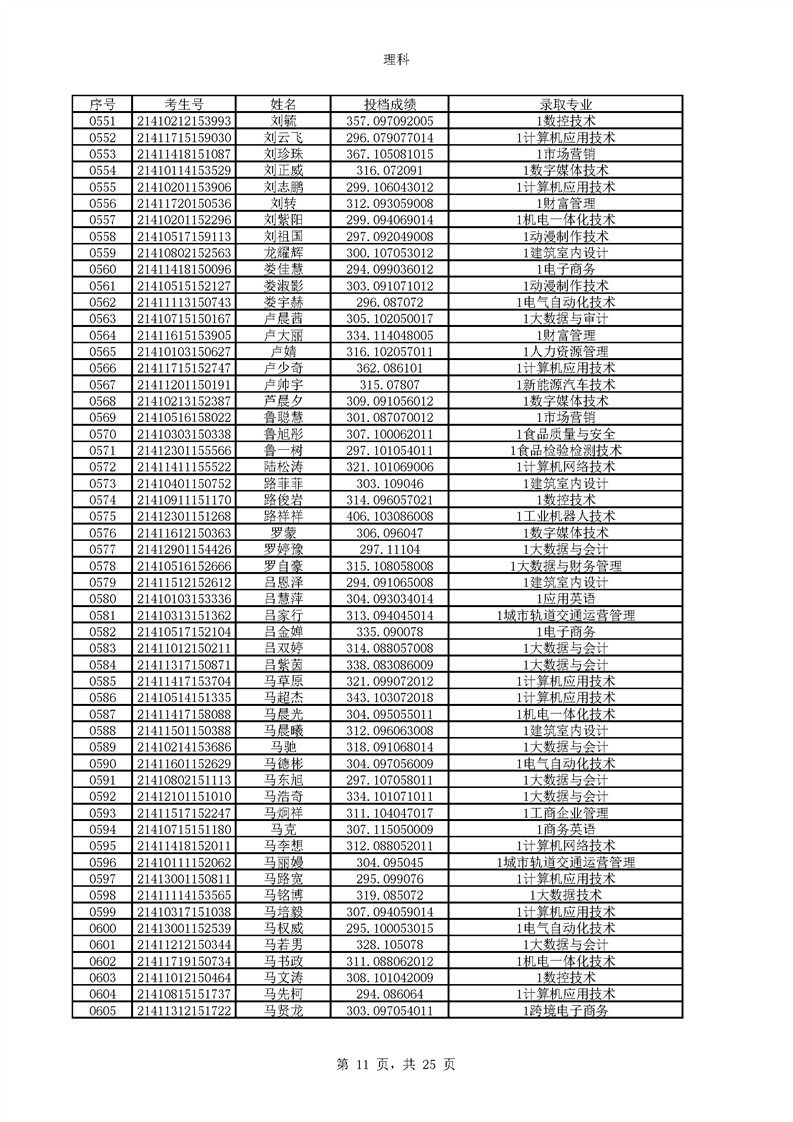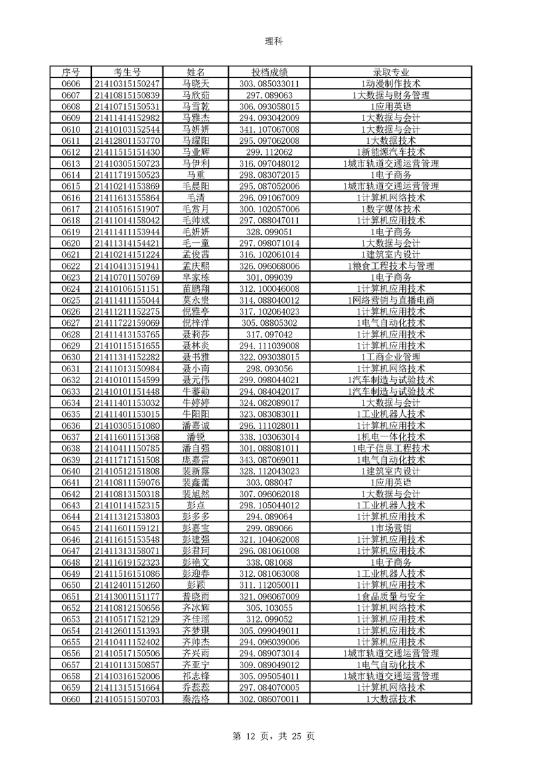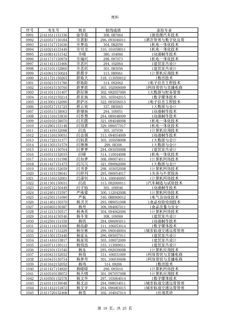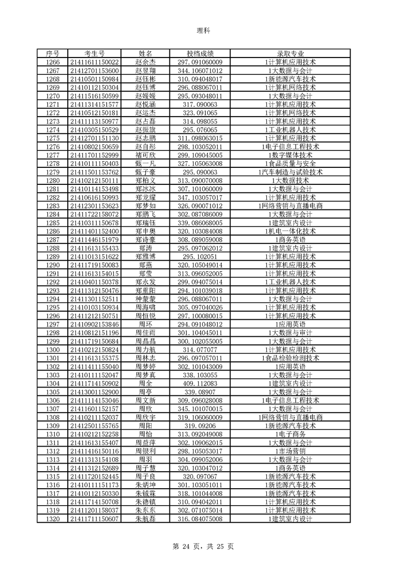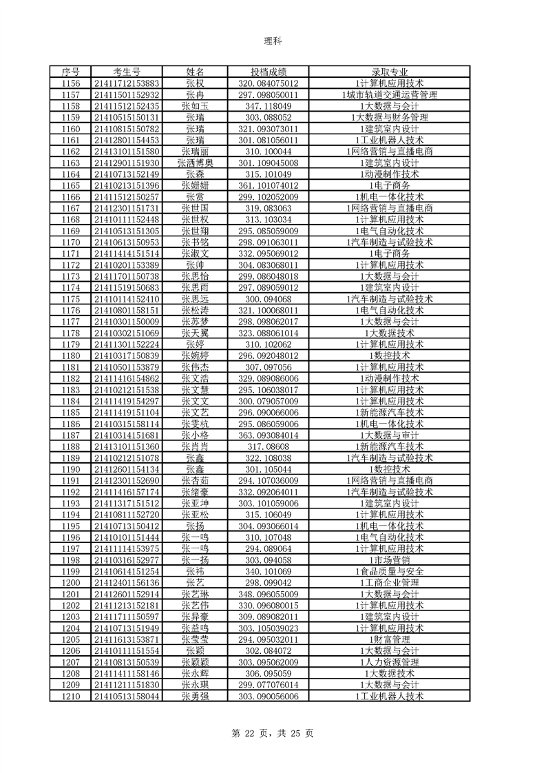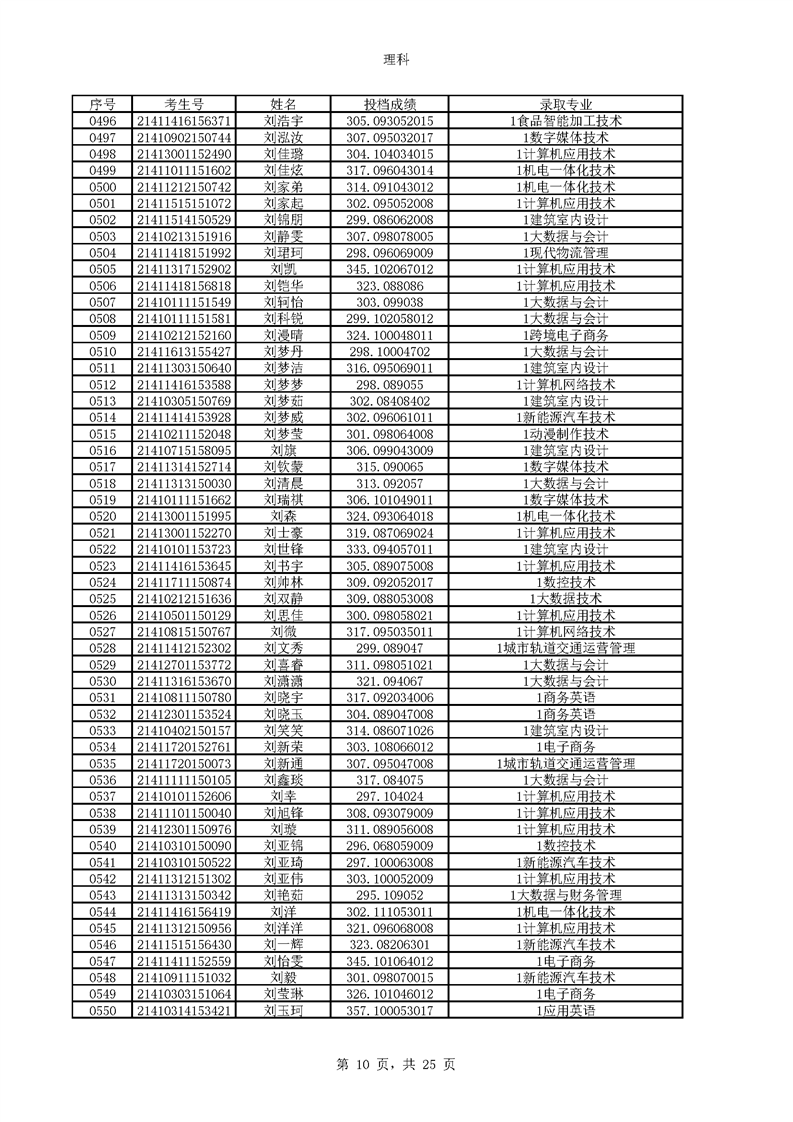 河南工业贸易职业学院2021年高职高专理科录取新生名单(按姓氏排序)