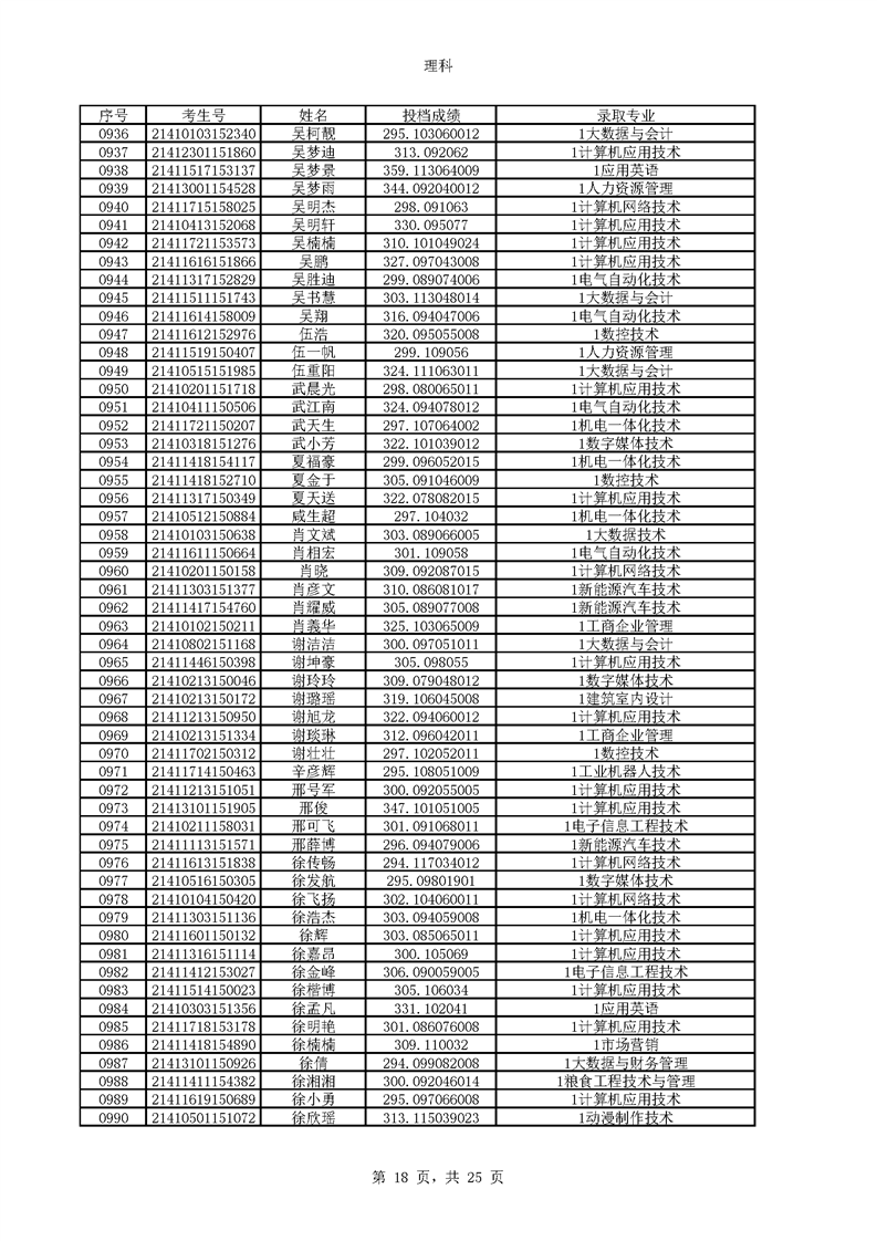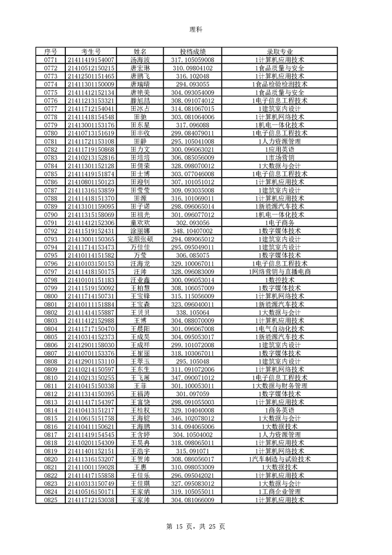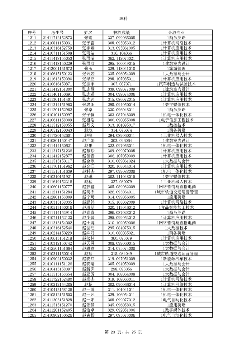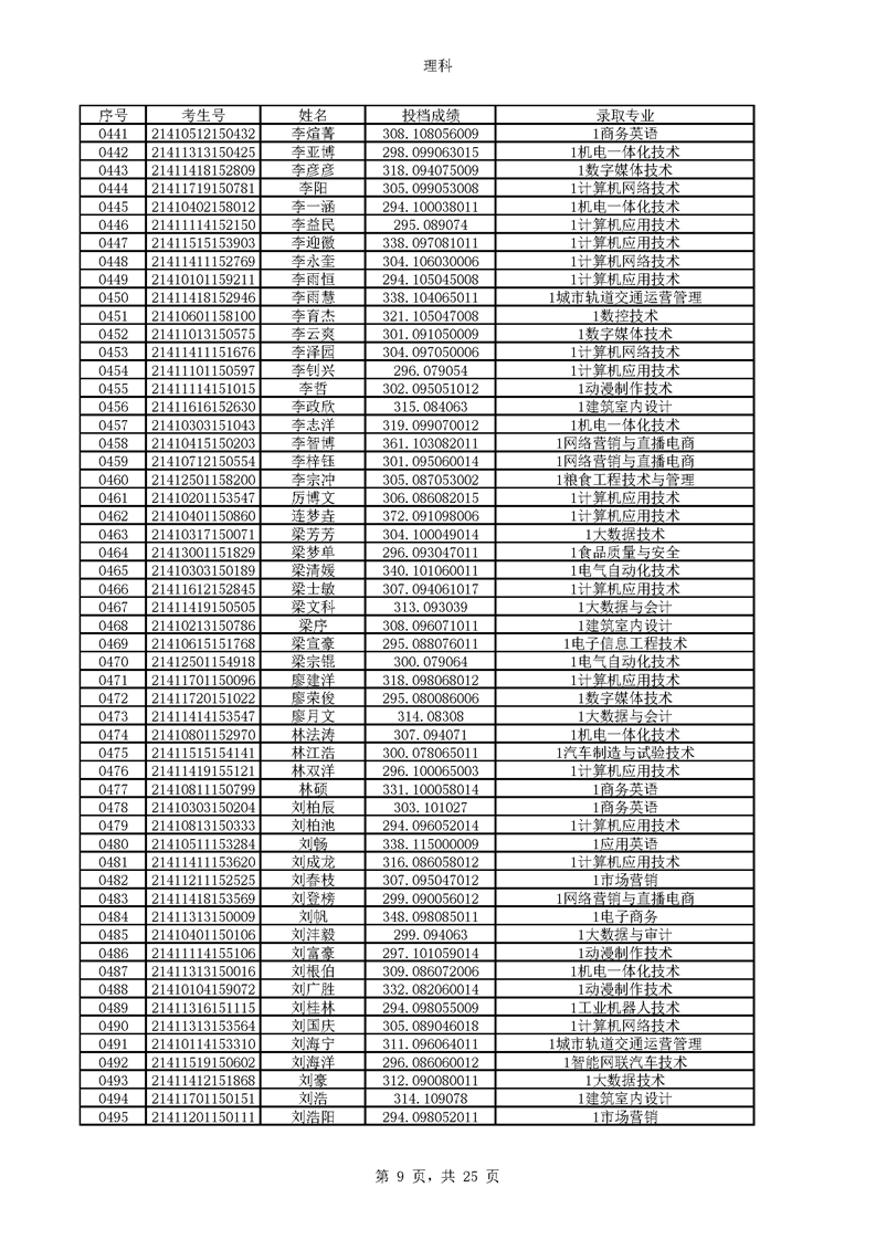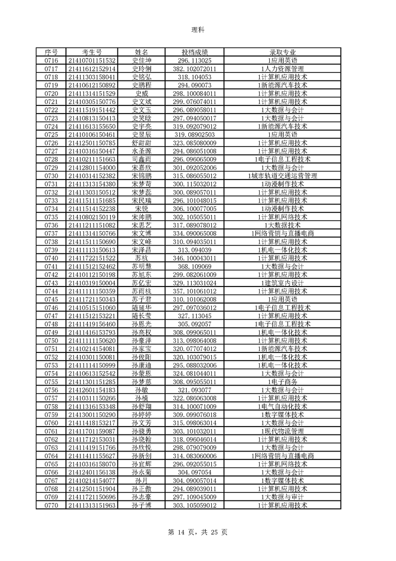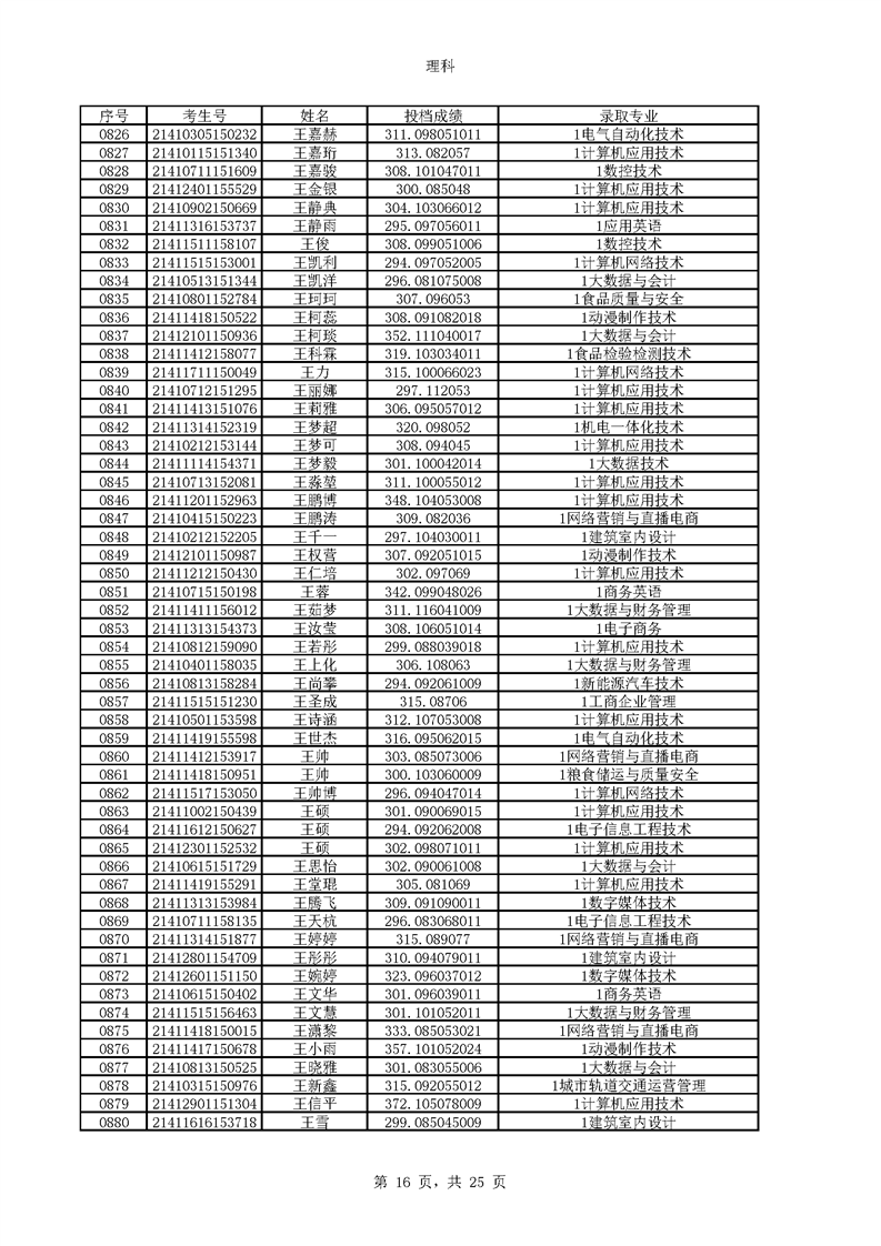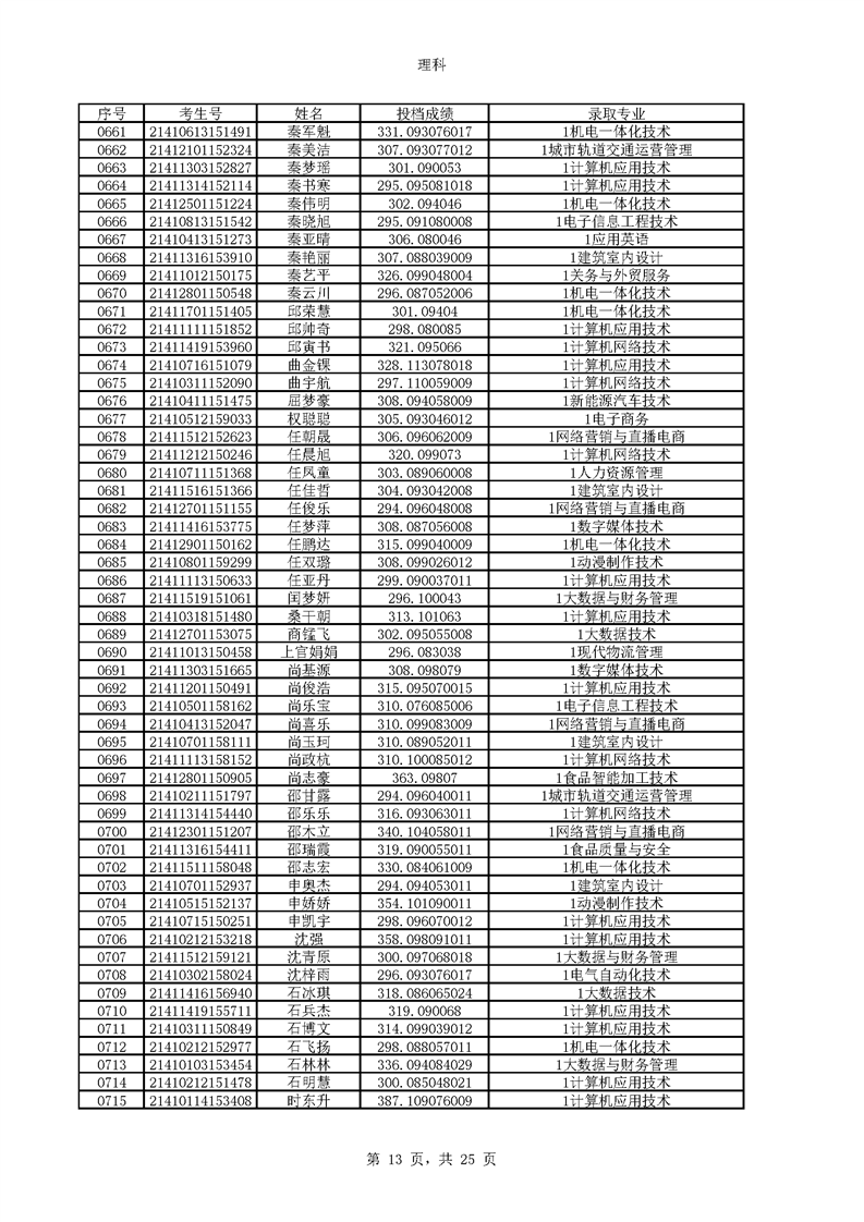 河南工业贸易职业学院2021年高职高专理科录取新生名单(按姓氏排序)
