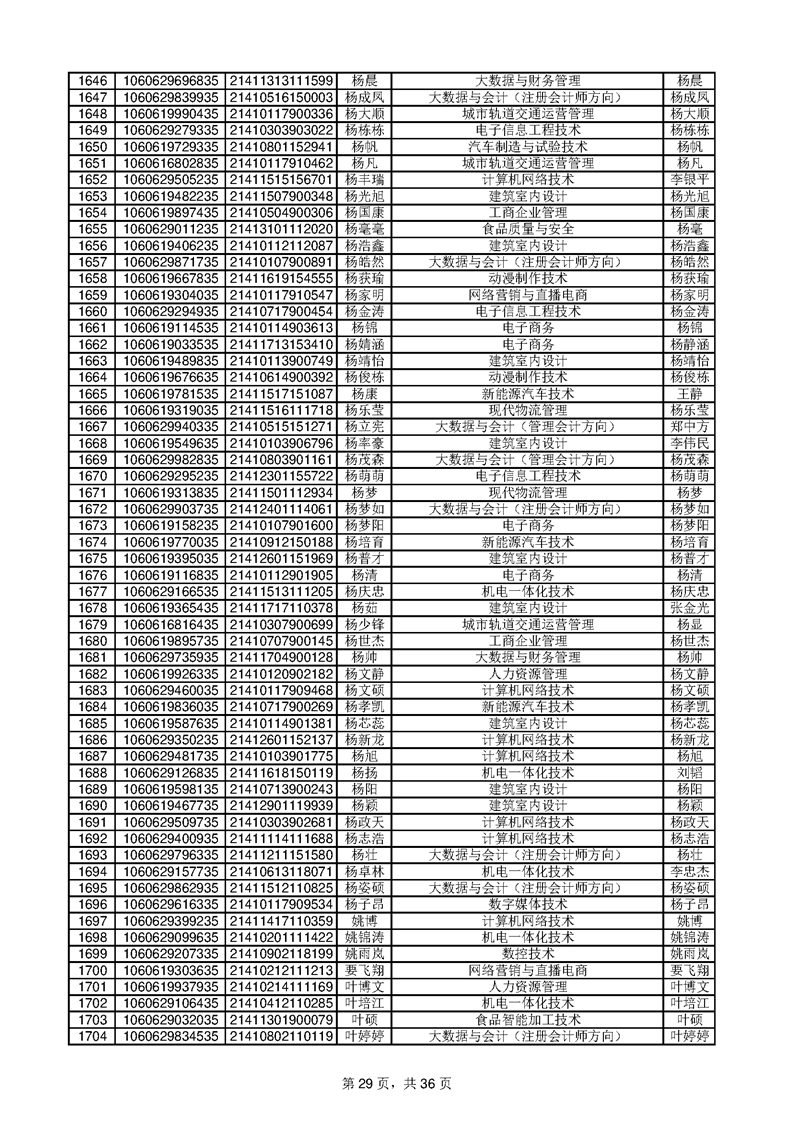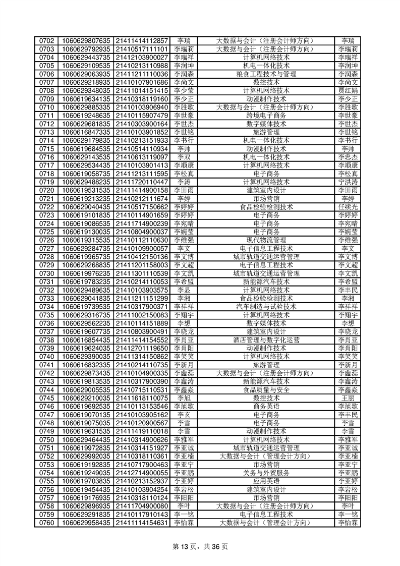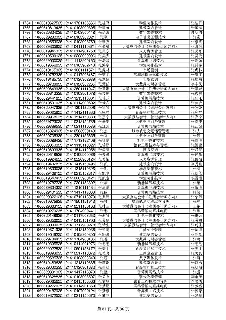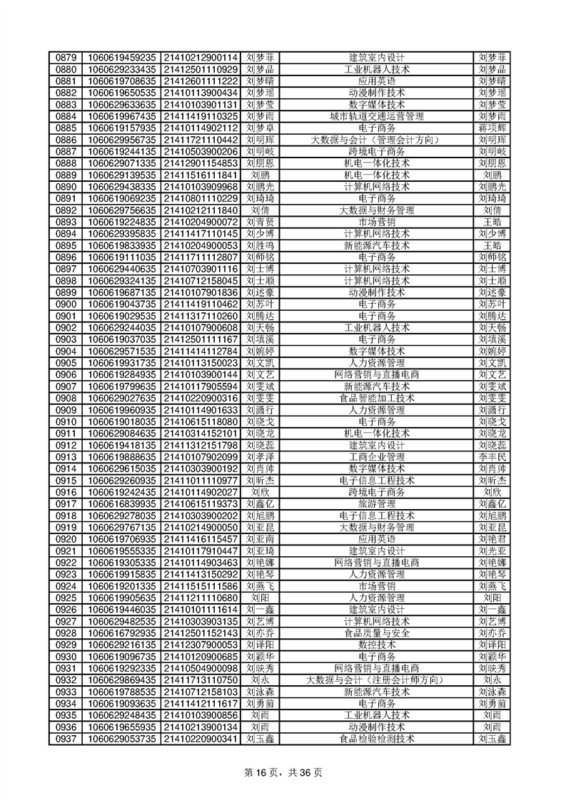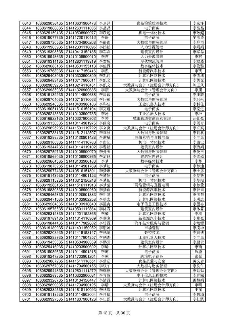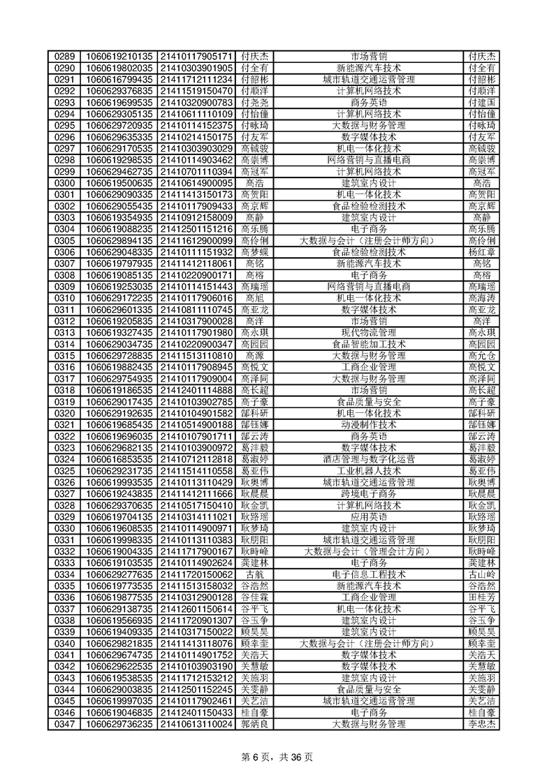河南工业贸易职业学院2021年单独考试招生录取新生录取通知书EMS邮件单号公示(按姓氏排序)
