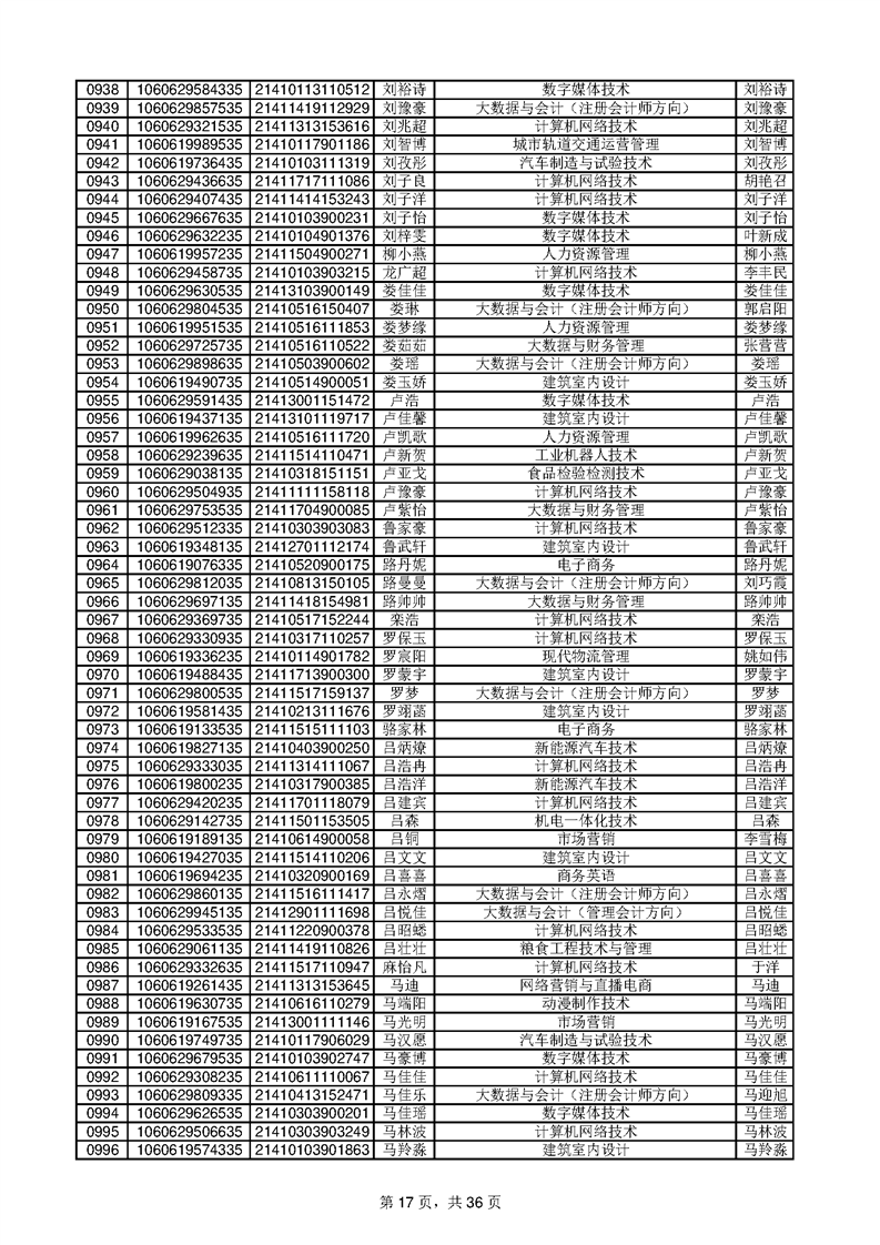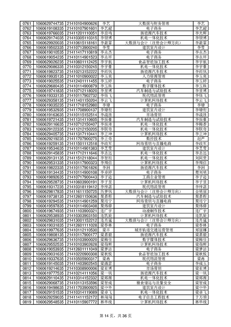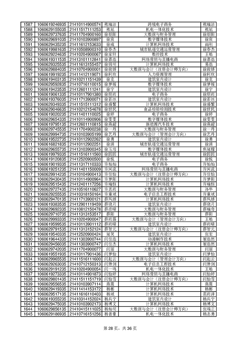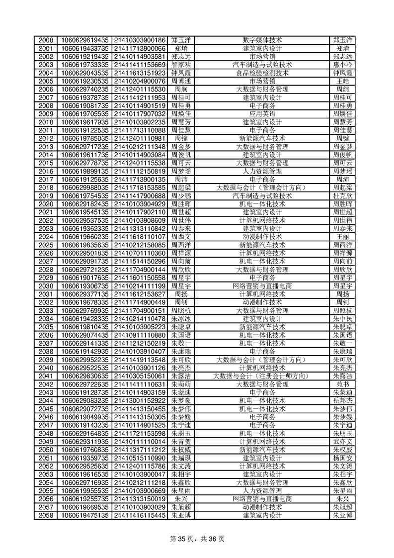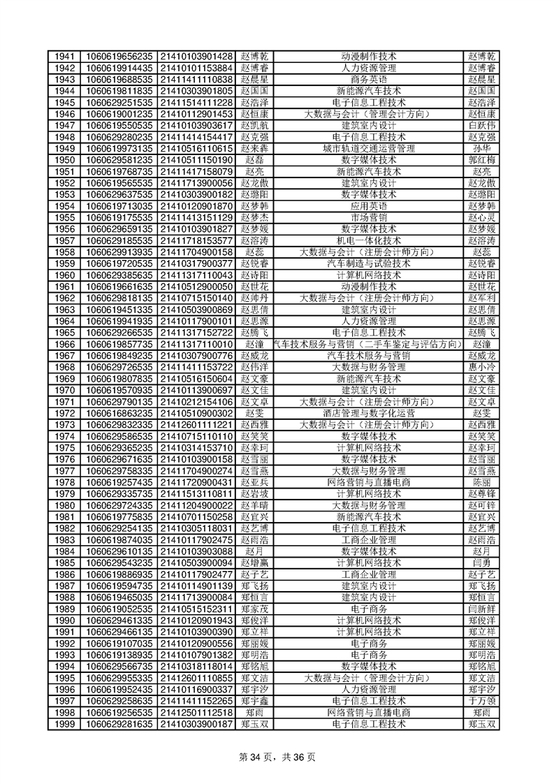 河南工业贸易职业学院2021年单独考试招生录取新生录取通知书EMS邮件单号公示(按姓氏排序)