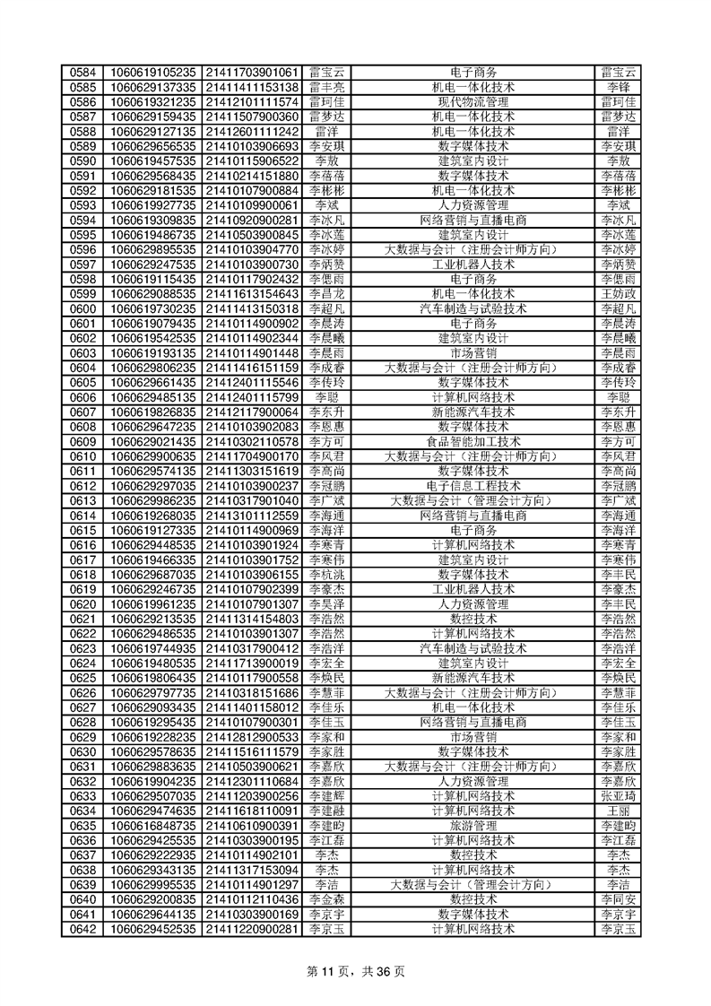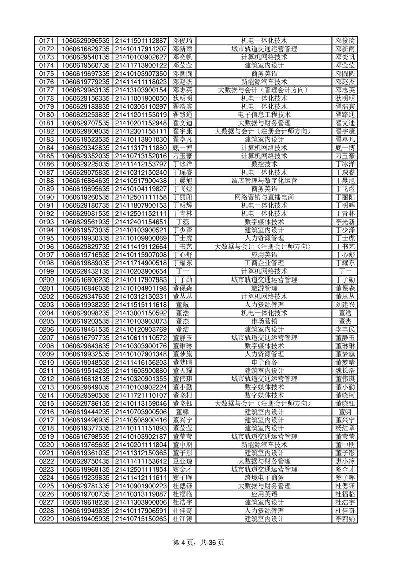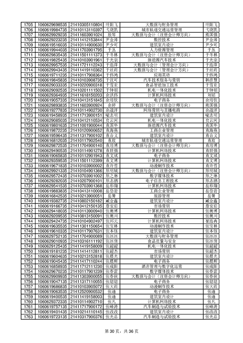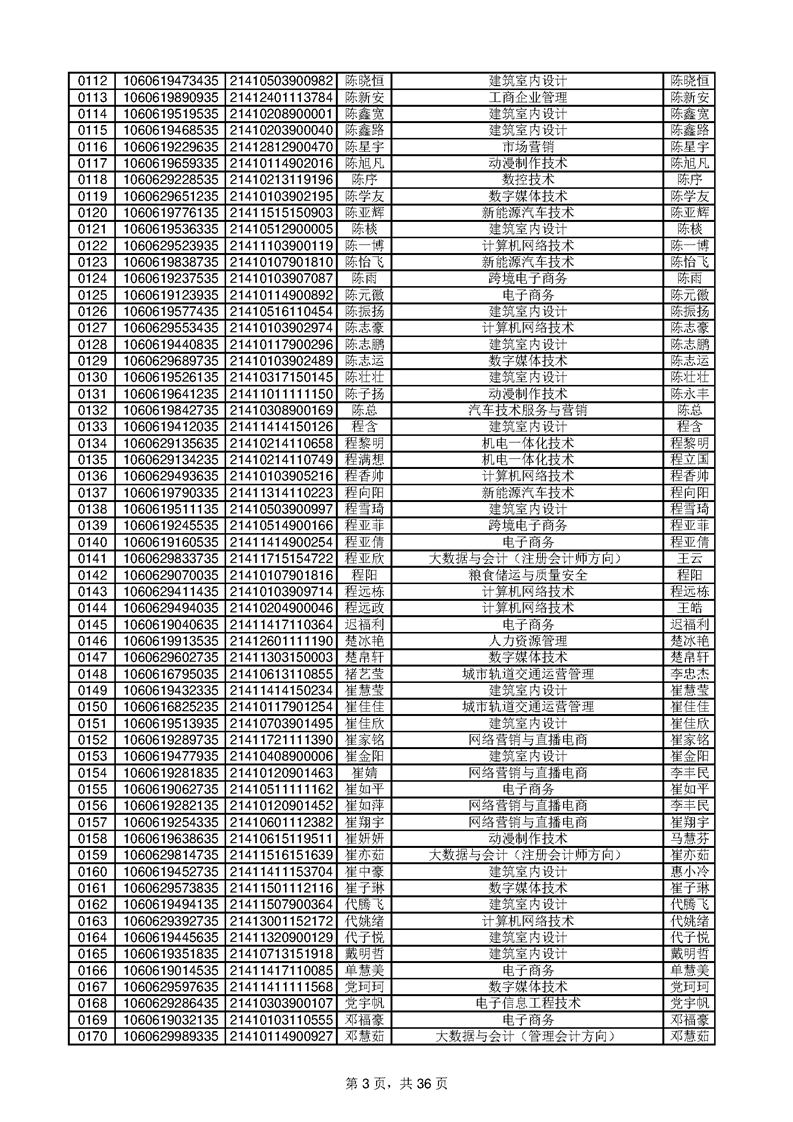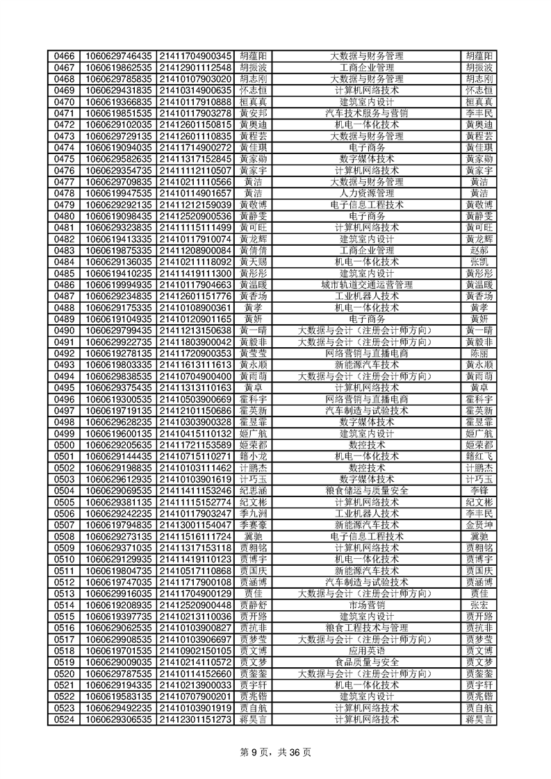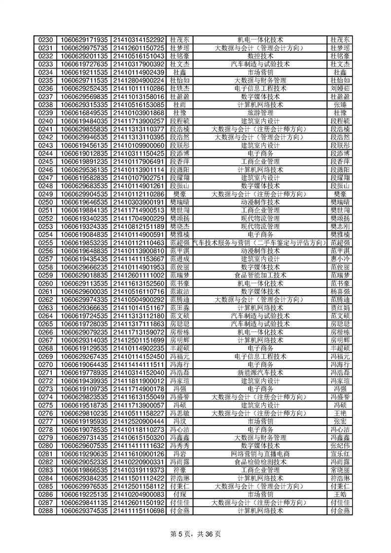 河南工业贸易职业学院2021年单独考试招生录取新生录取通知书EMS邮件单号公示(按姓氏排序)
