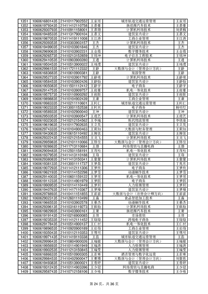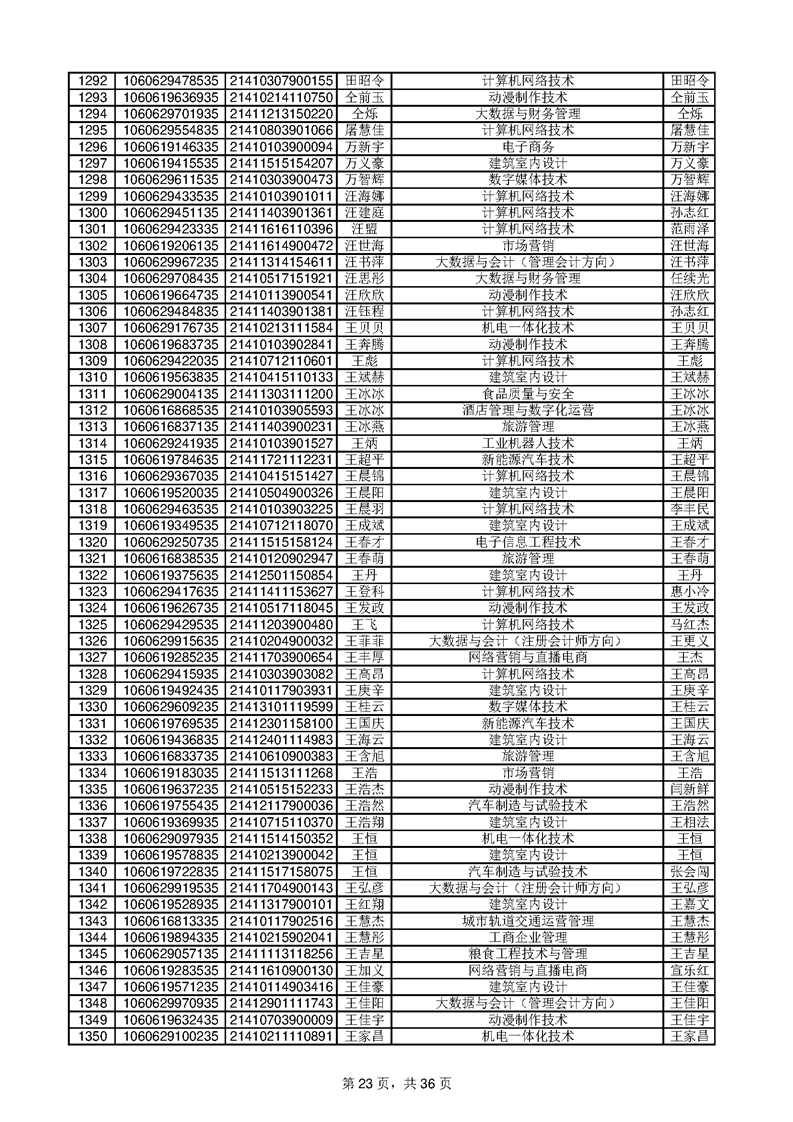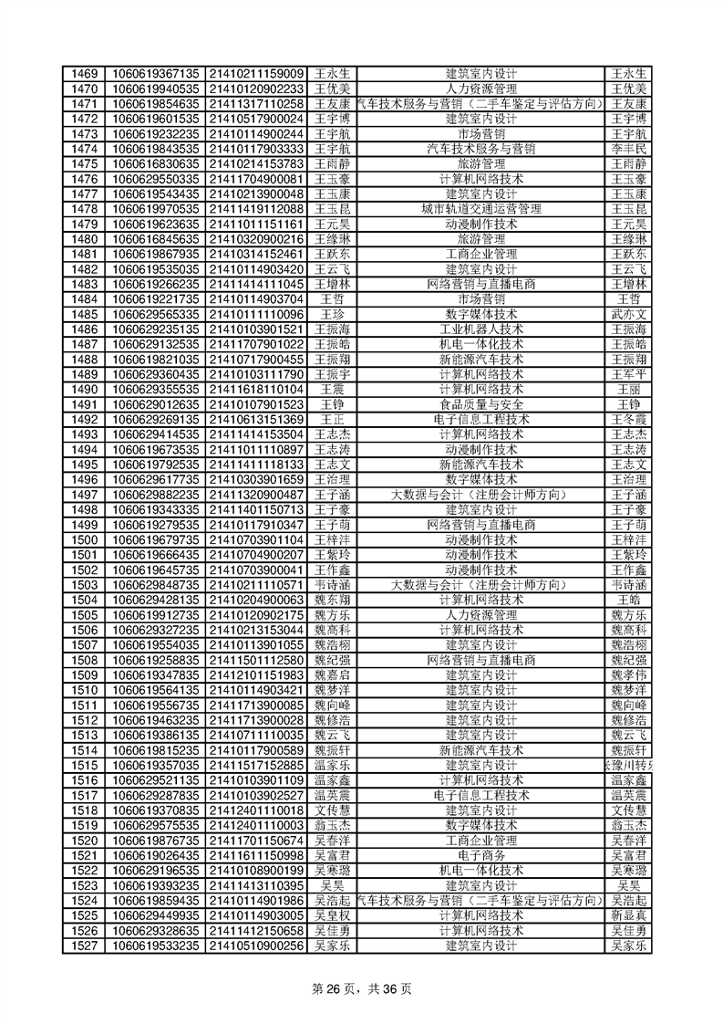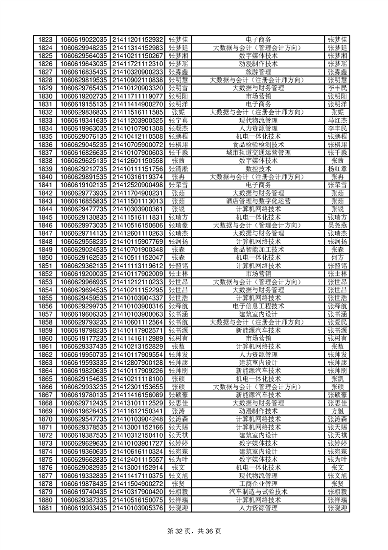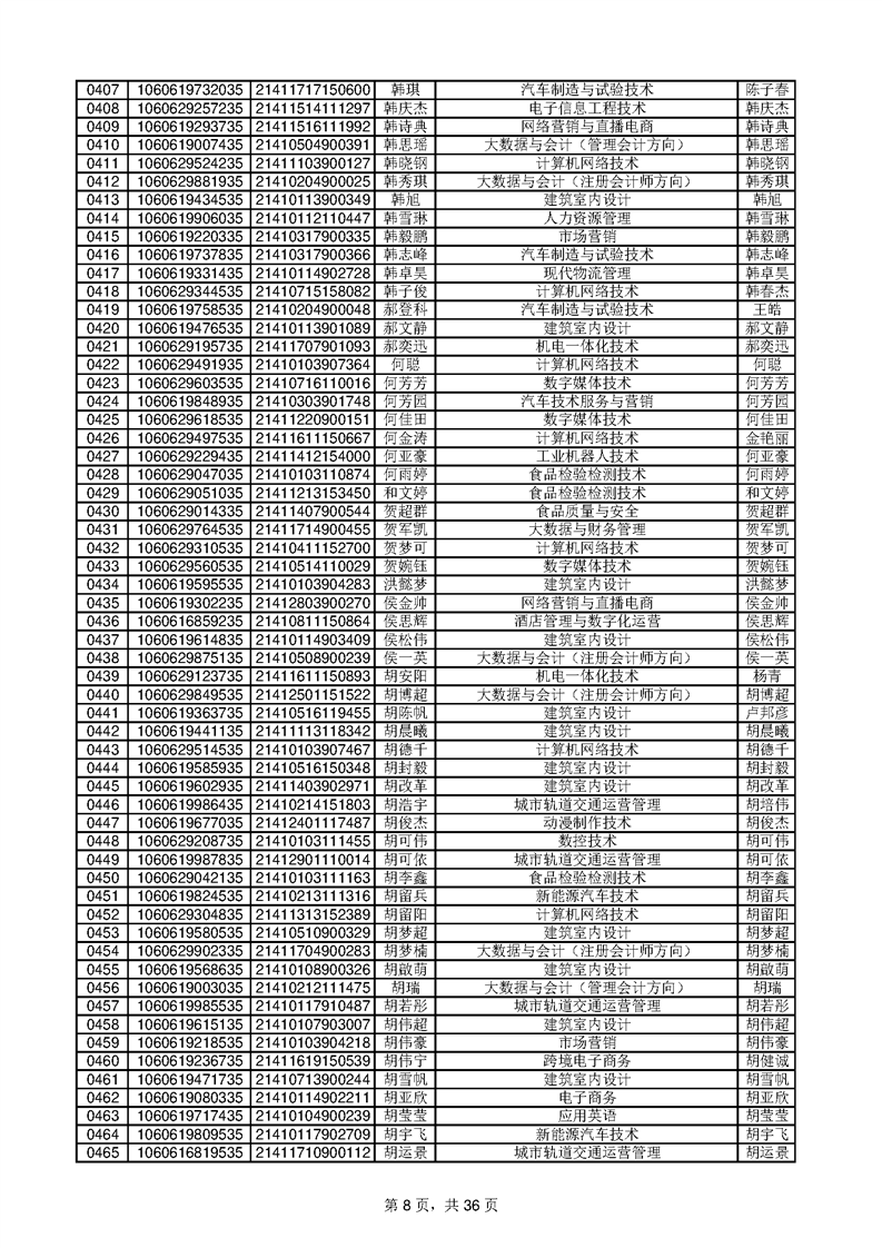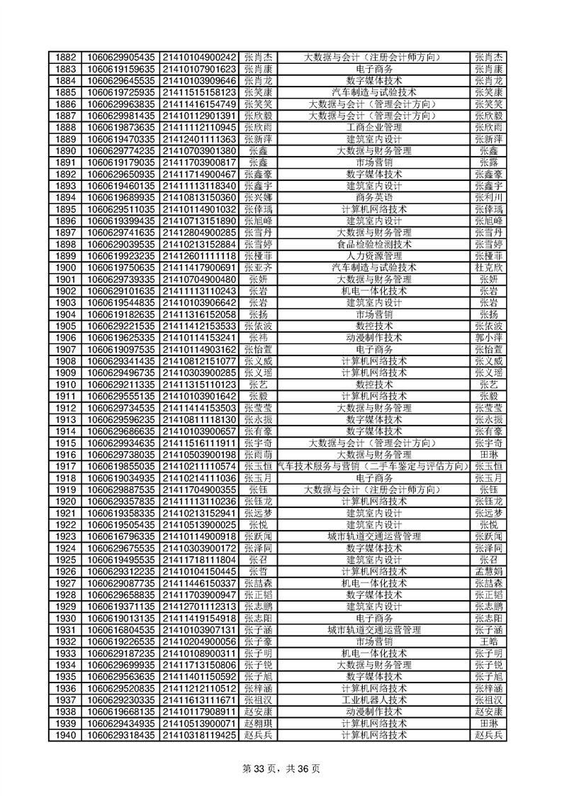 河南工业贸易职业学院2021年单独考试招生录取新生录取通知书EMS邮件单号公示(按姓氏排序)