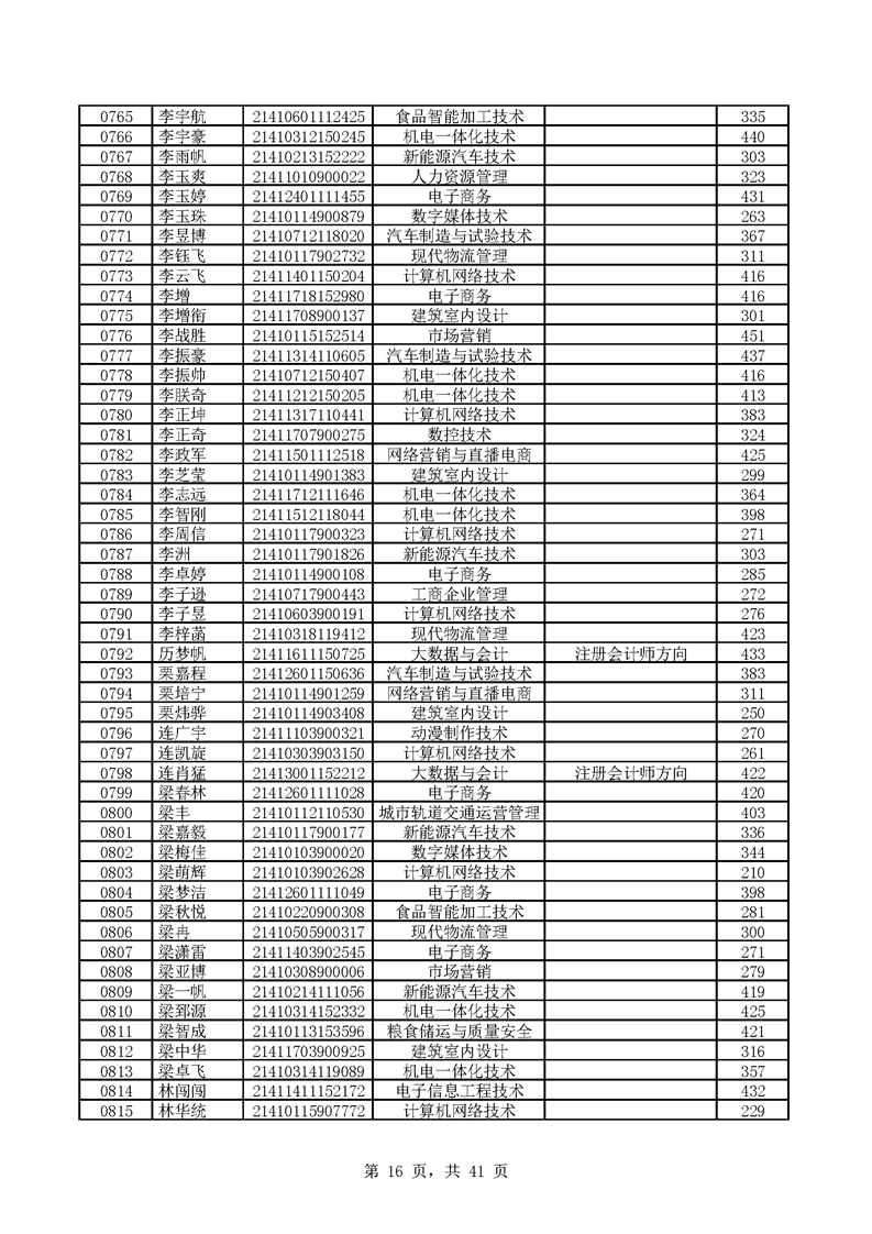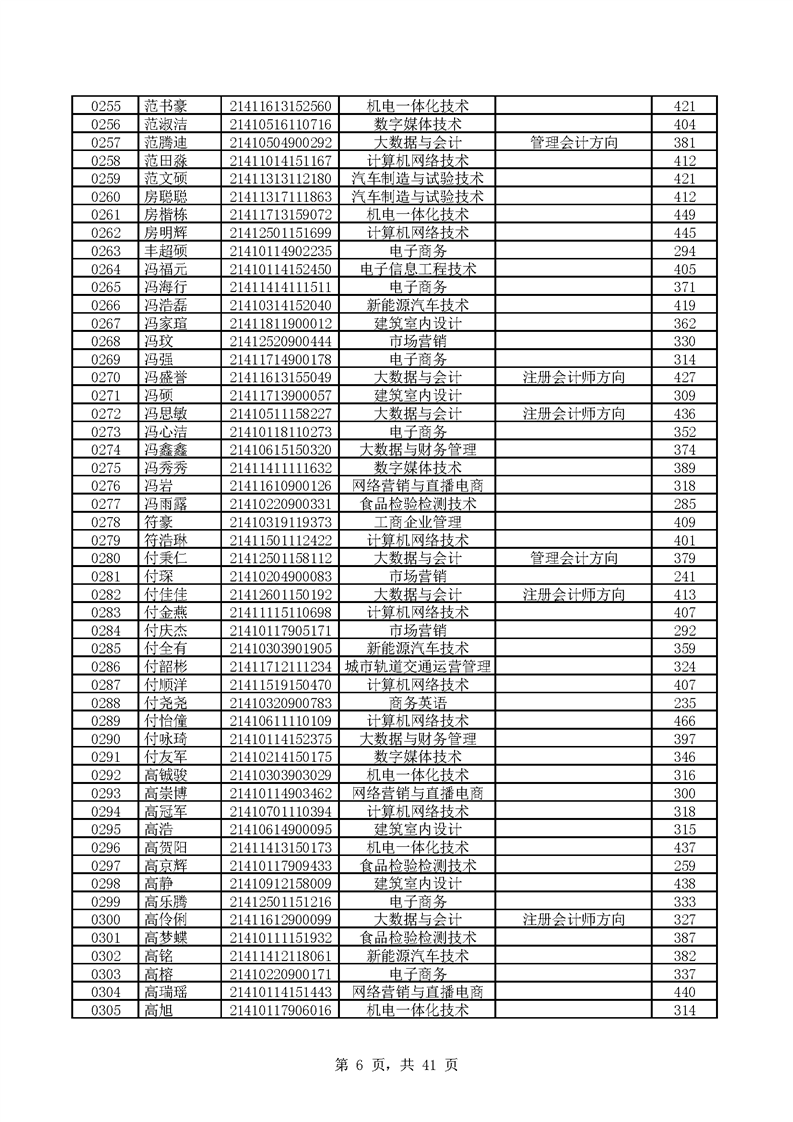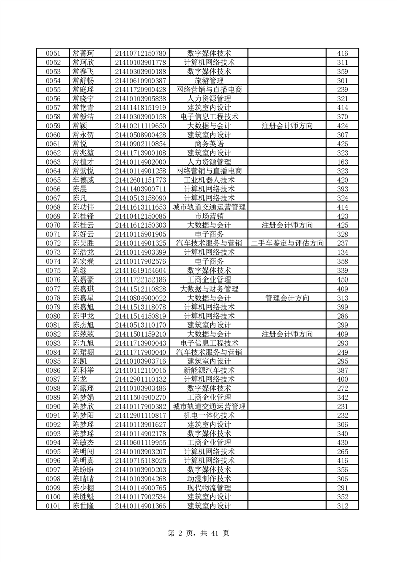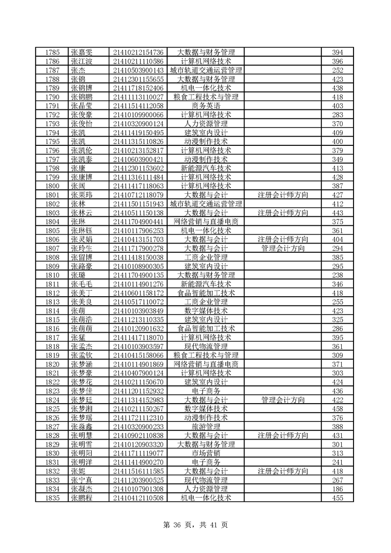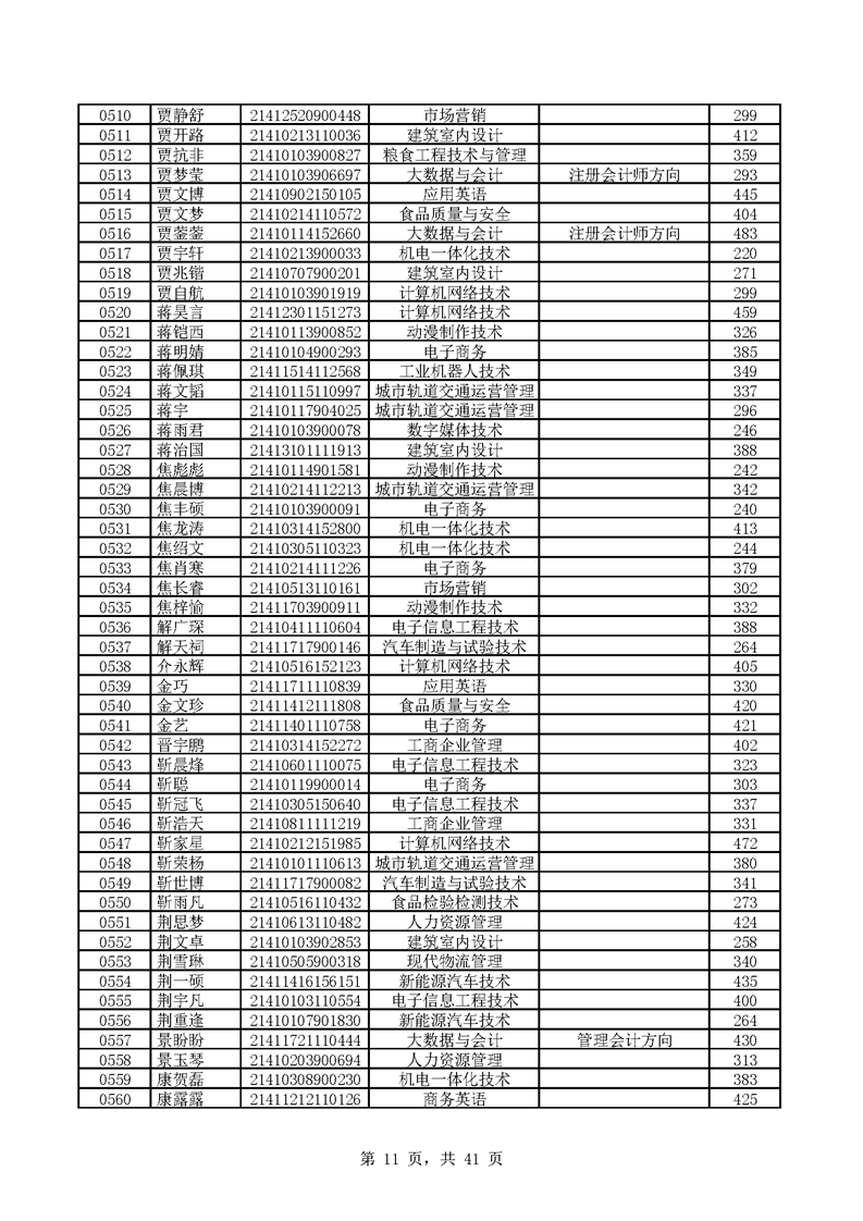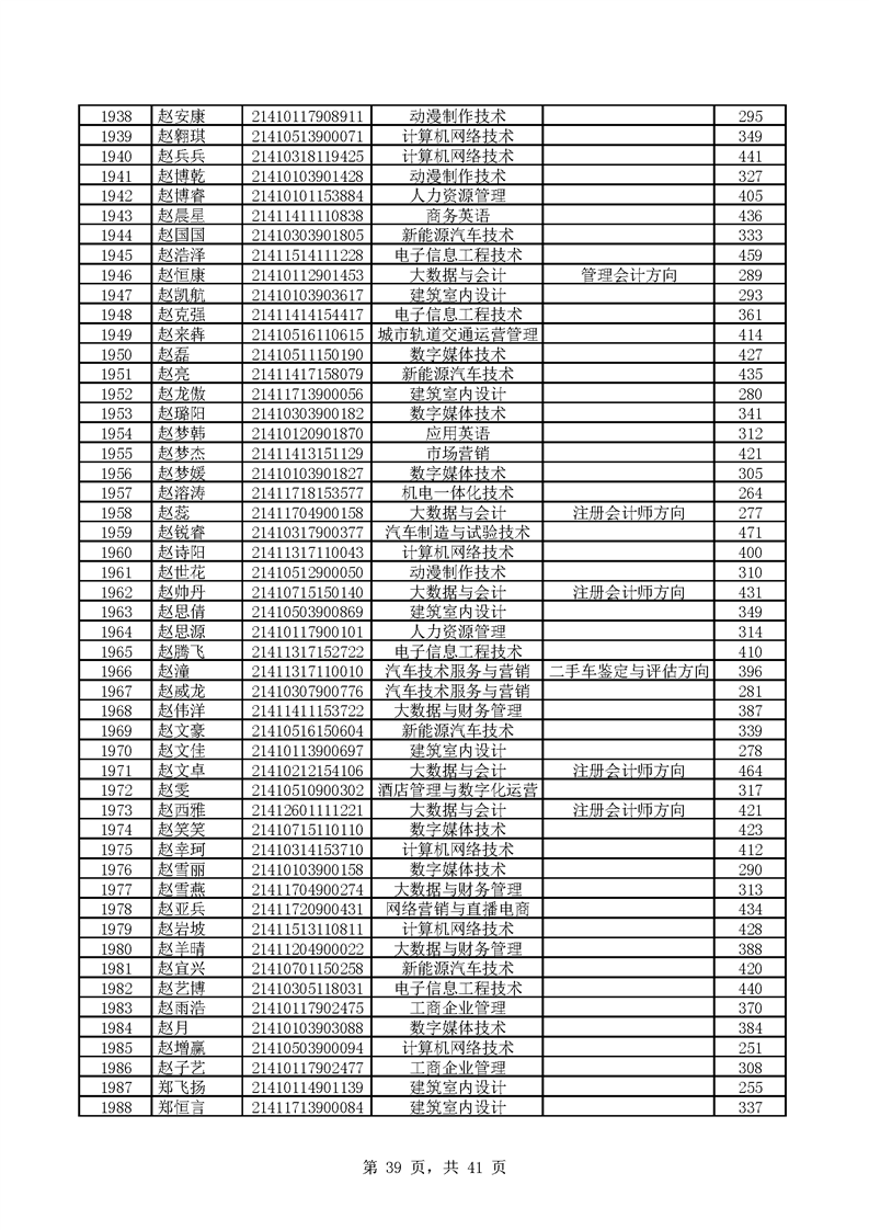 河南工业贸易职业学院 2021年单独考试招生录取名单(按姓氏排序)