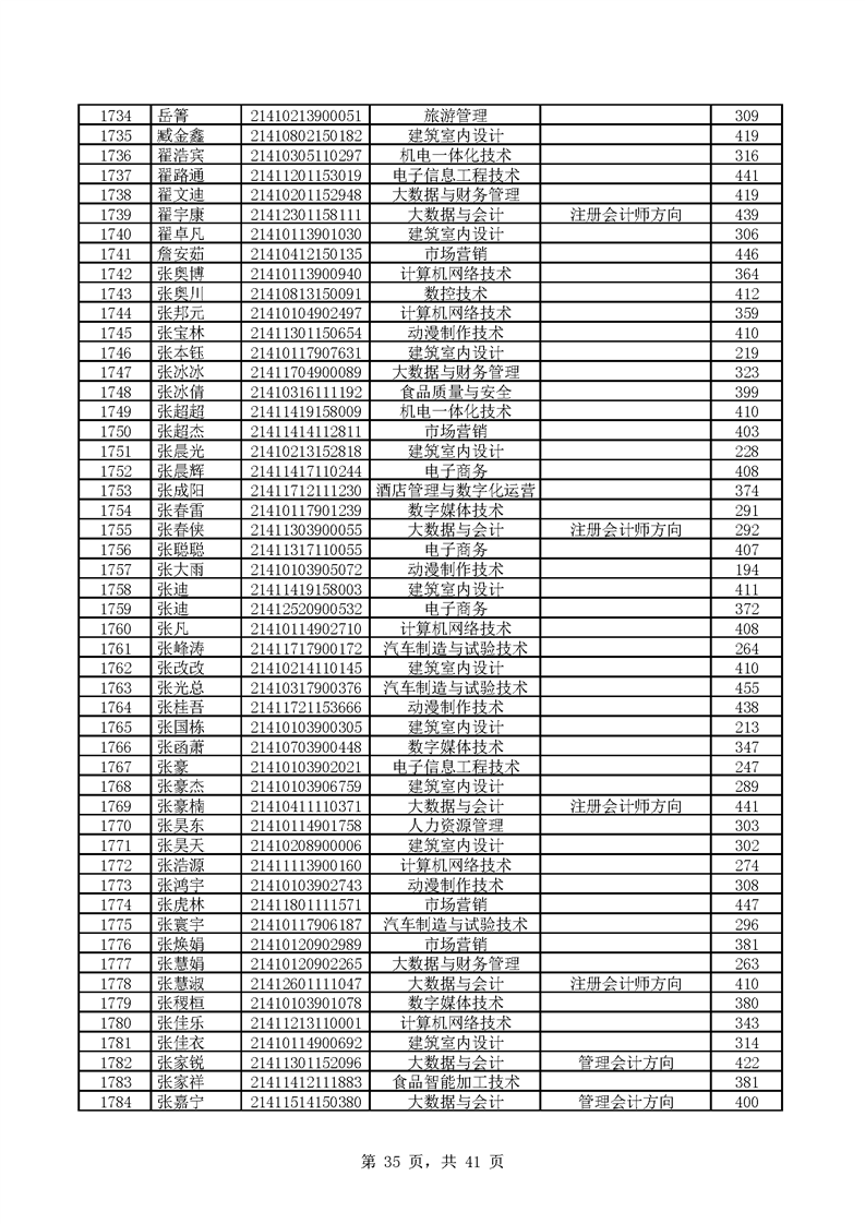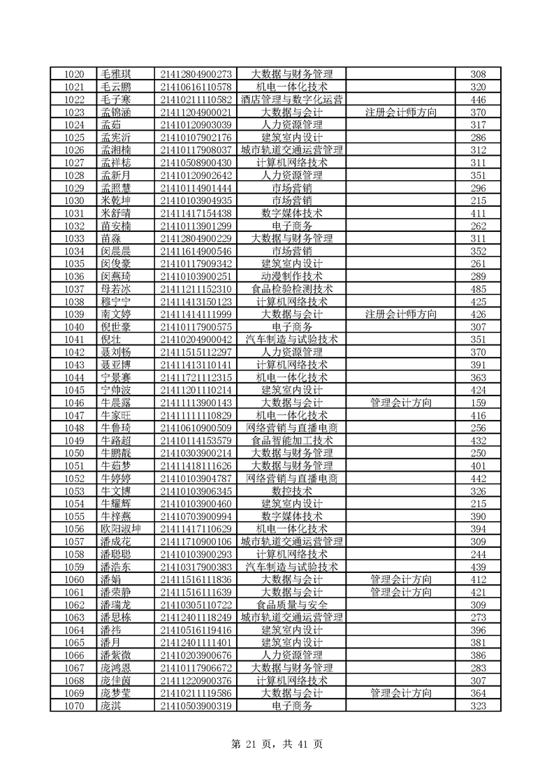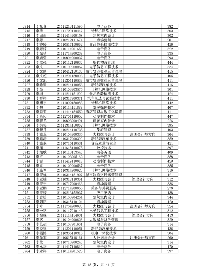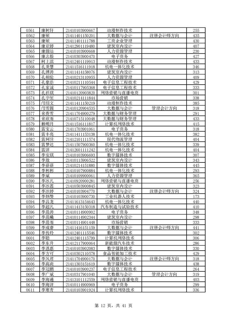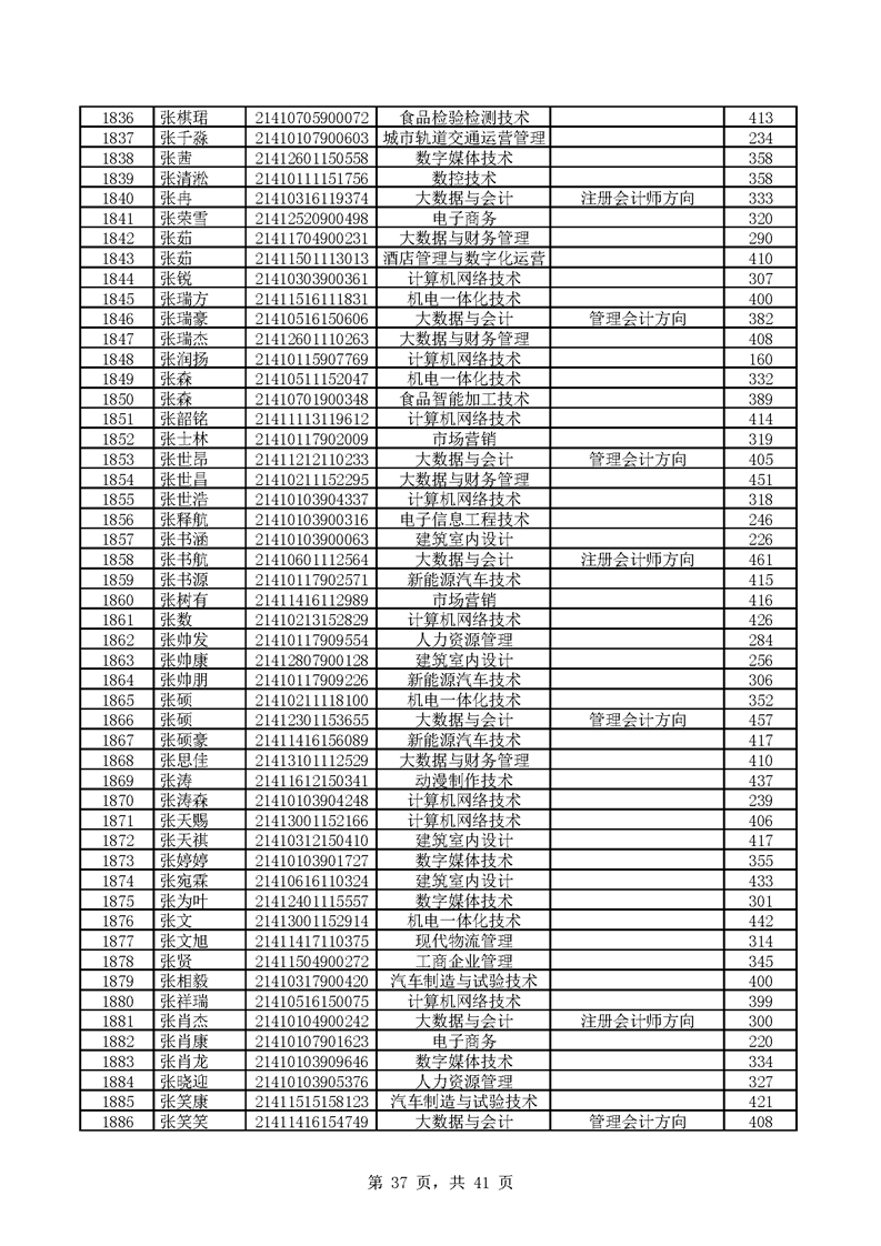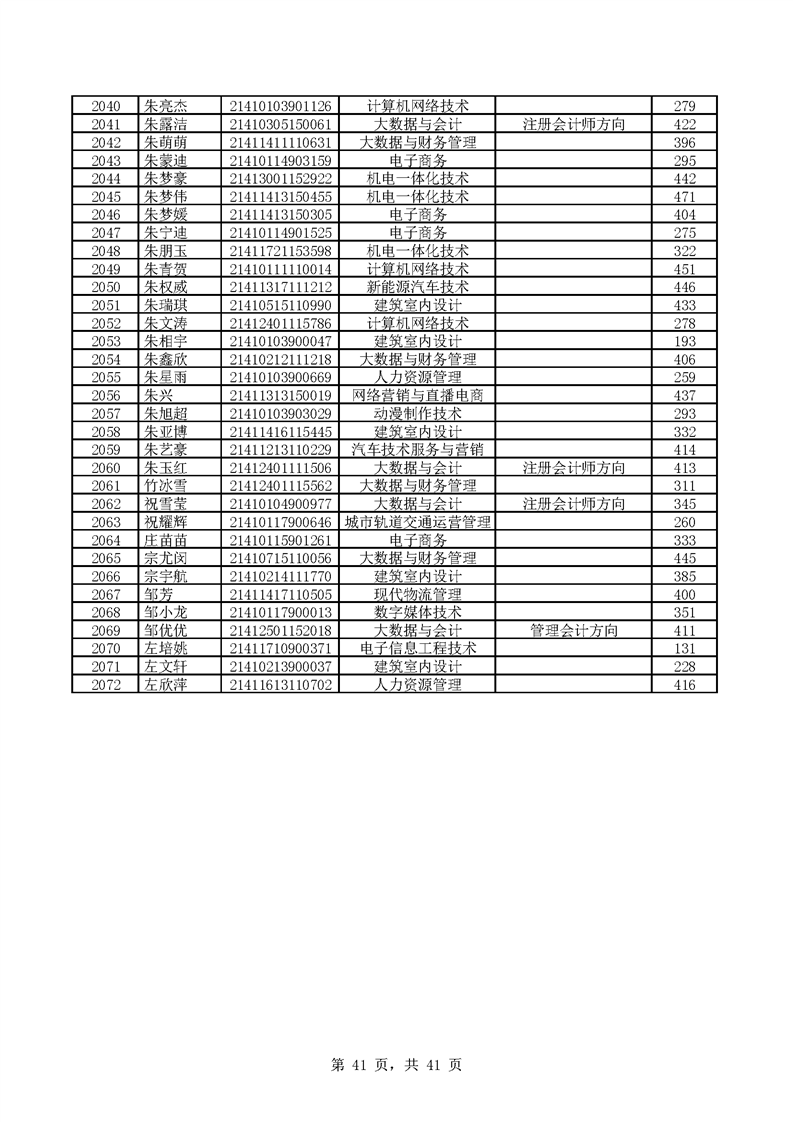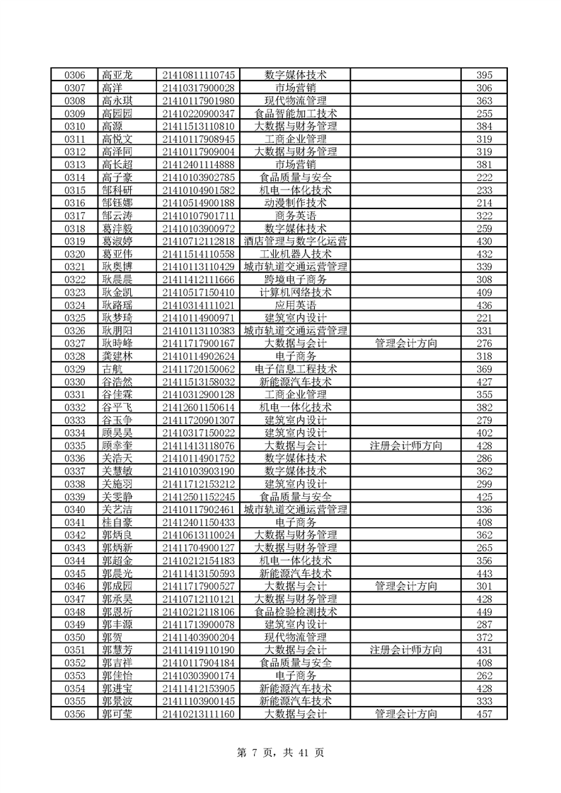 河南工业贸易职业学院 2021年单独考试招生录取名单(按姓氏排序)