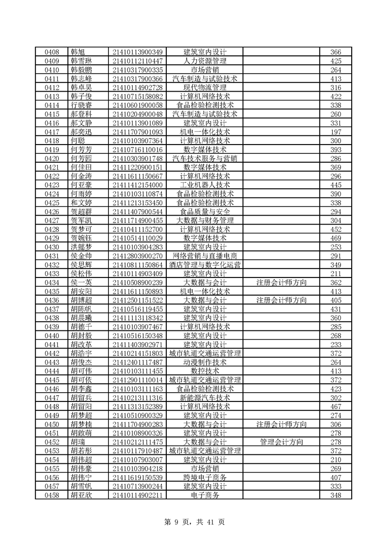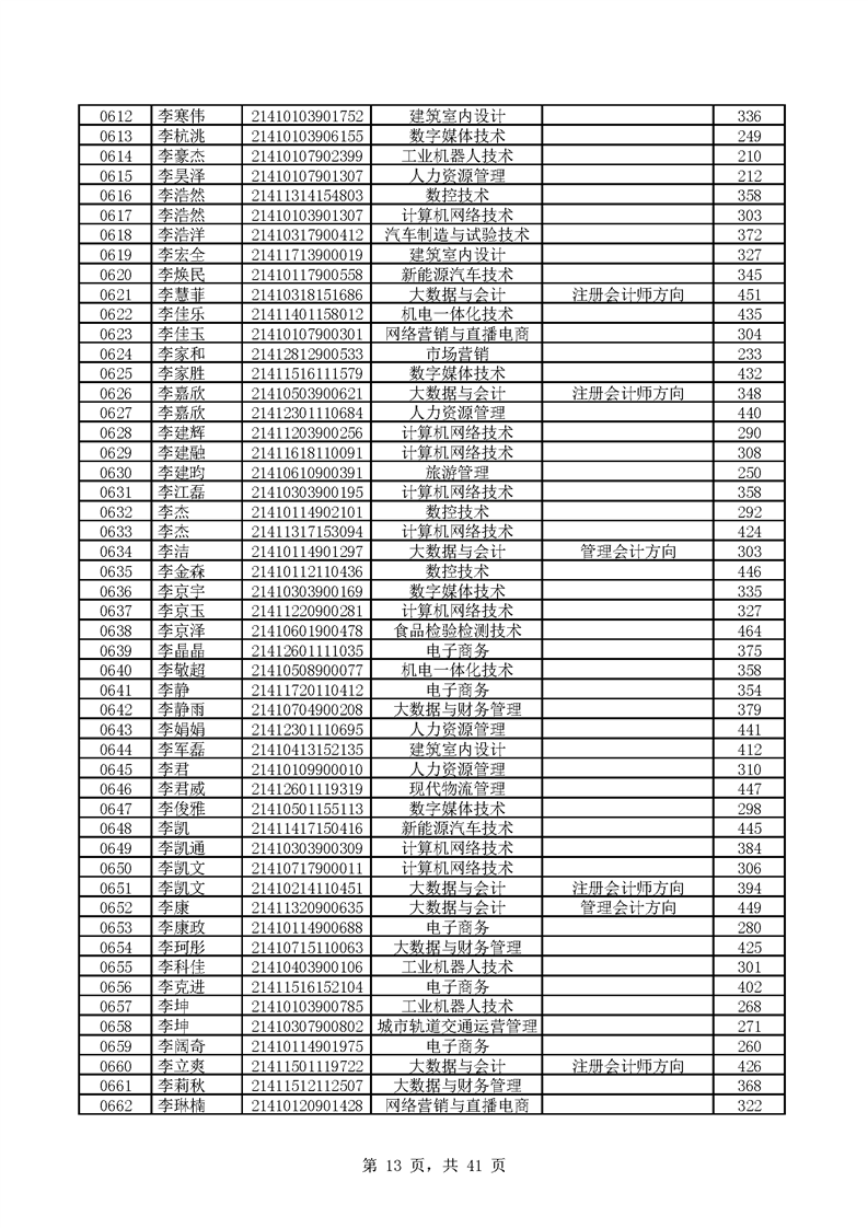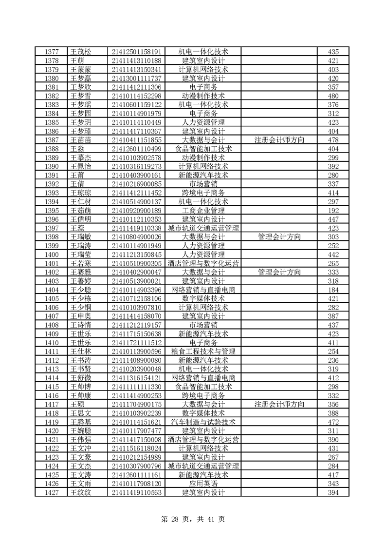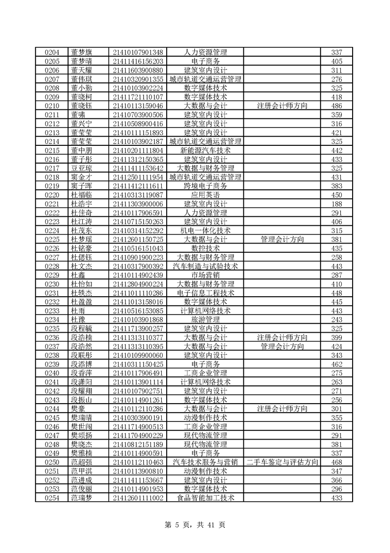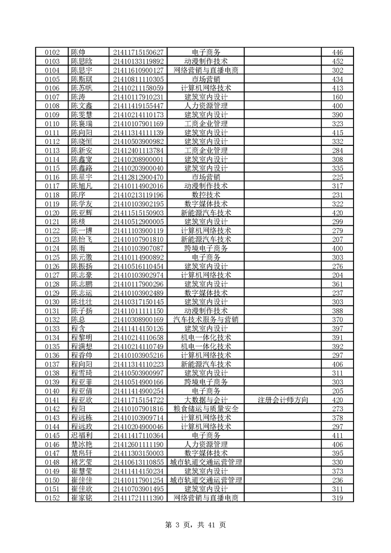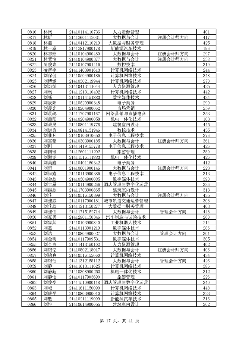 河南工业贸易职业学院 2021年单独考试招生录取名单(按姓氏排序)