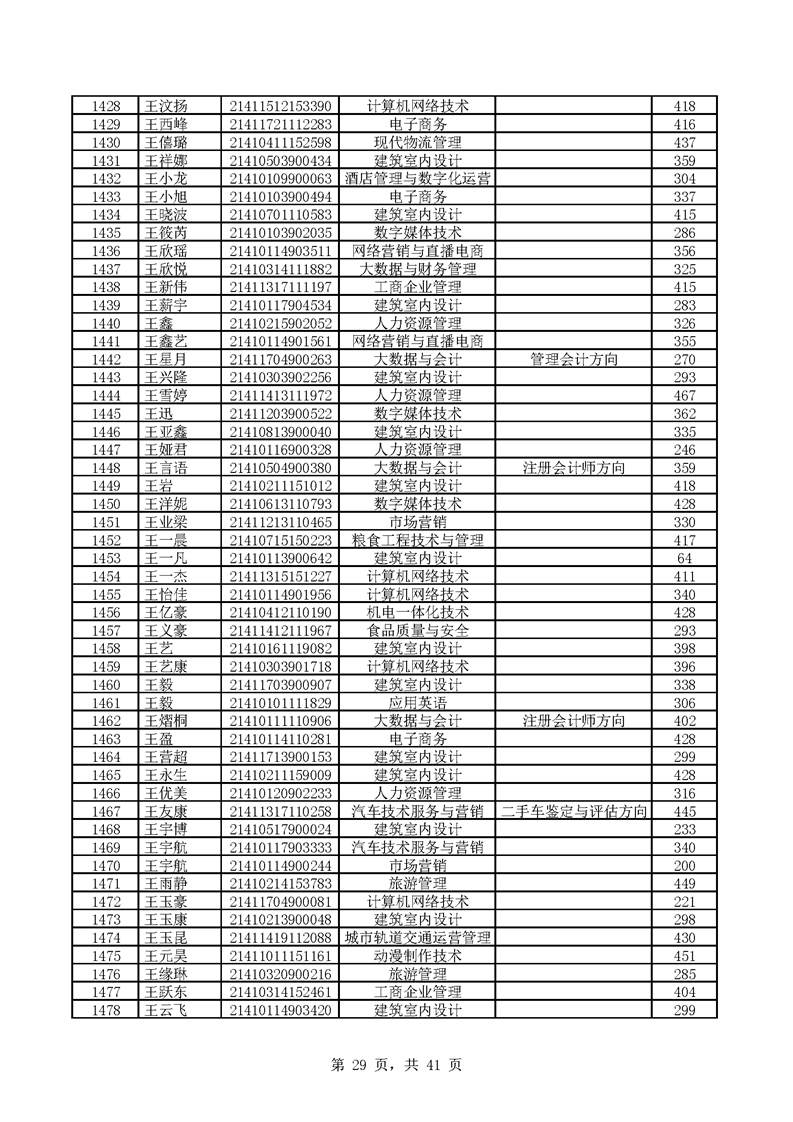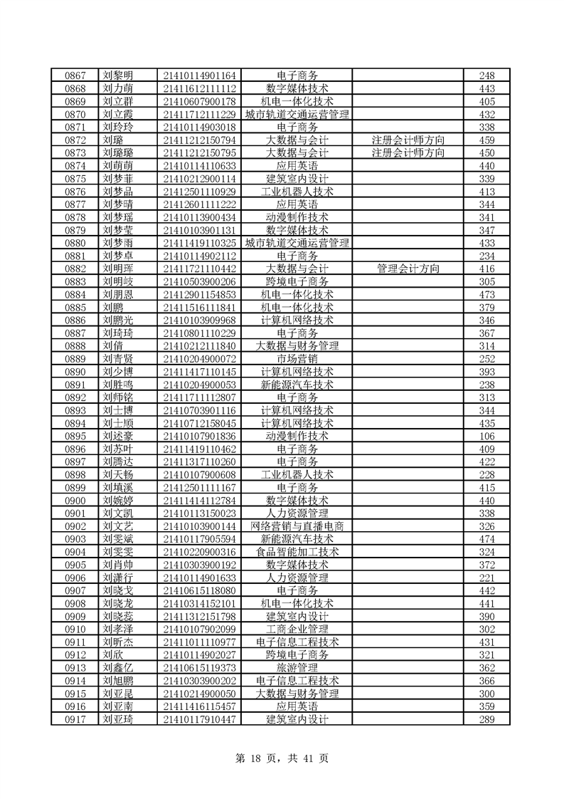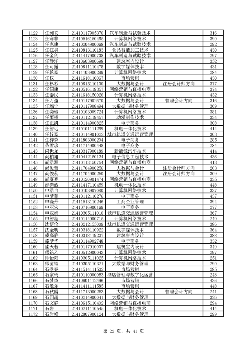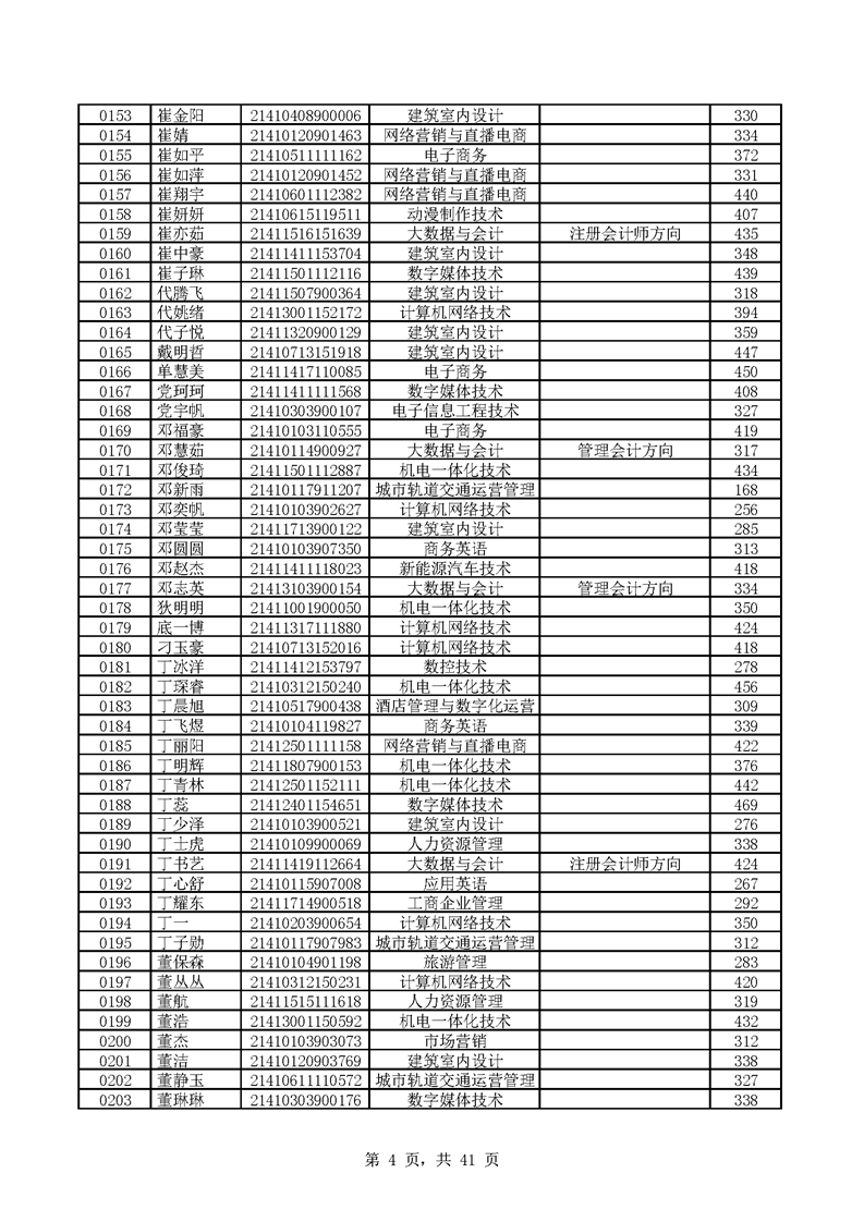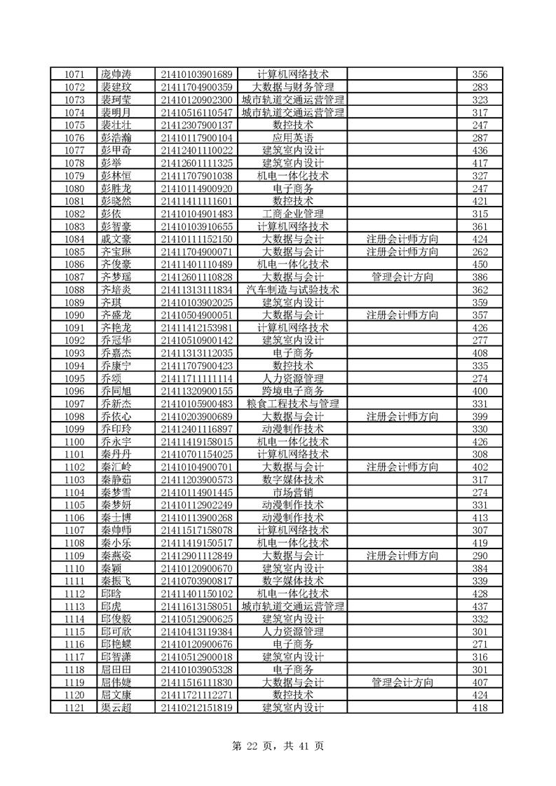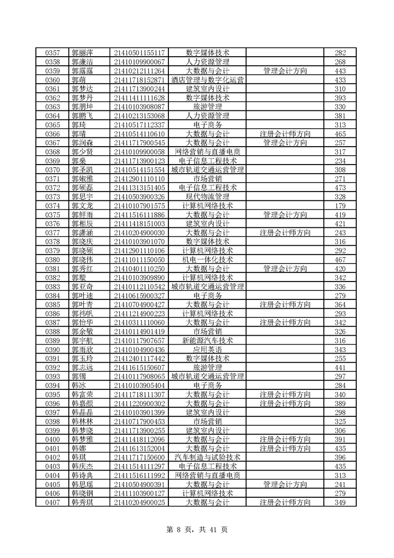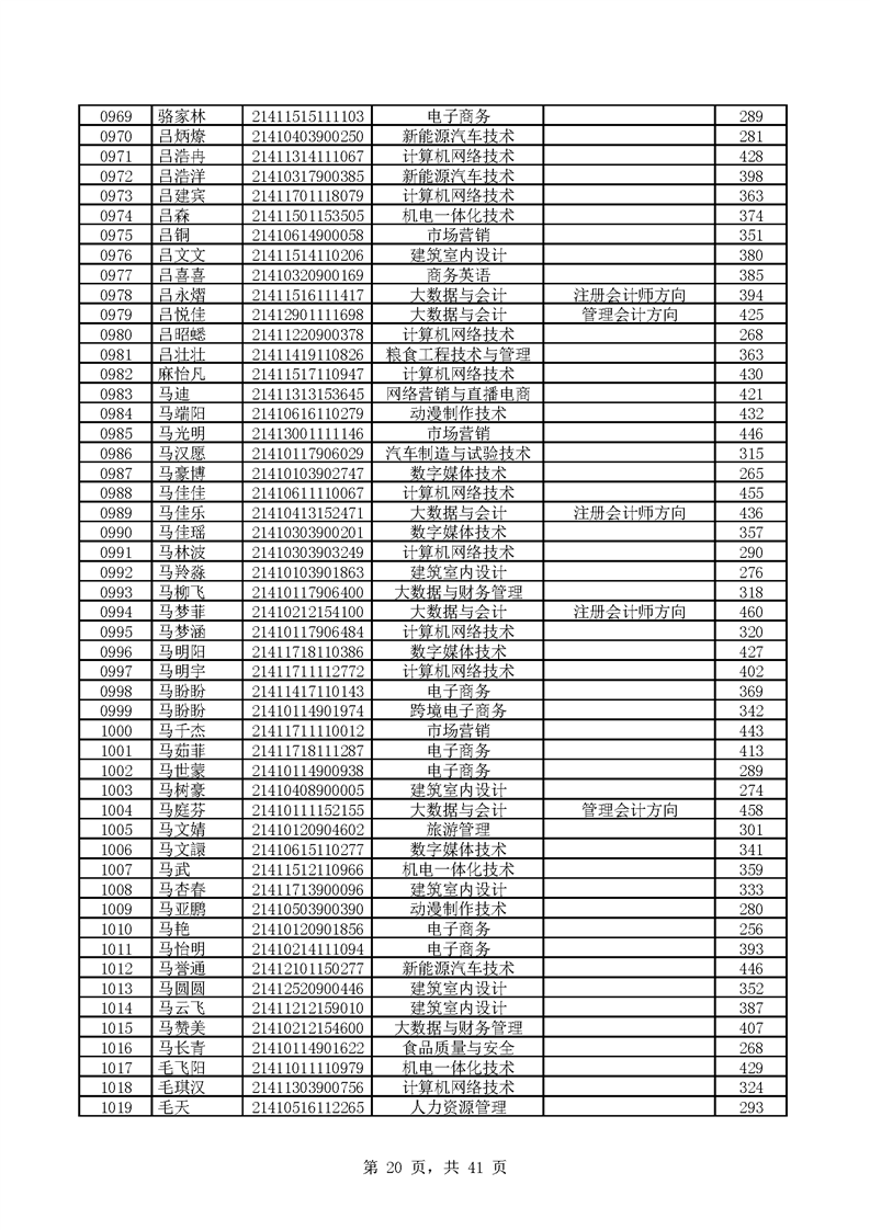 河南工业贸易职业学院 2021年单独考试招生录取名单(按姓氏排序)