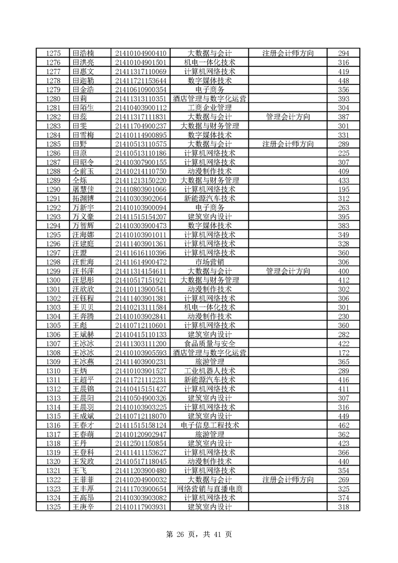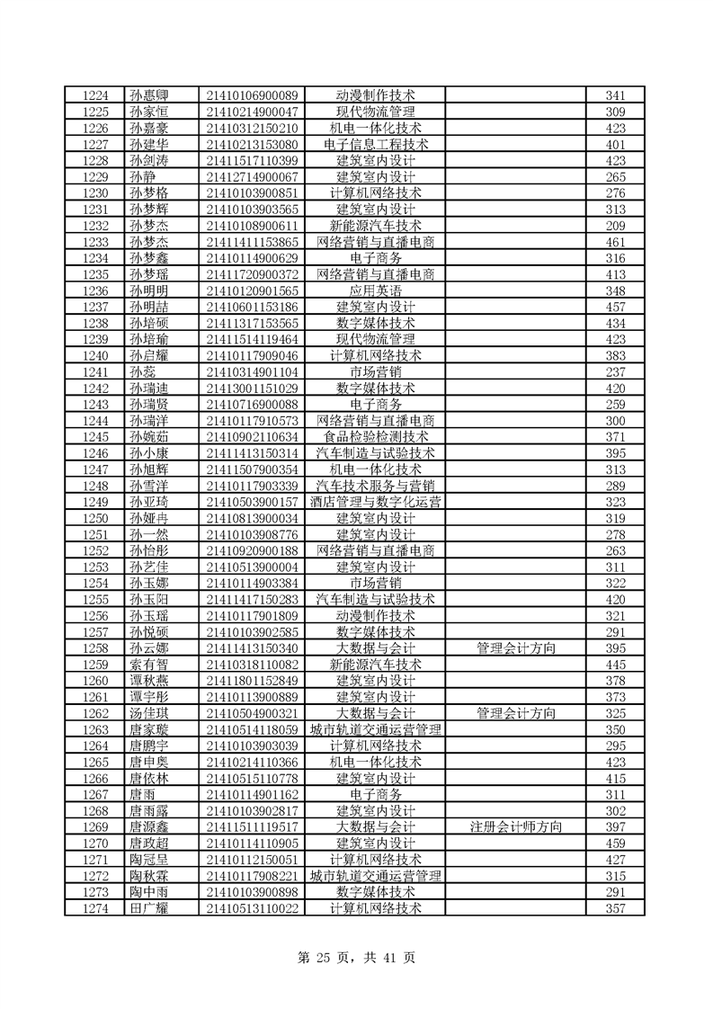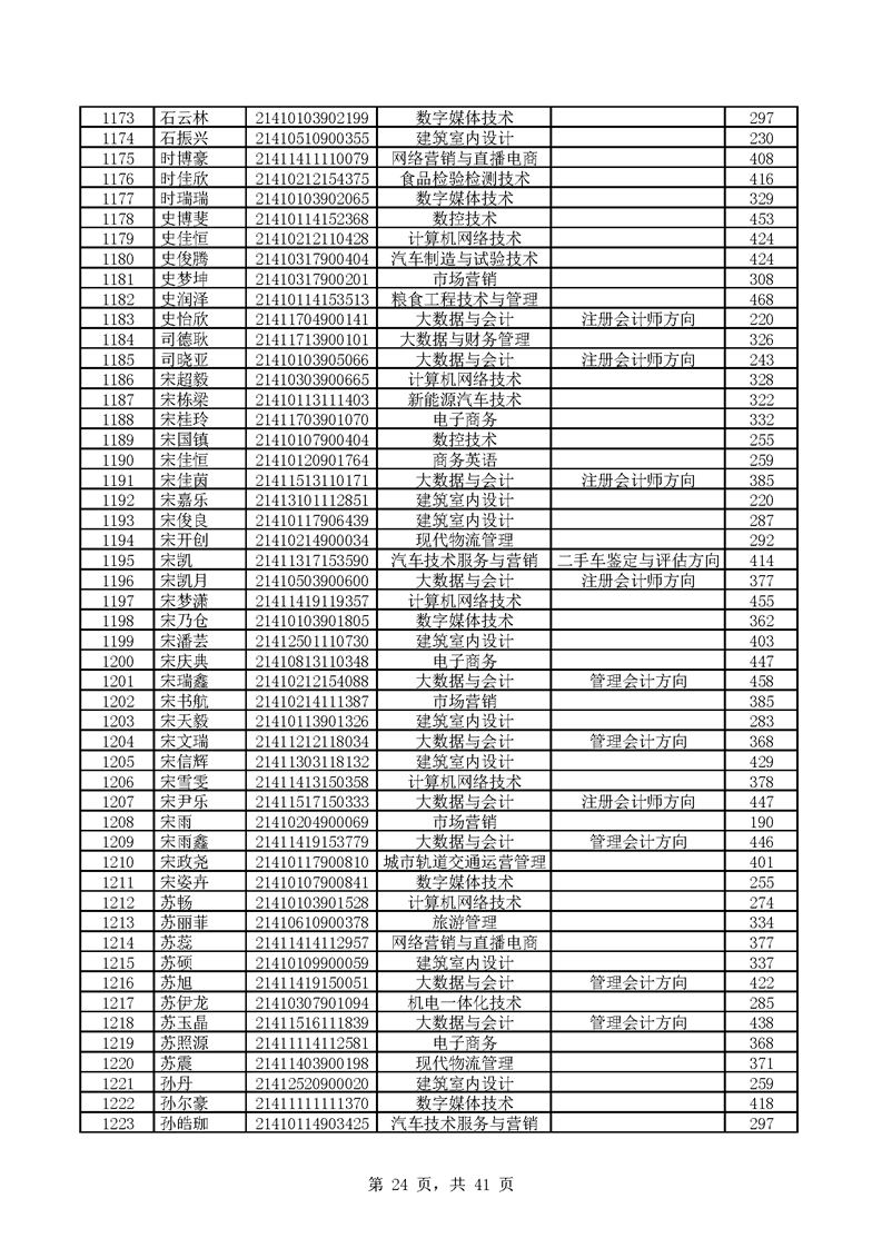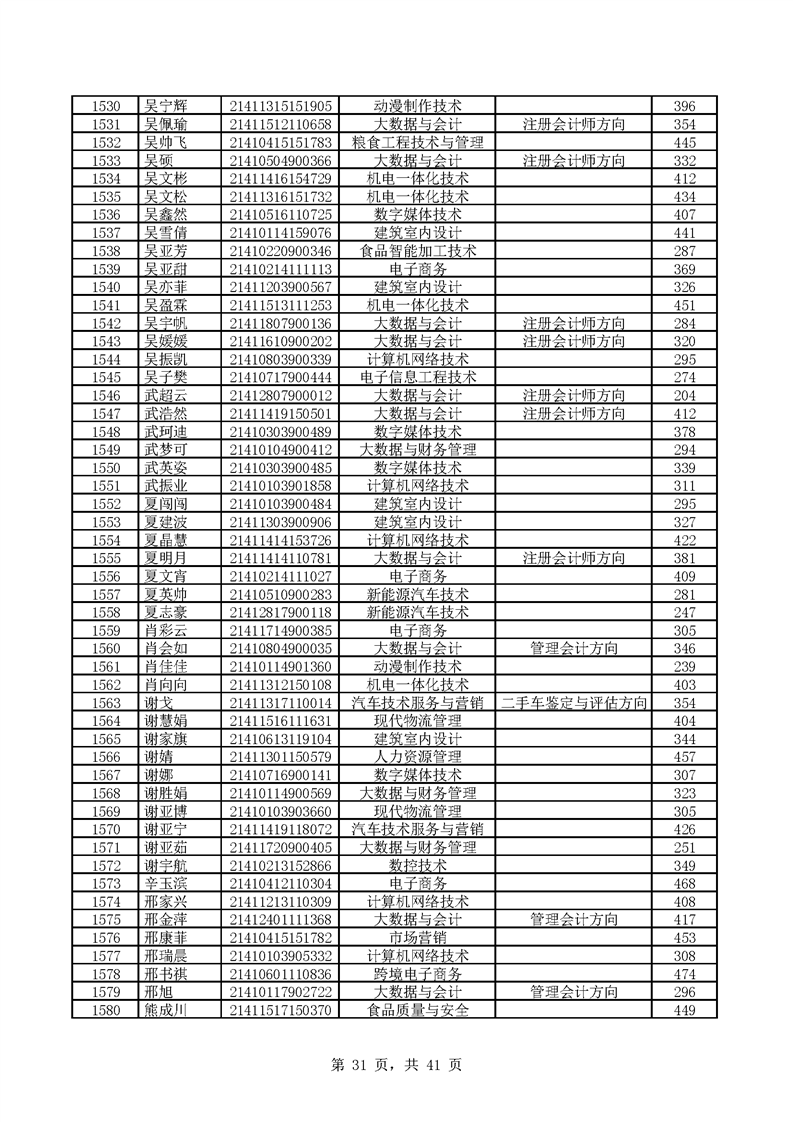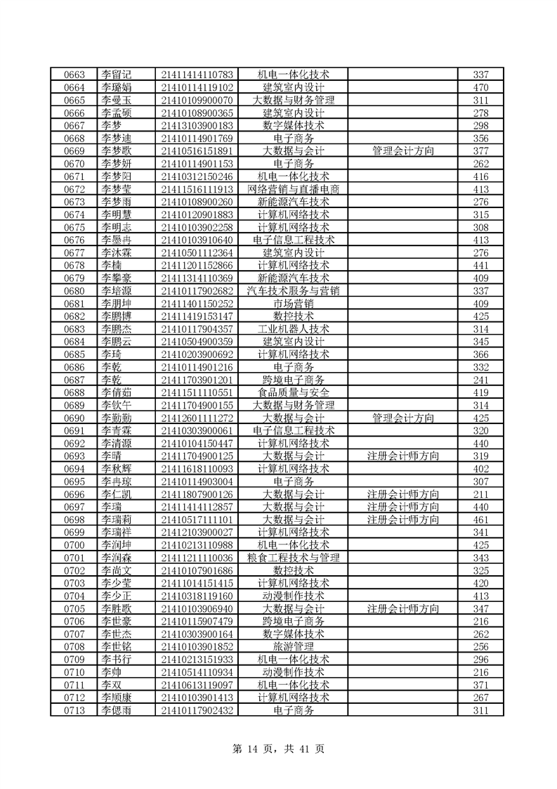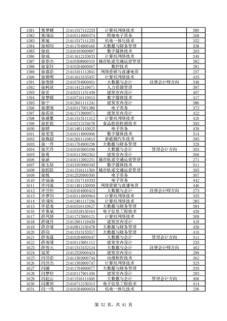 河南工业贸易职业学院 2021年单独考试招生录取名单(按姓氏排序)