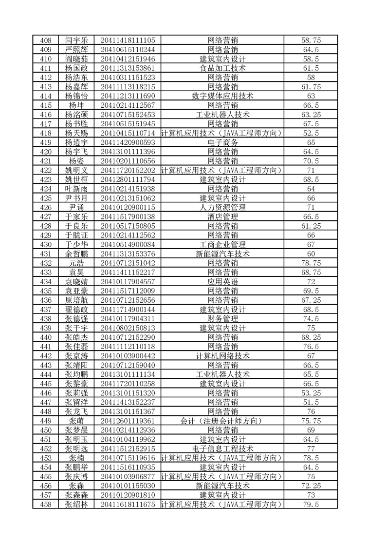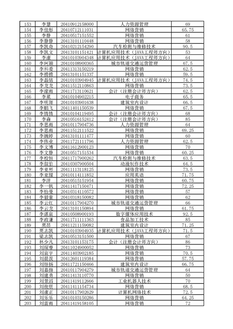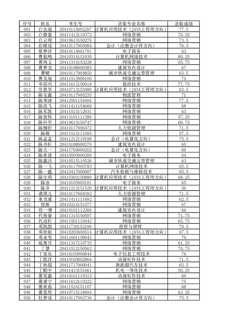 河南工业贸易职业学院2020年单独考试招生录取名单(按姓氏排序)