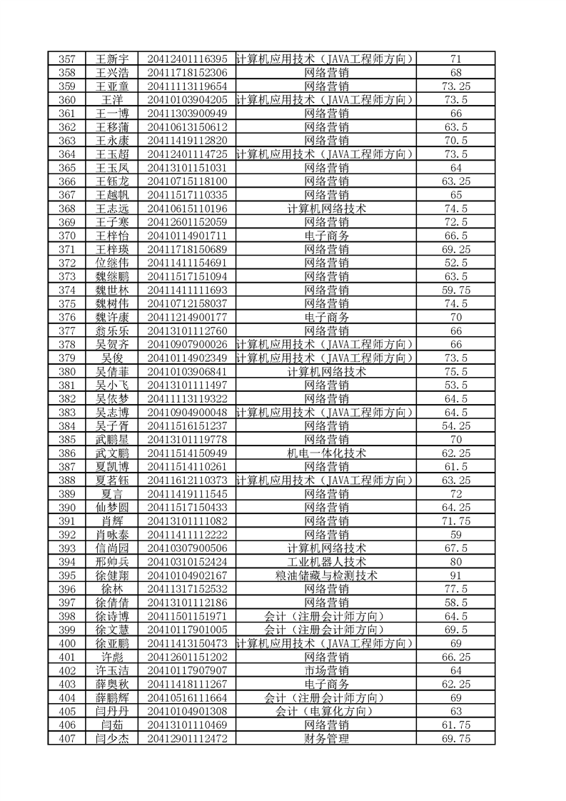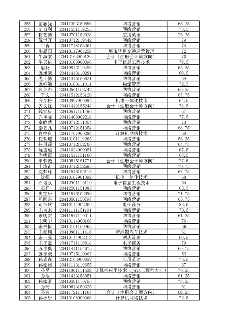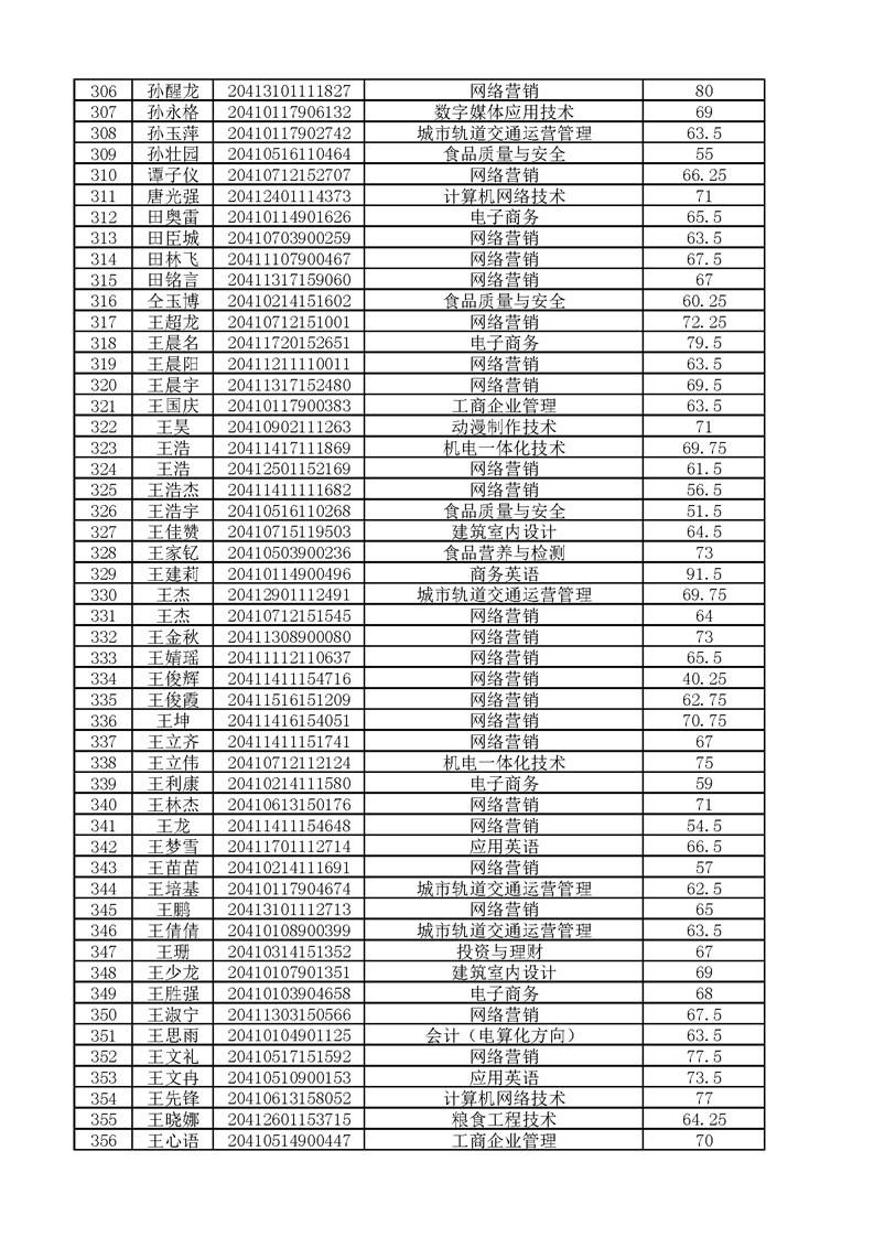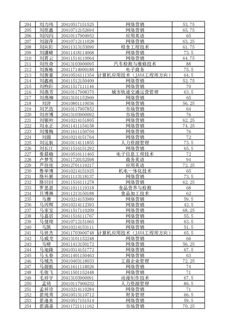 河南工业贸易职业学院2020年单独考试招生录取名单(按姓氏排序)
