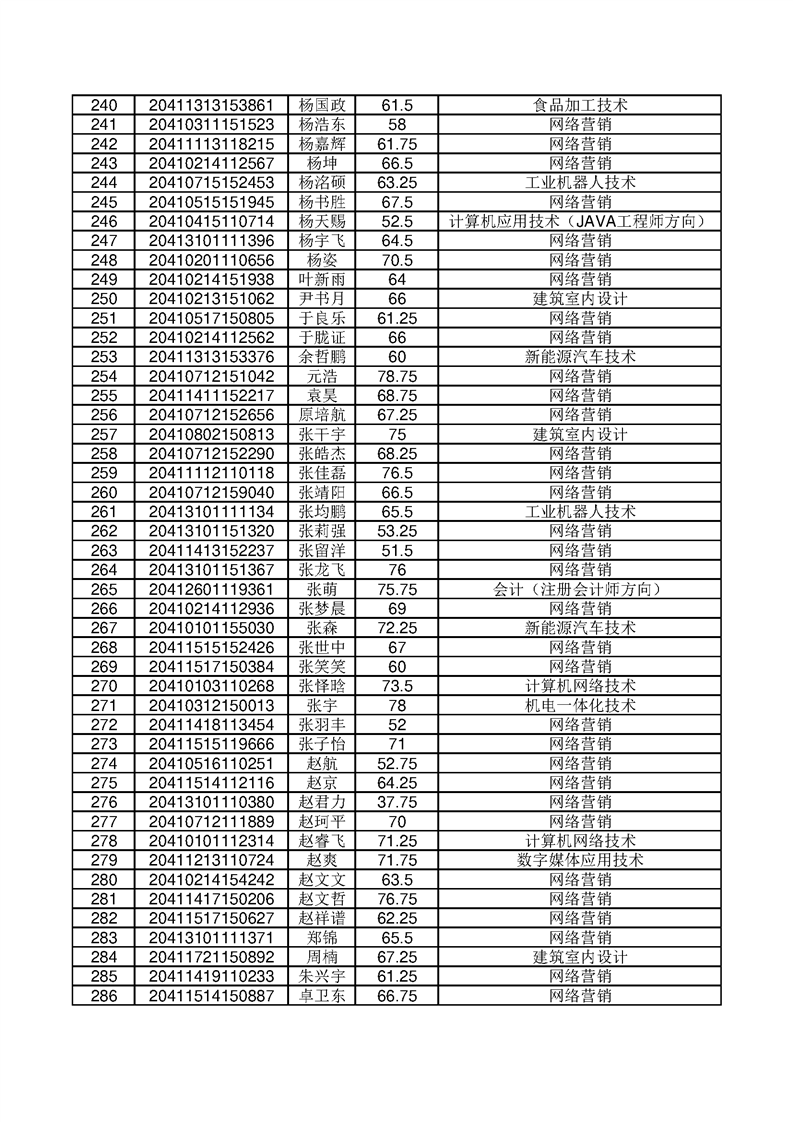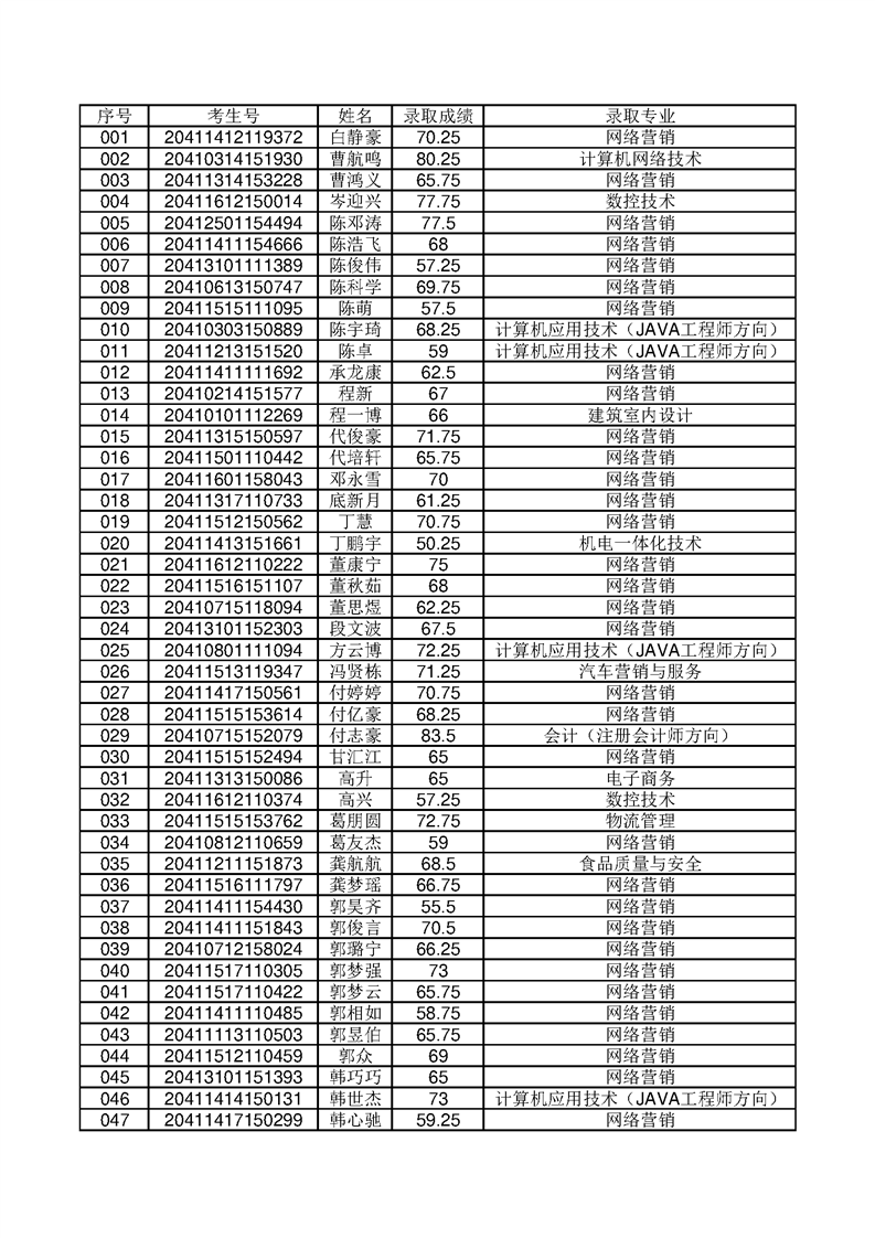 河南工业贸易职业学院2020年单独考试招生高中毕业生拟录取名单(按姓氏排序)
