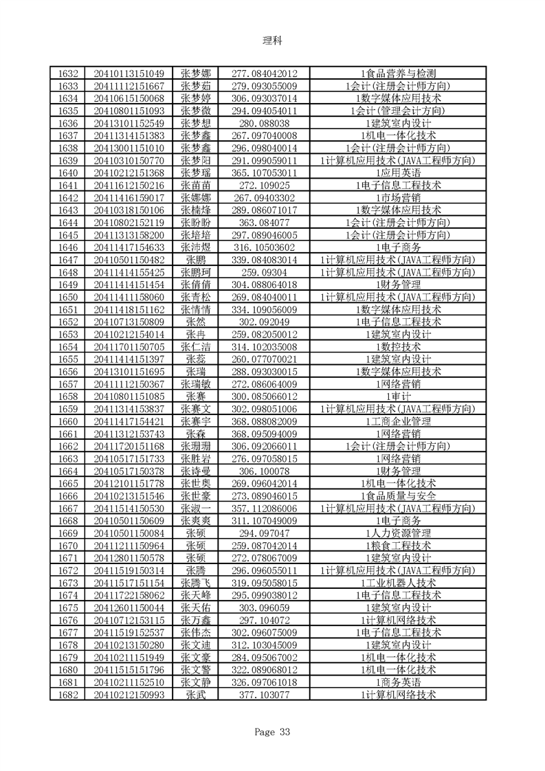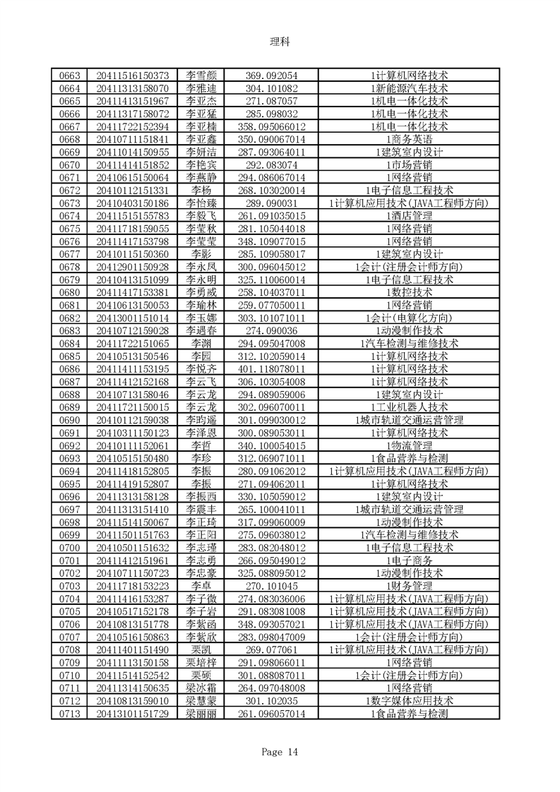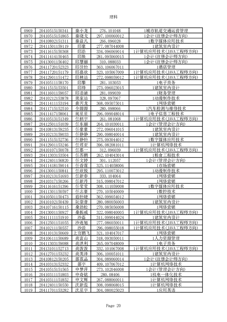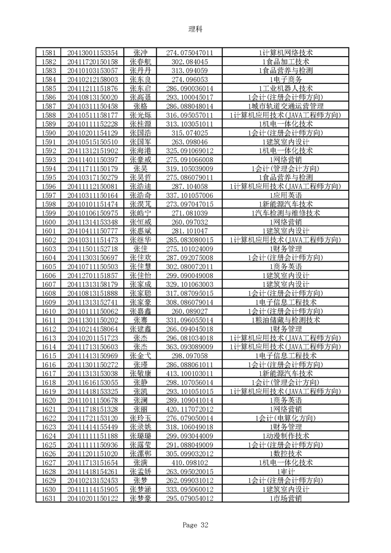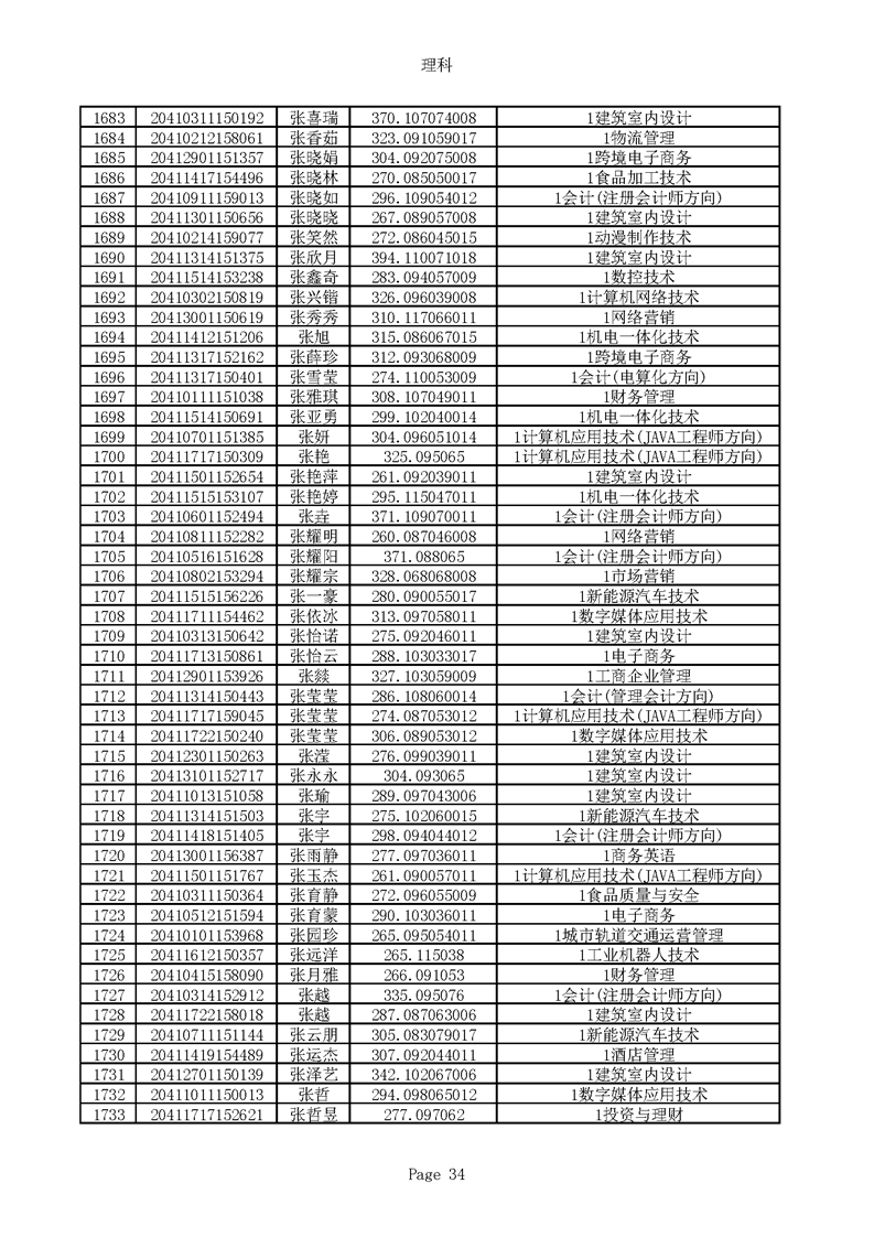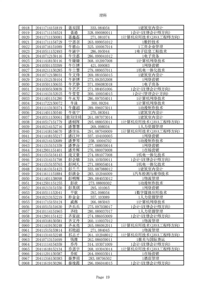 2020年河南省高职高专理科录取新生名单(按姓氏排序)