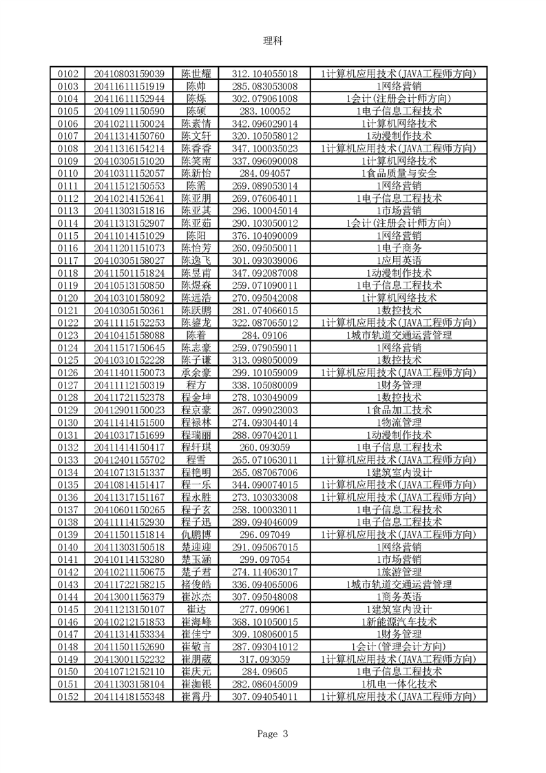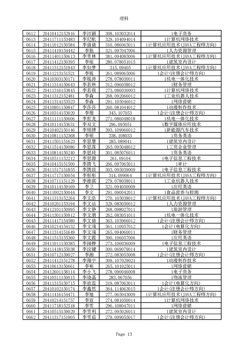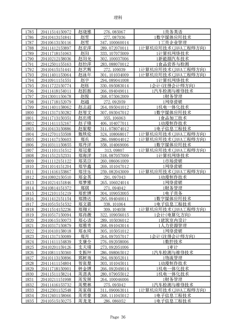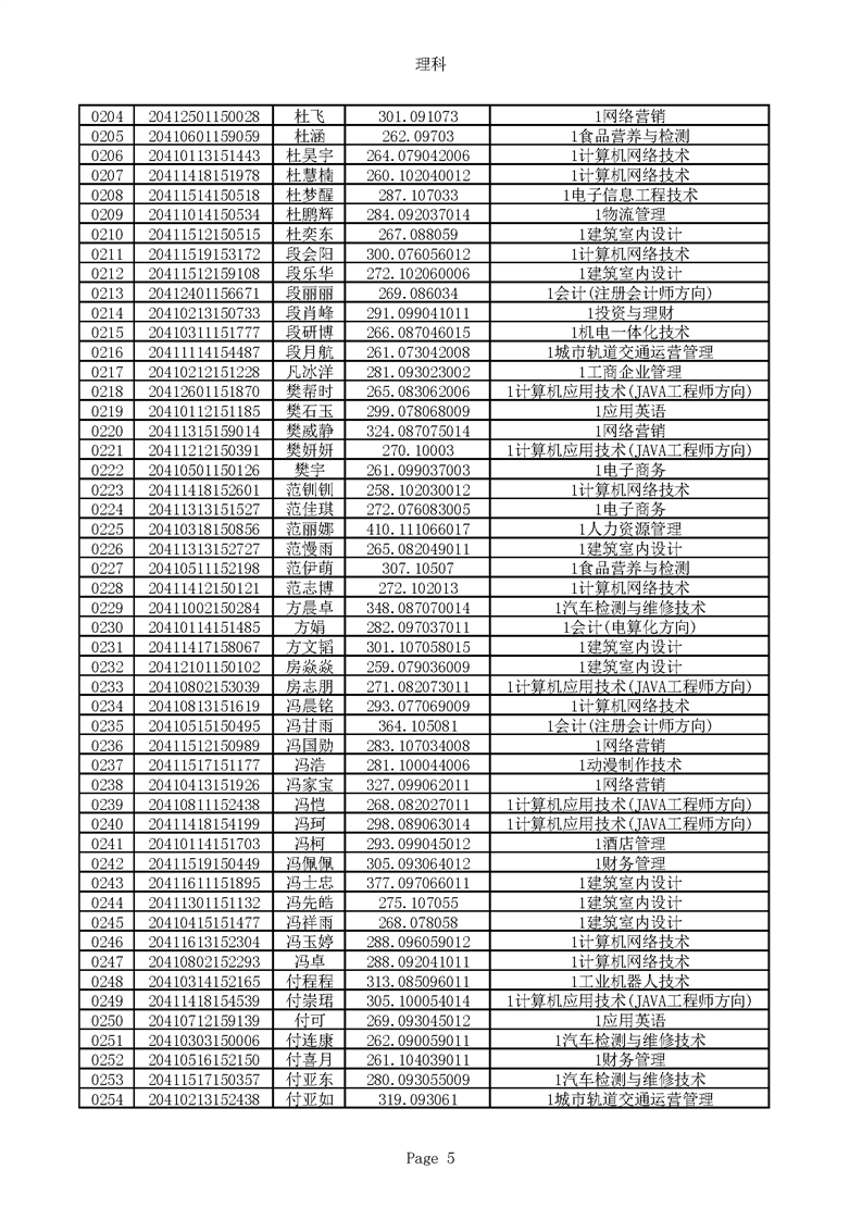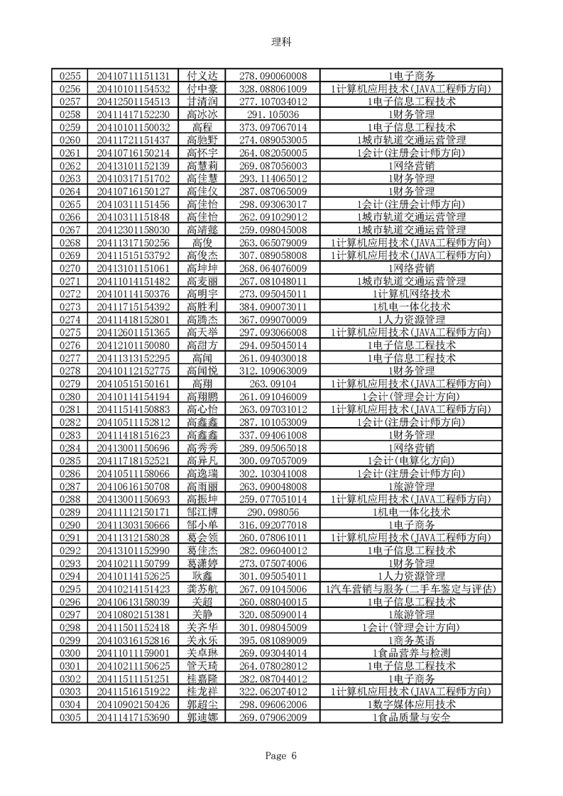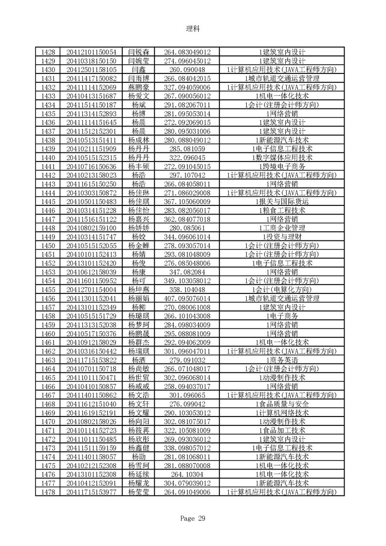 2020年河南省高职高专理科录取新生名单(按姓氏排序)