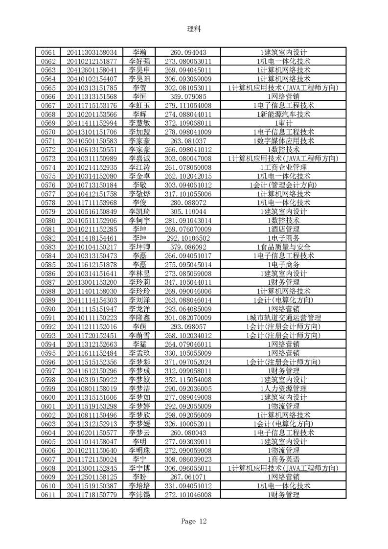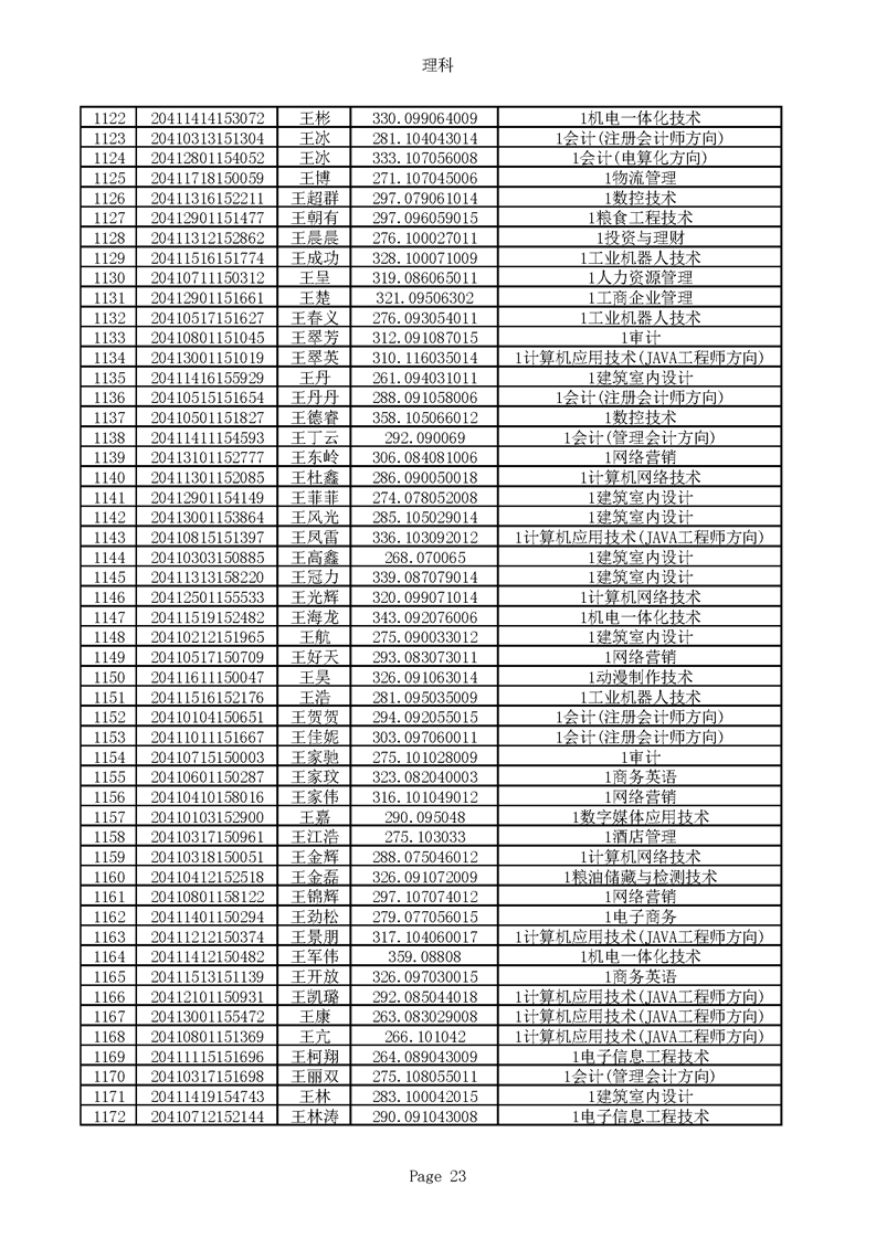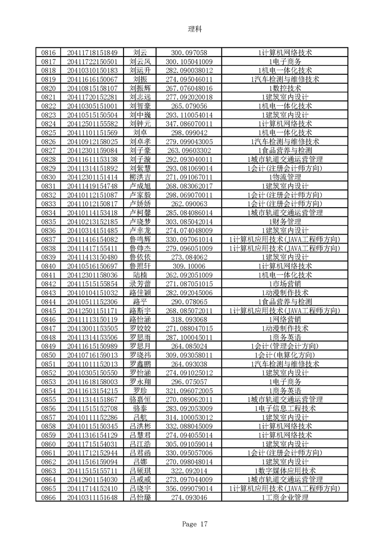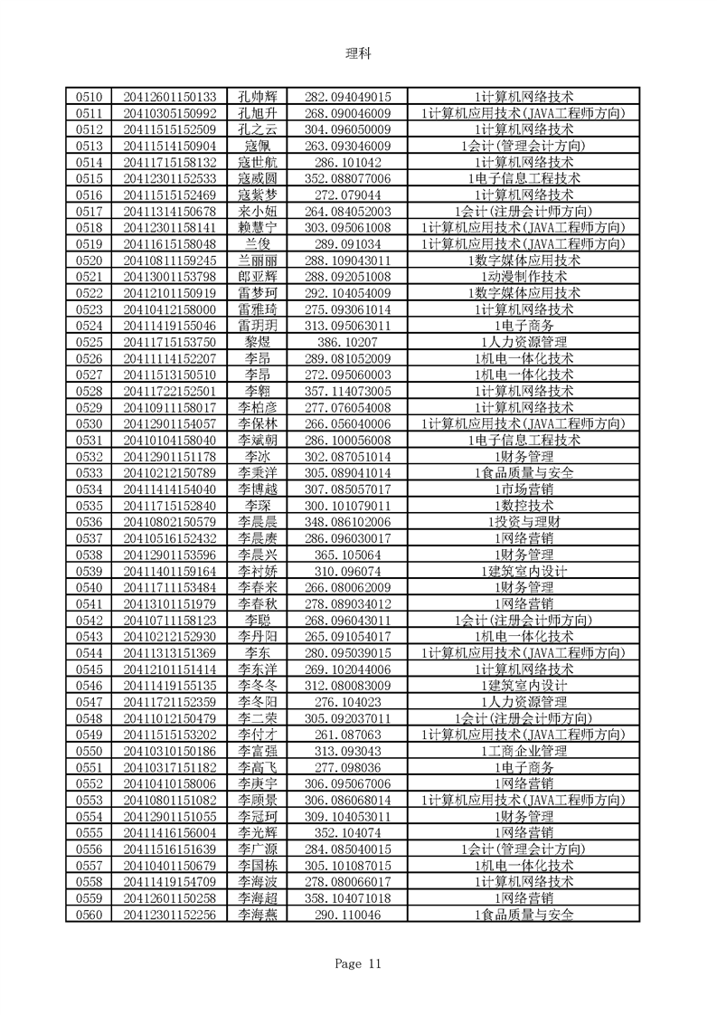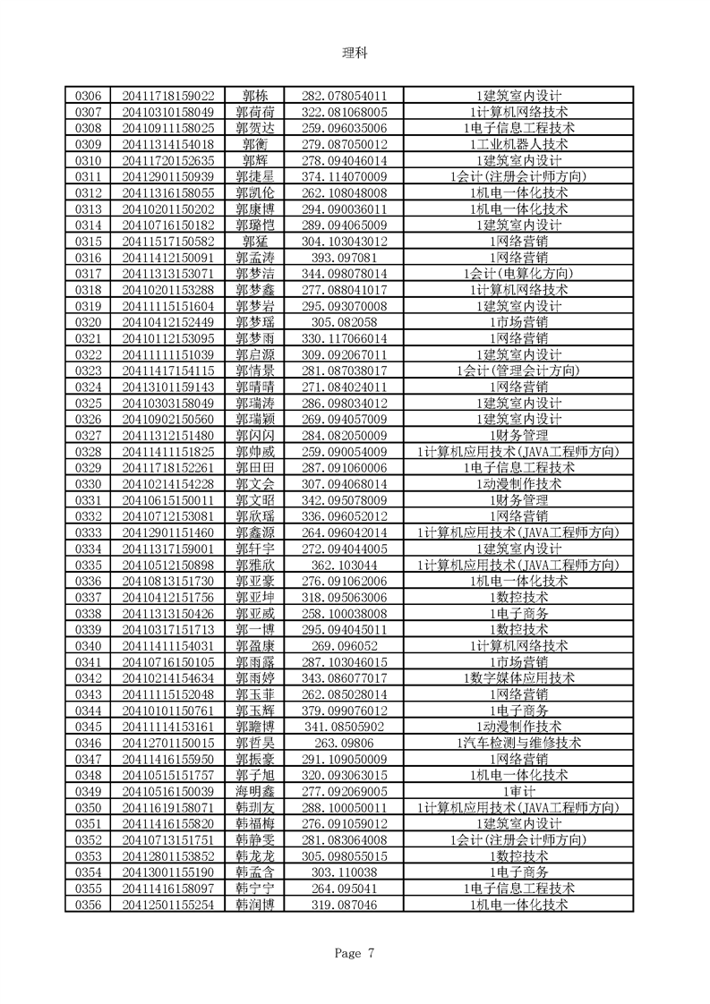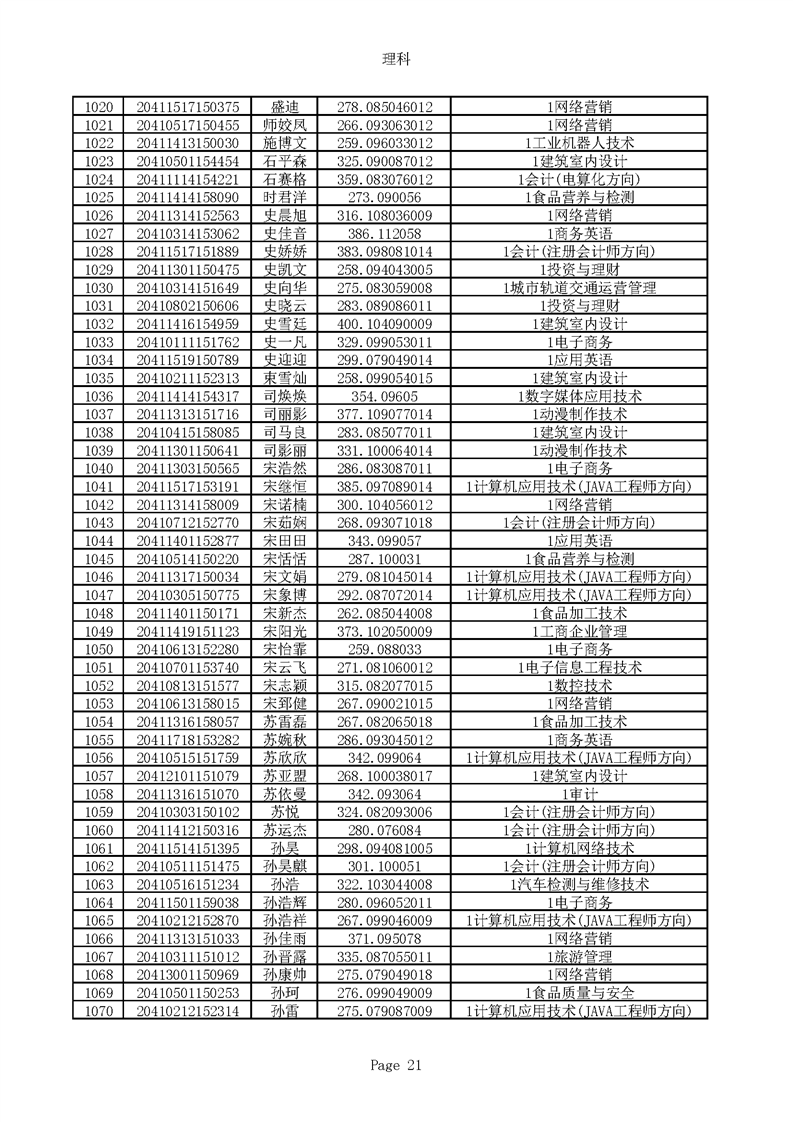 2020年河南省高职高专理科录取新生名单(按姓氏排序)