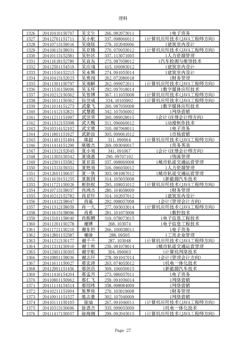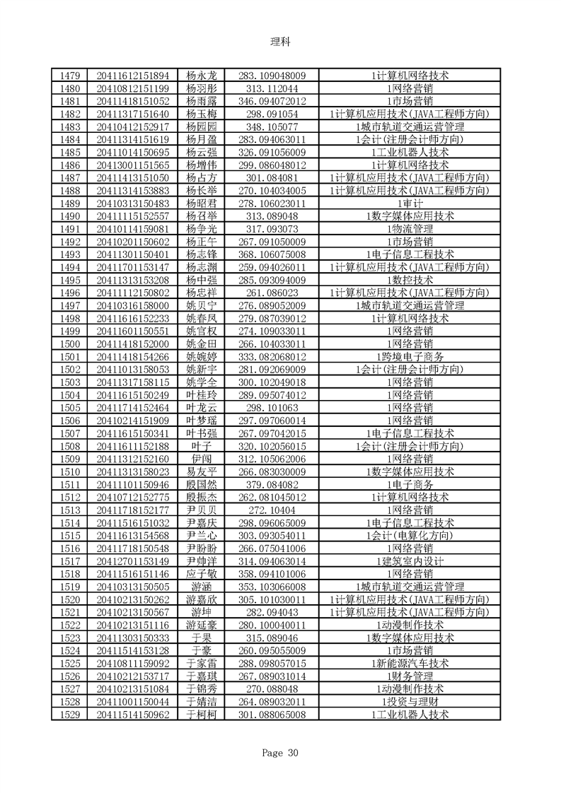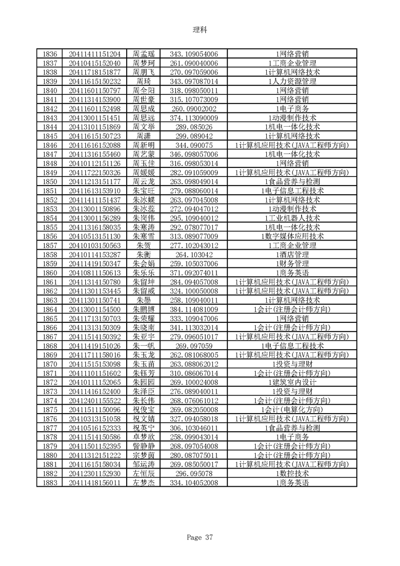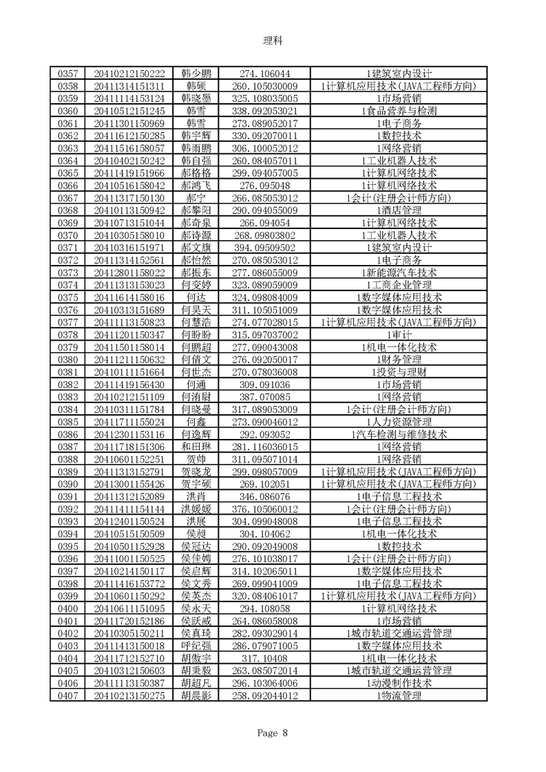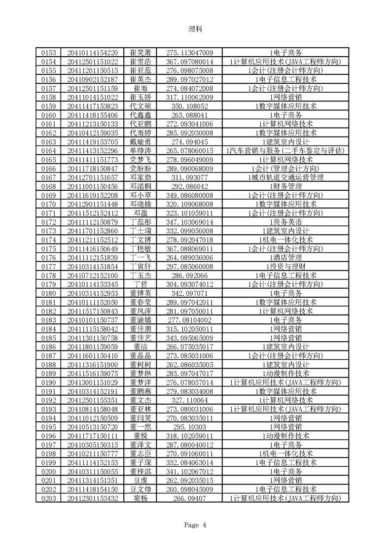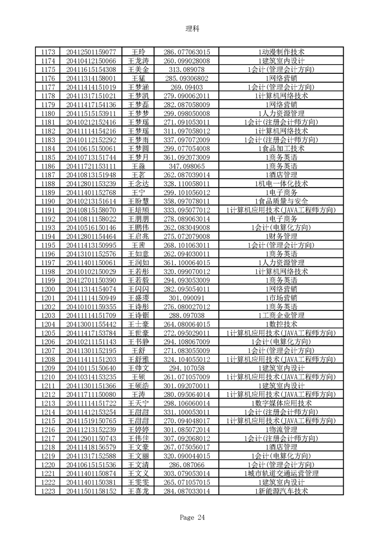 2020年河南省高职高专理科录取新生名单(按姓氏排序)