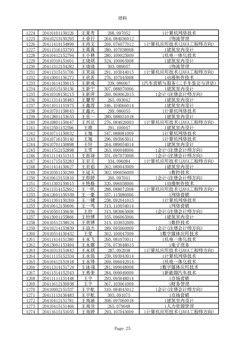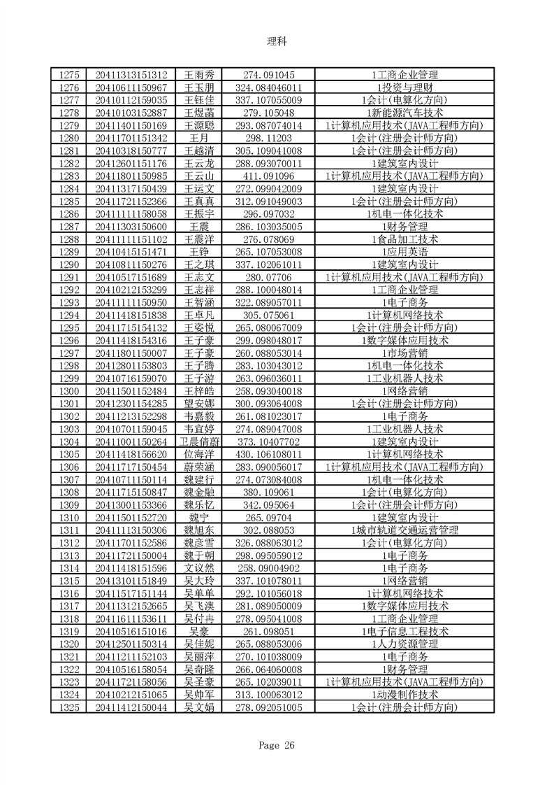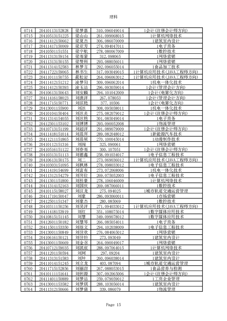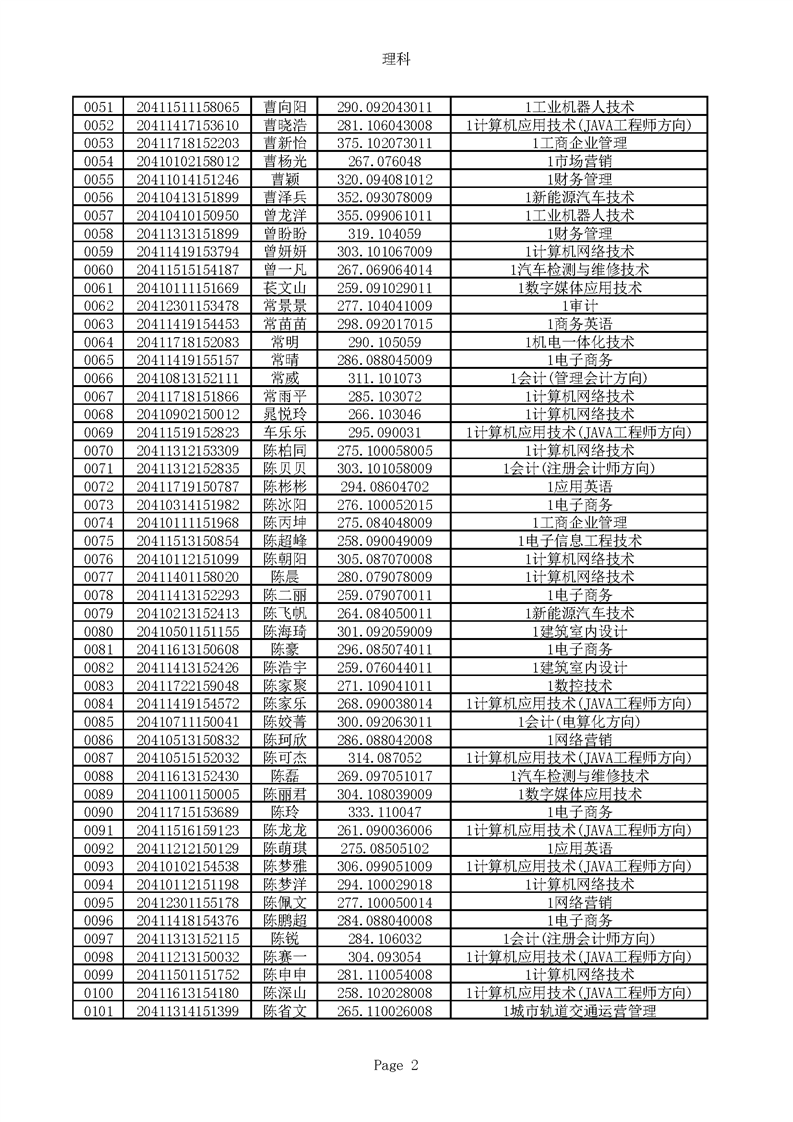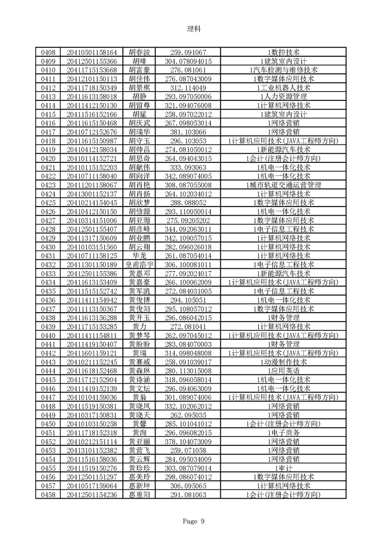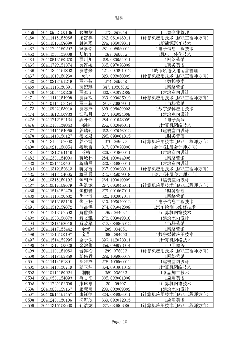 2020年河南省高职高专理科录取新生名单(按姓氏排序)