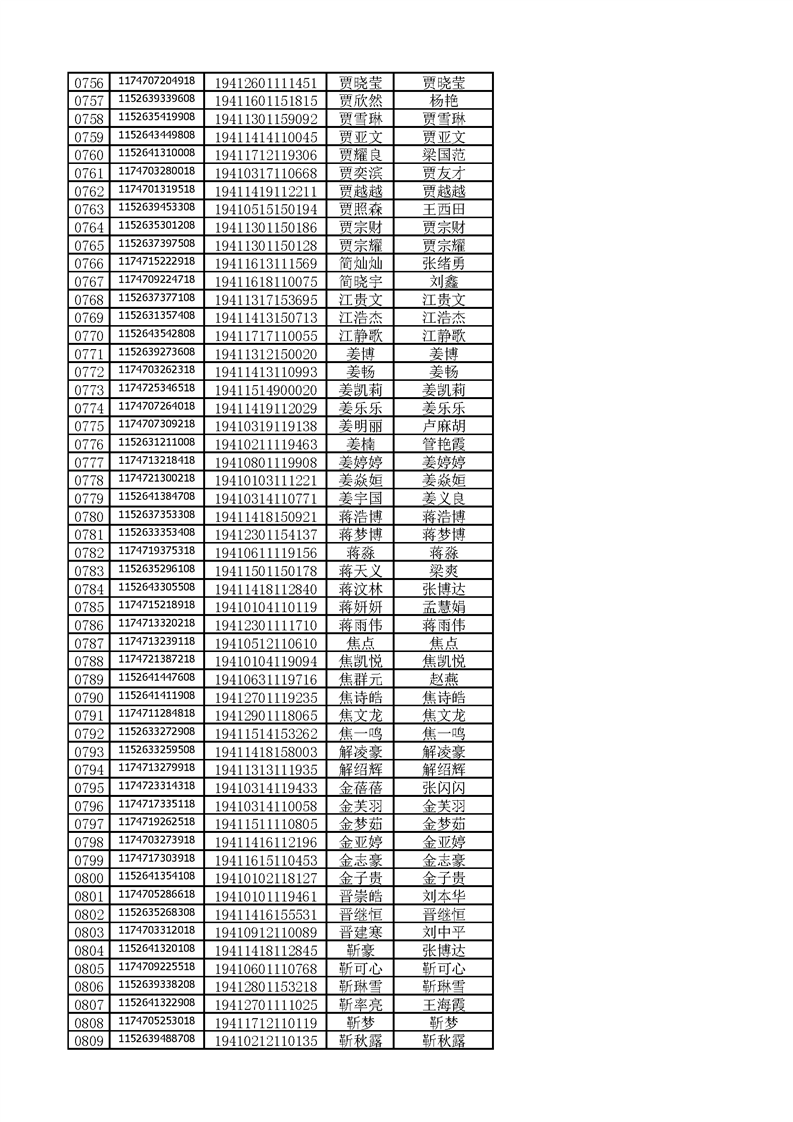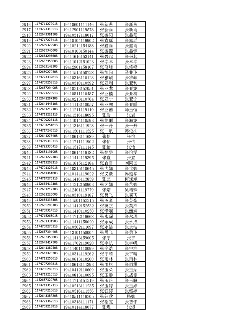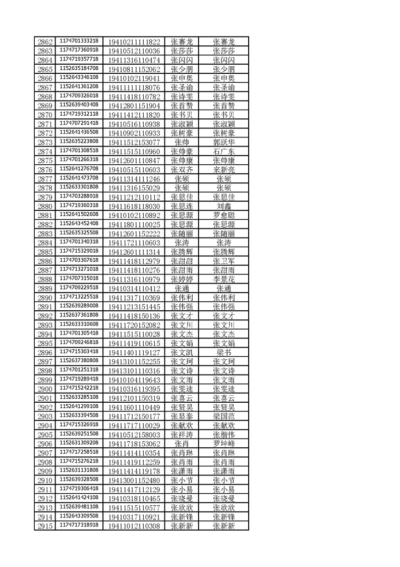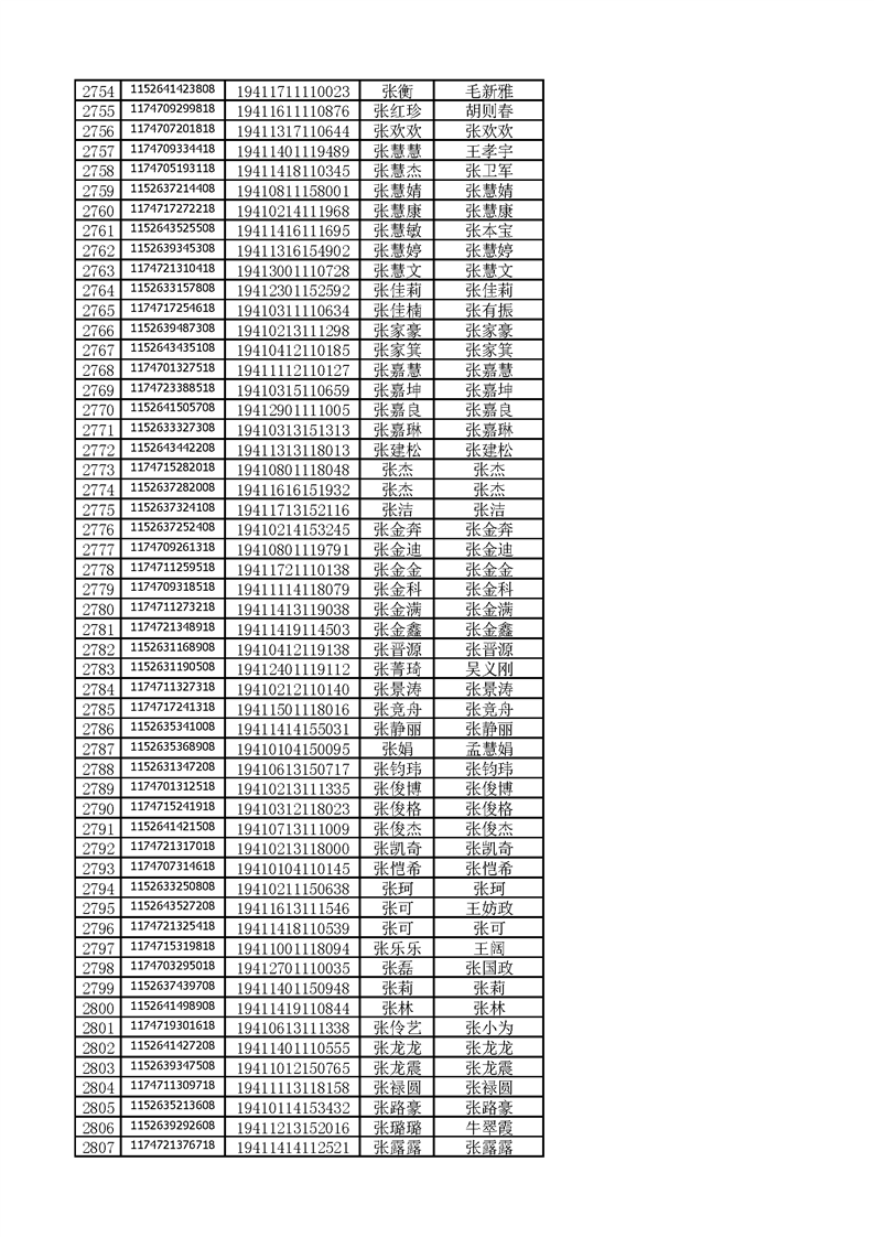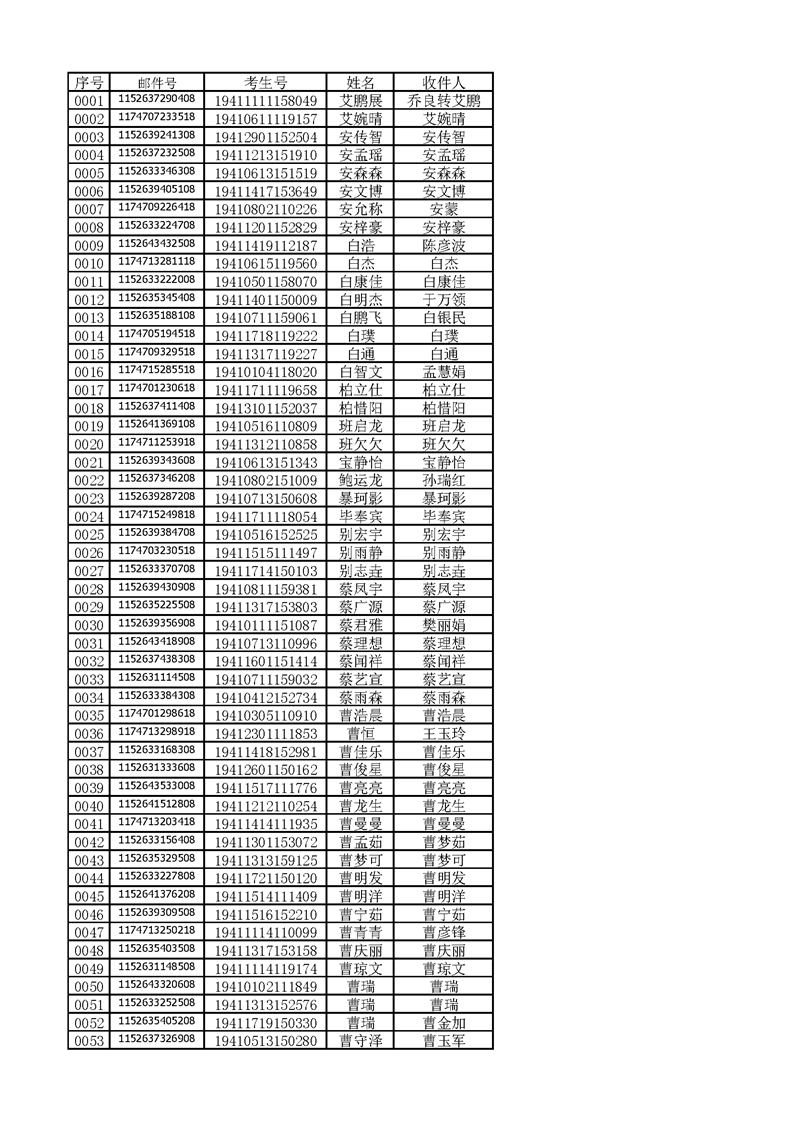 河南工业贸易职业学院2019年河南高职高专平行志愿、征集志愿录取新生和山东高职高专录取新生录取通知书邮件号公示(按姓氏排序)