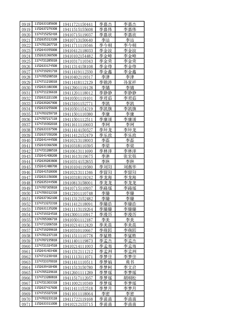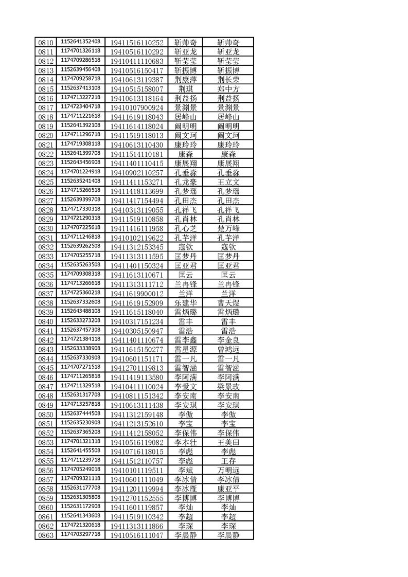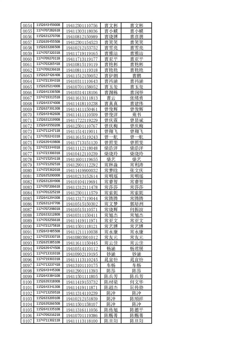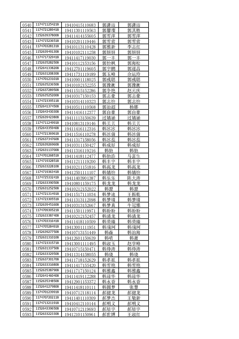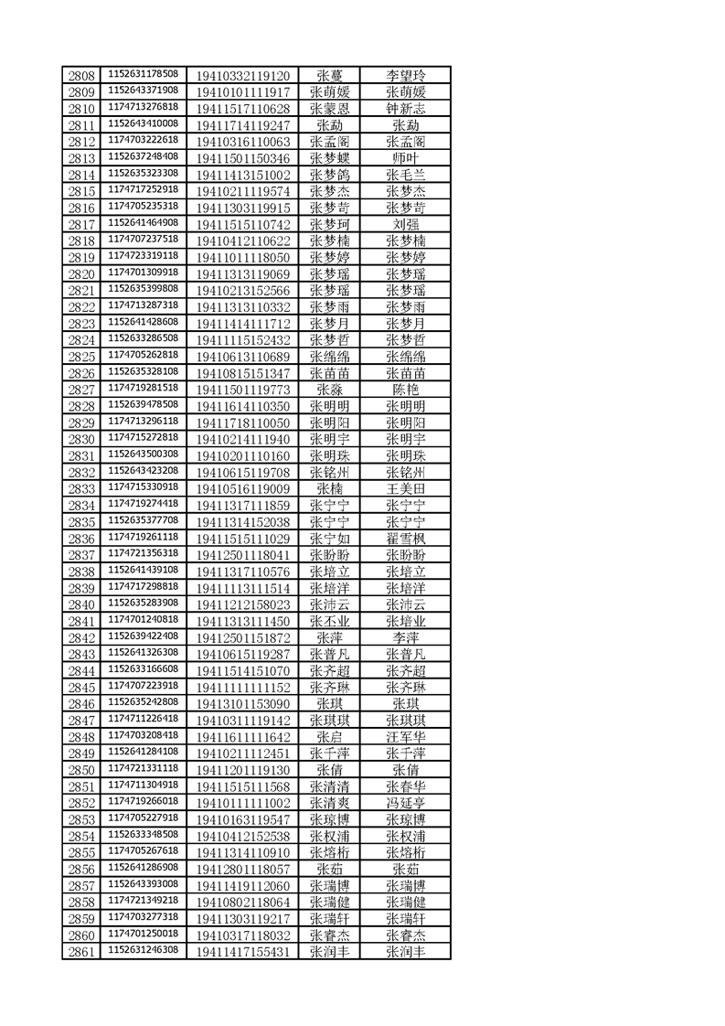 河南工业贸易职业学院2019年河南高职高专平行志愿、征集志愿录取新生和山东高职高专录取新生录取通知书邮件号公示(按姓氏排序)