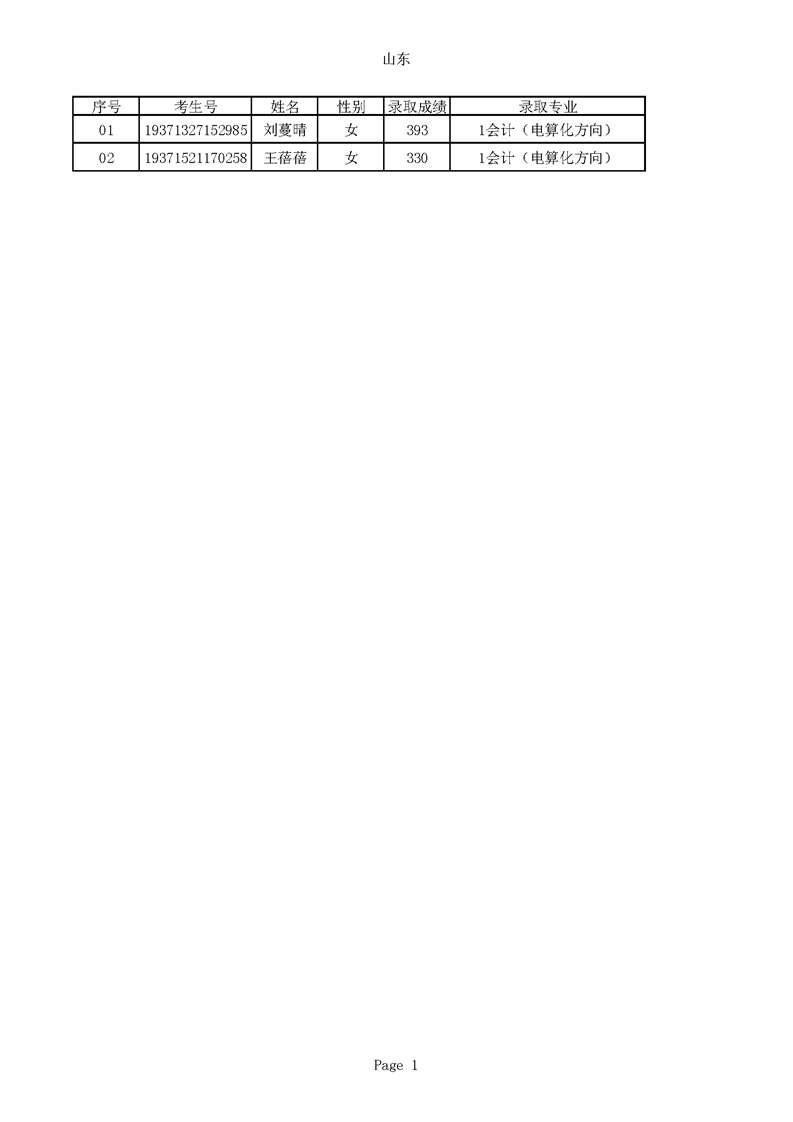 2019年山东高职高专录取新生名单