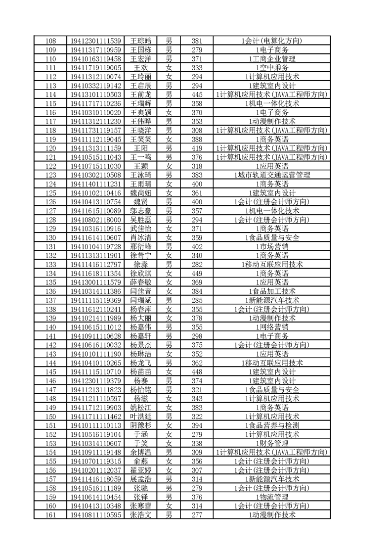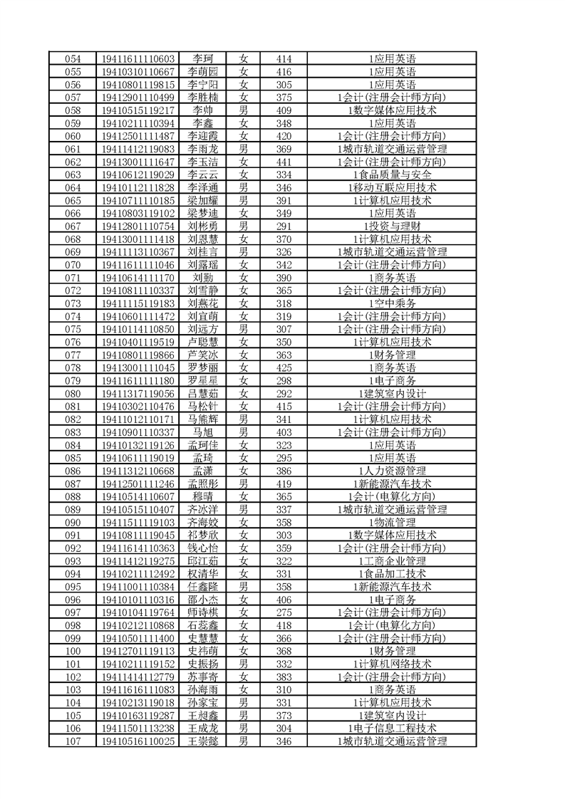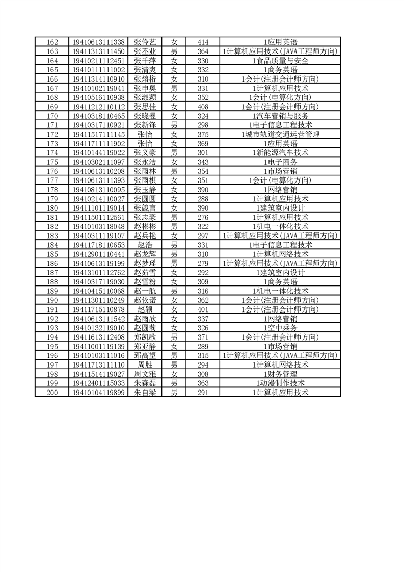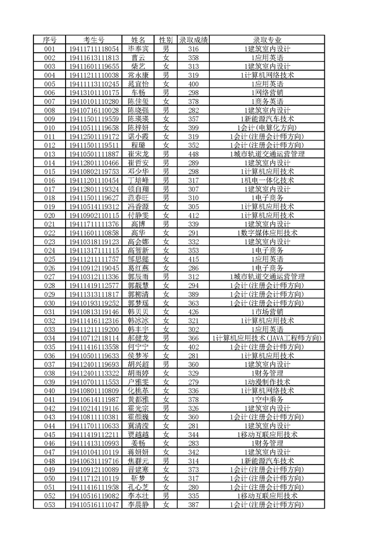 2019年河南高职高专文科征集志愿录取新生名单(按姓氏排序)