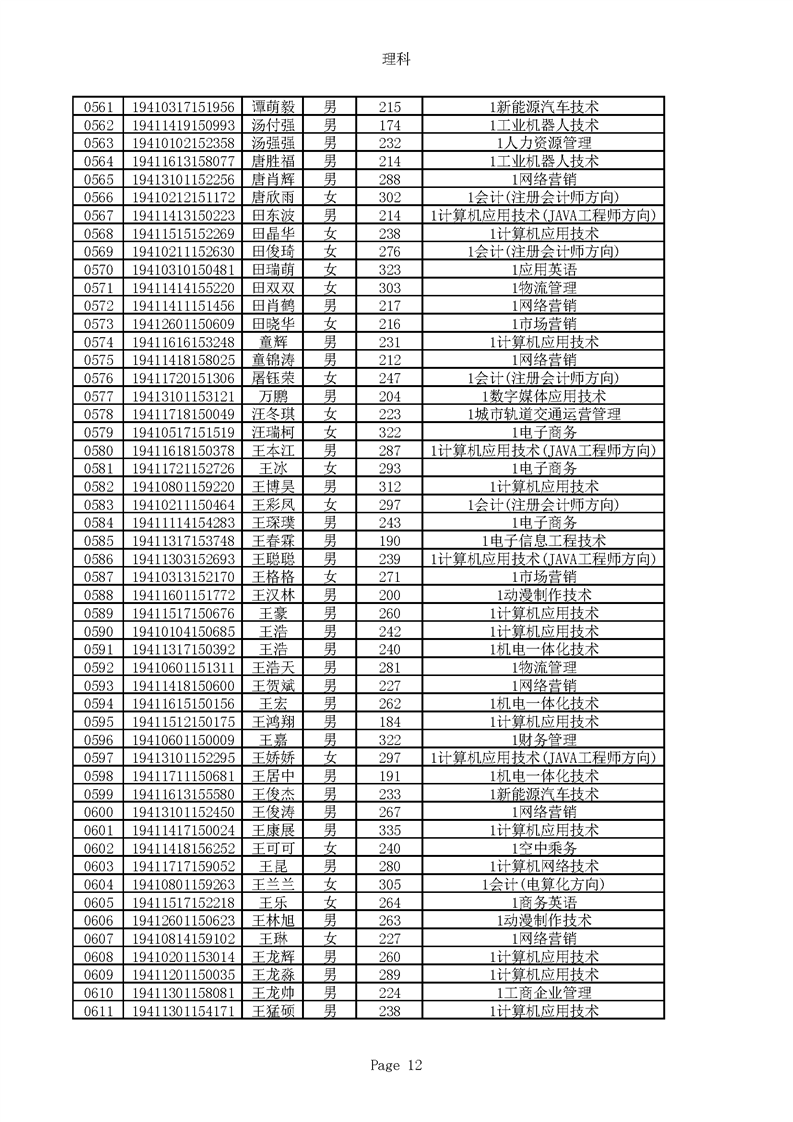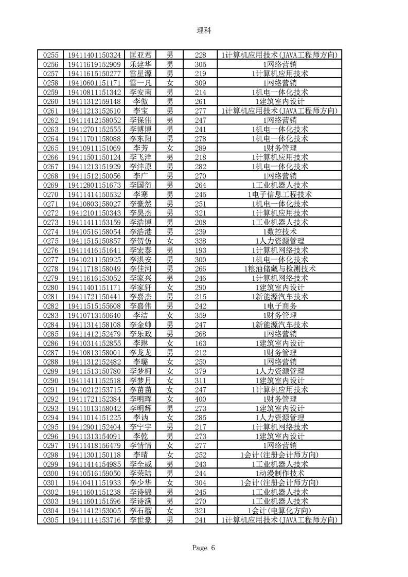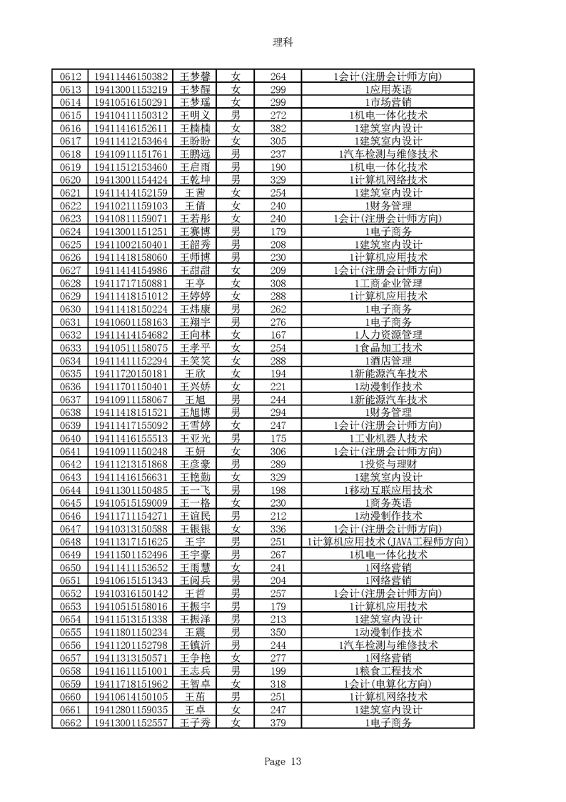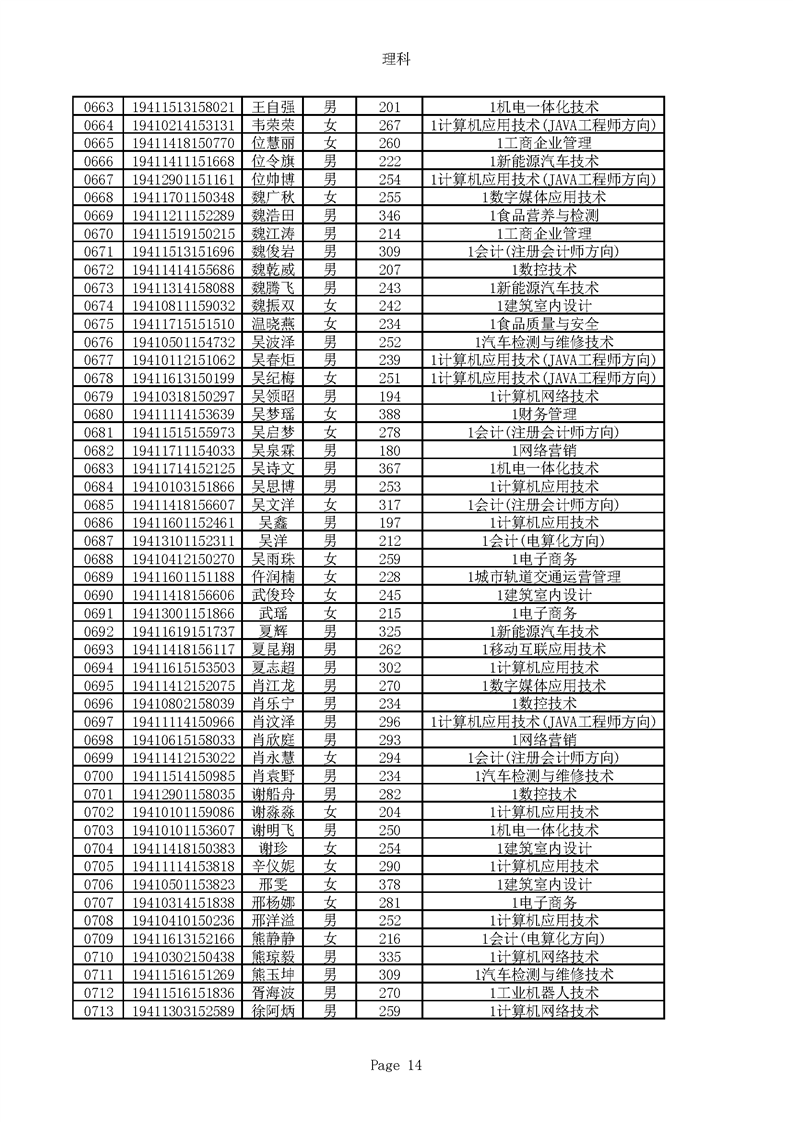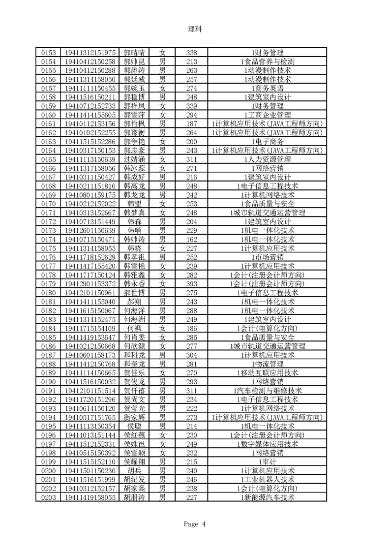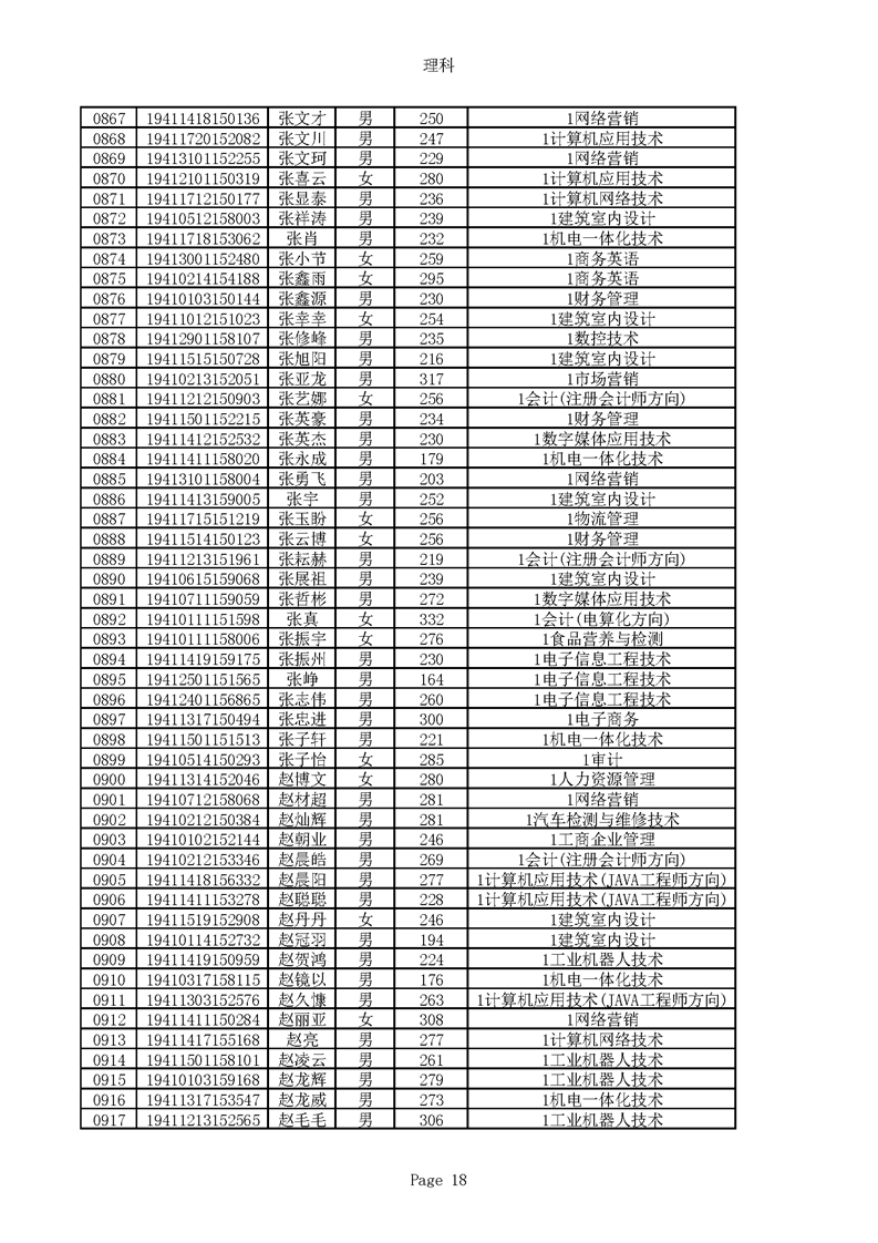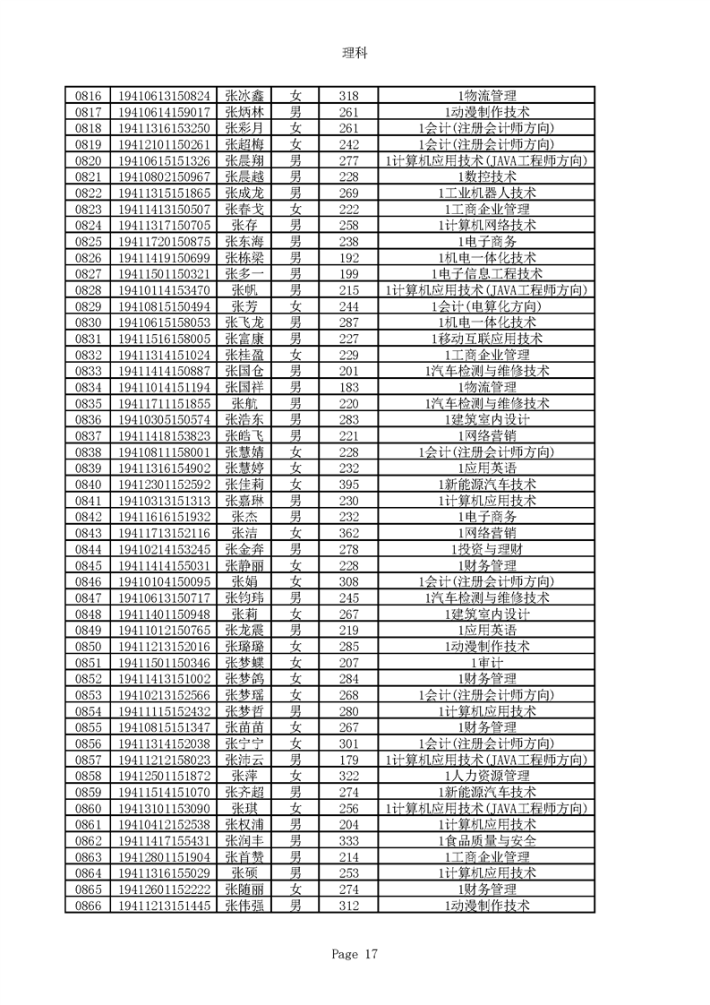 2019年河南高职高专理科平行志愿录取新生名单(按姓氏排序)