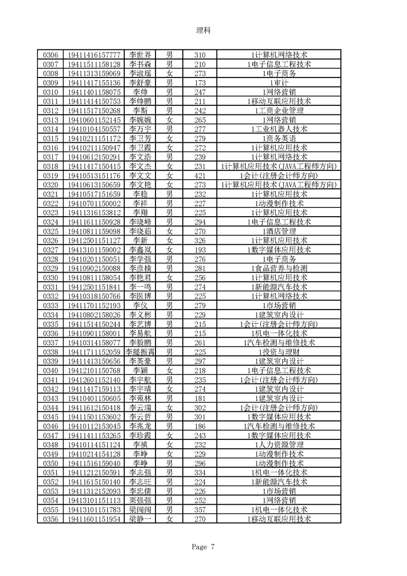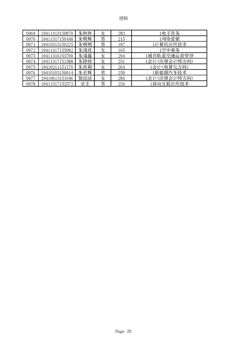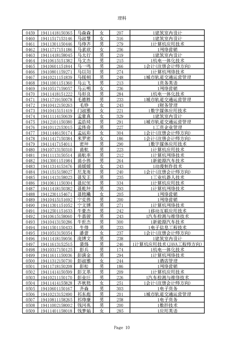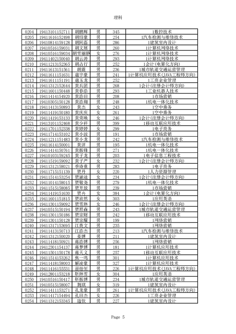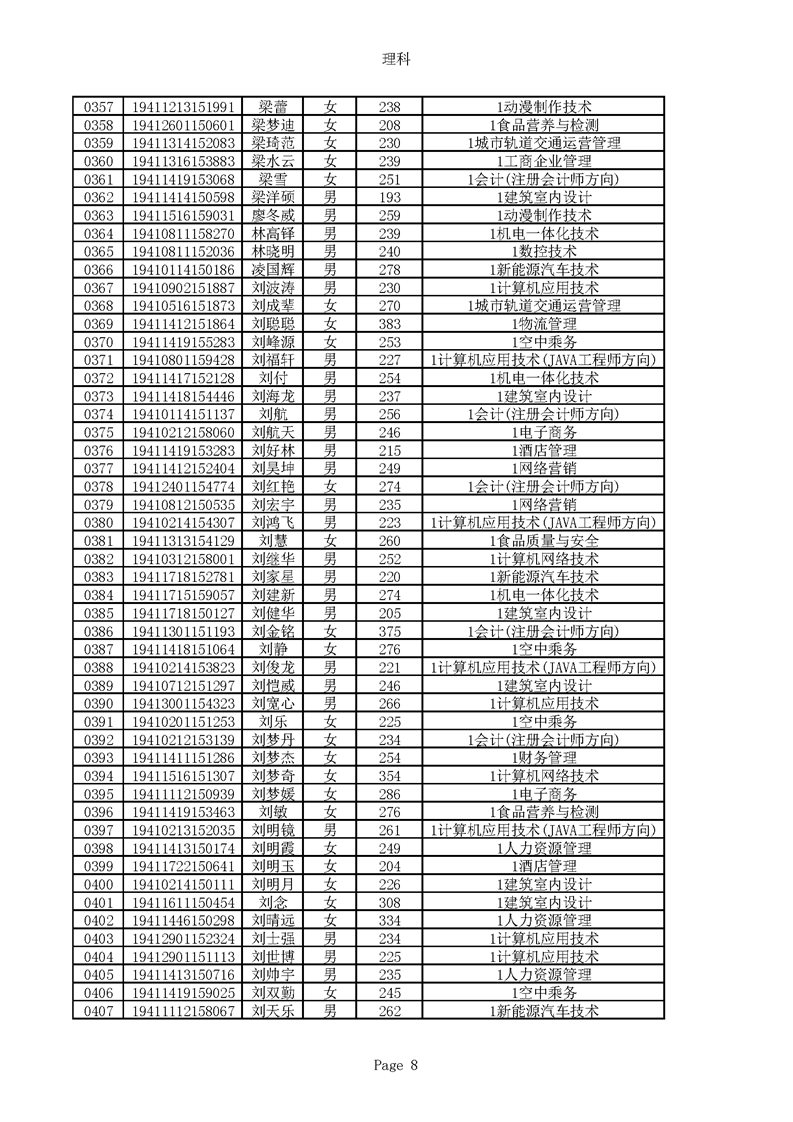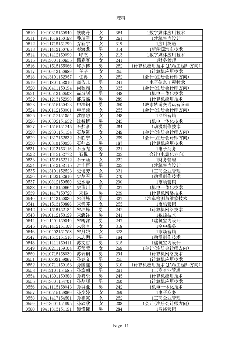 2019年河南高职高专理科平行志愿录取新生名单(按姓氏排序)
