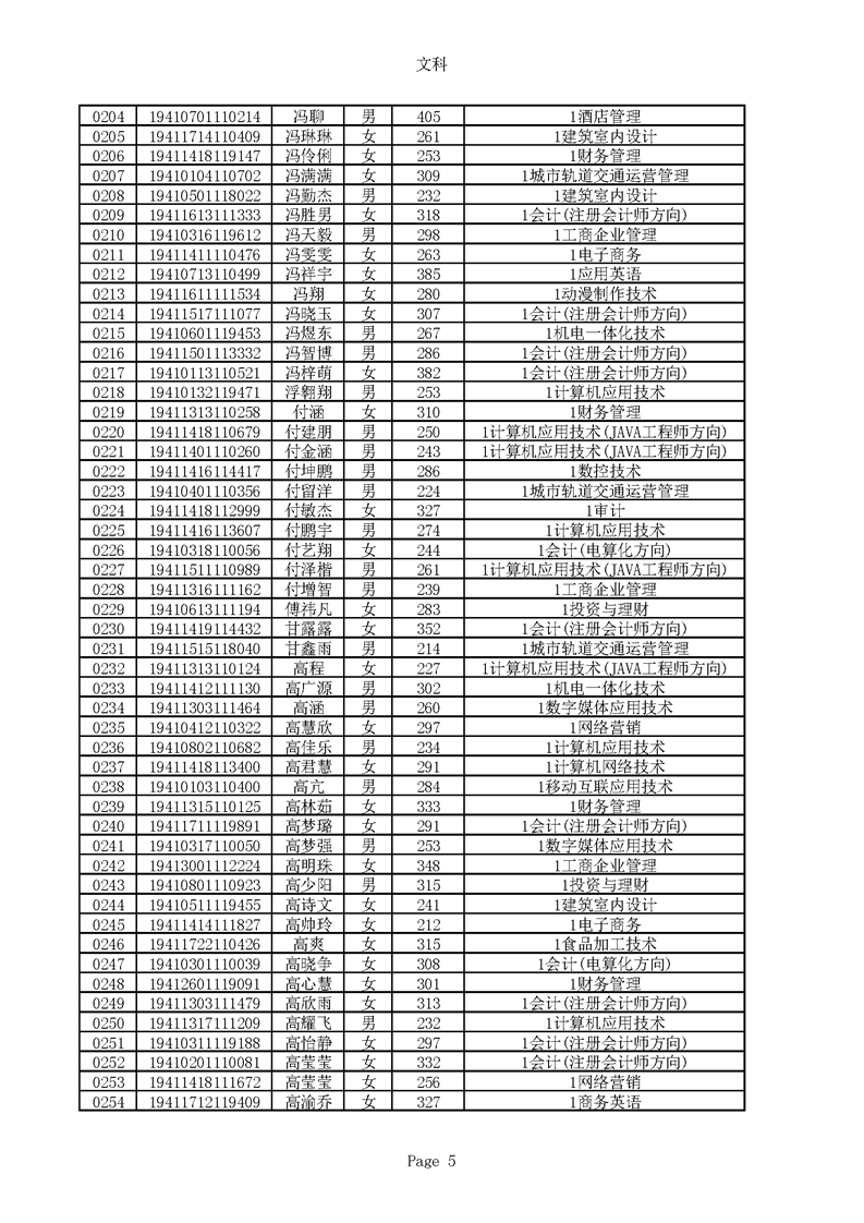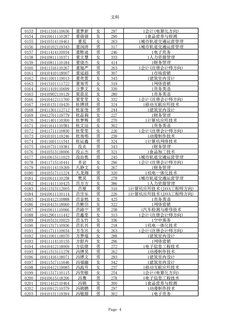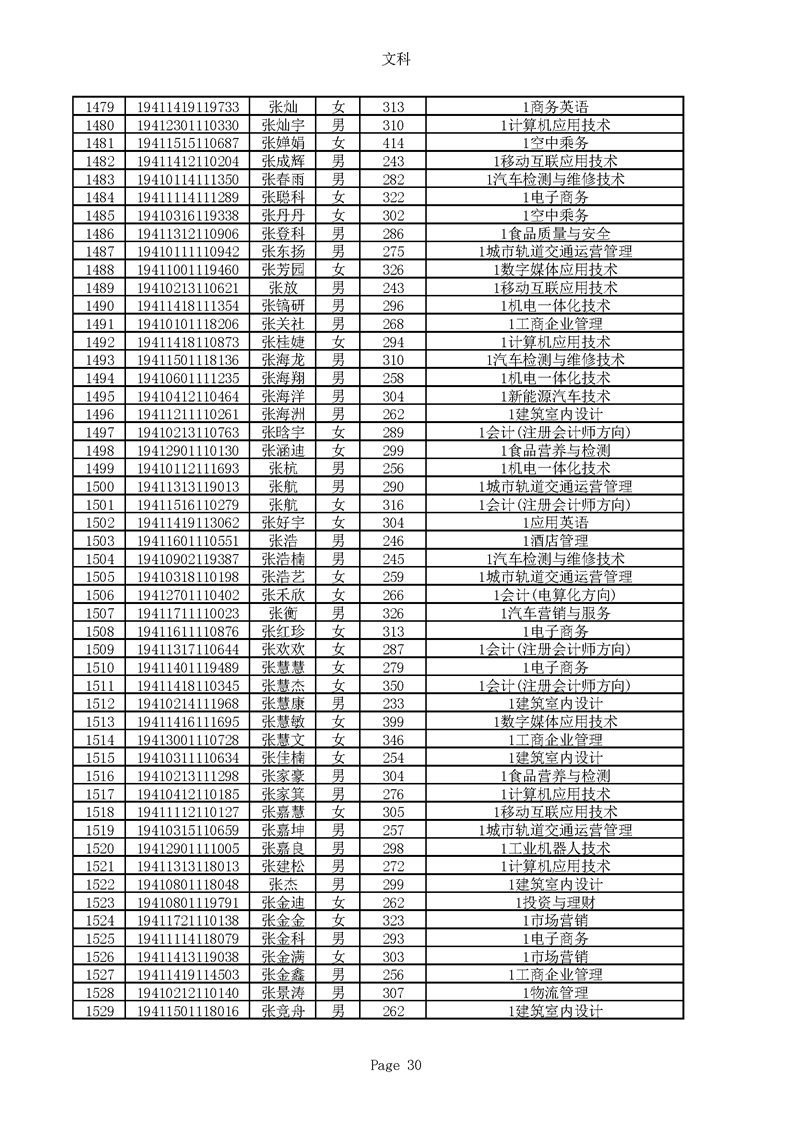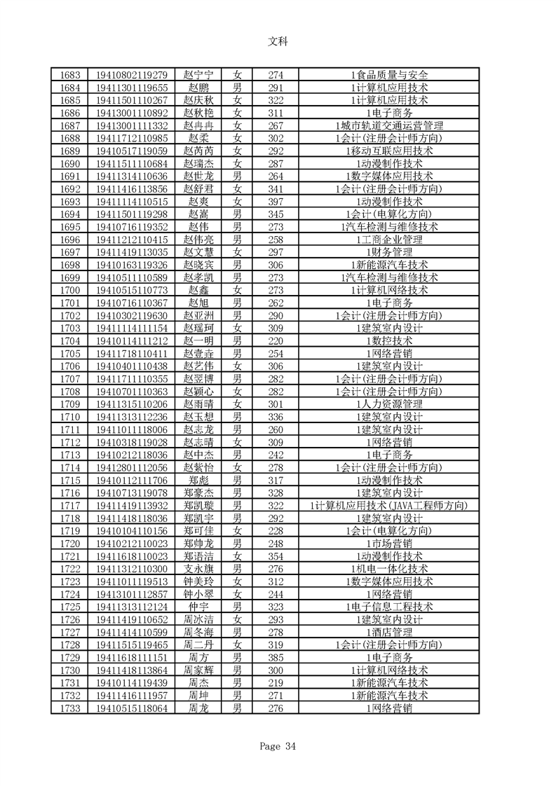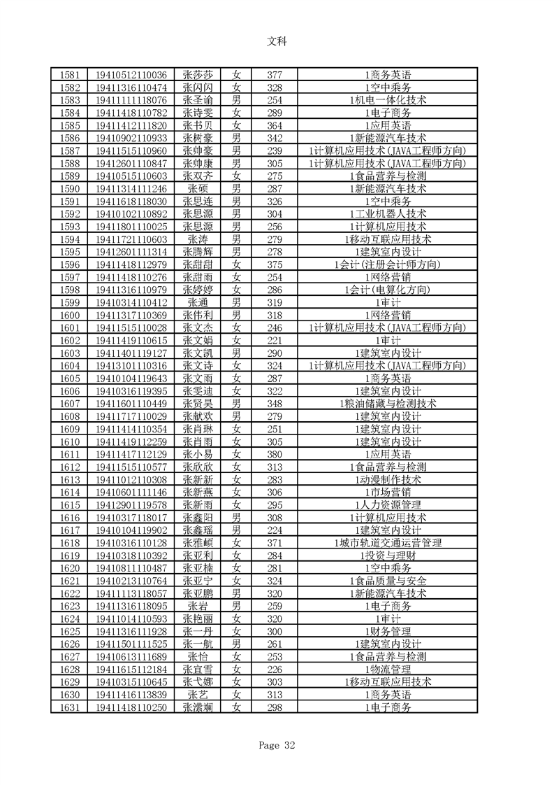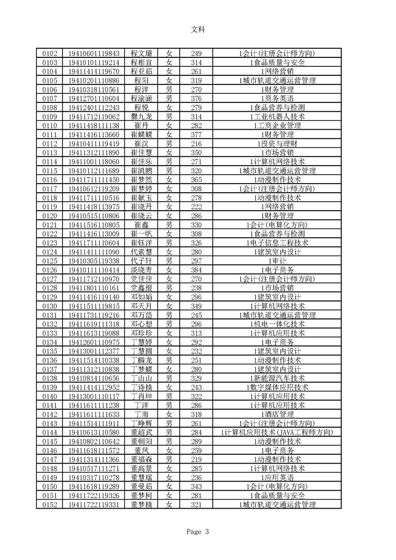 2019年河南高职高专文科平行志愿录取新生名单(按姓氏排序)