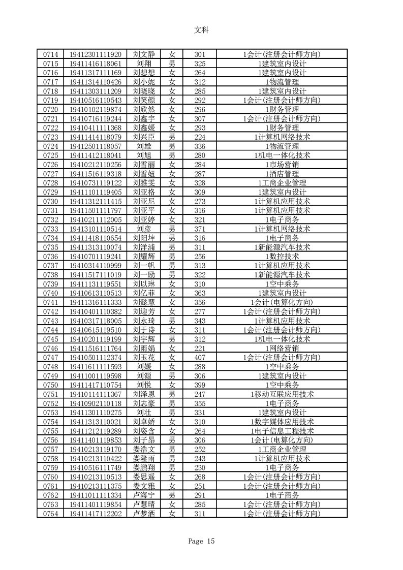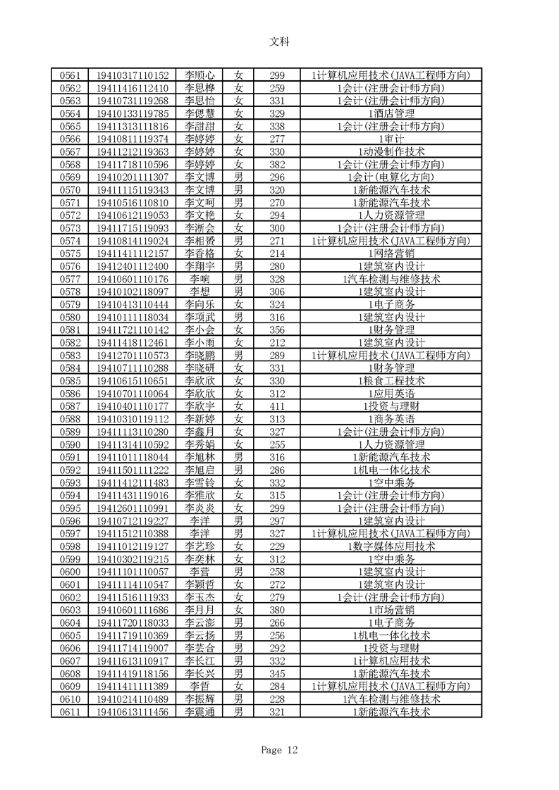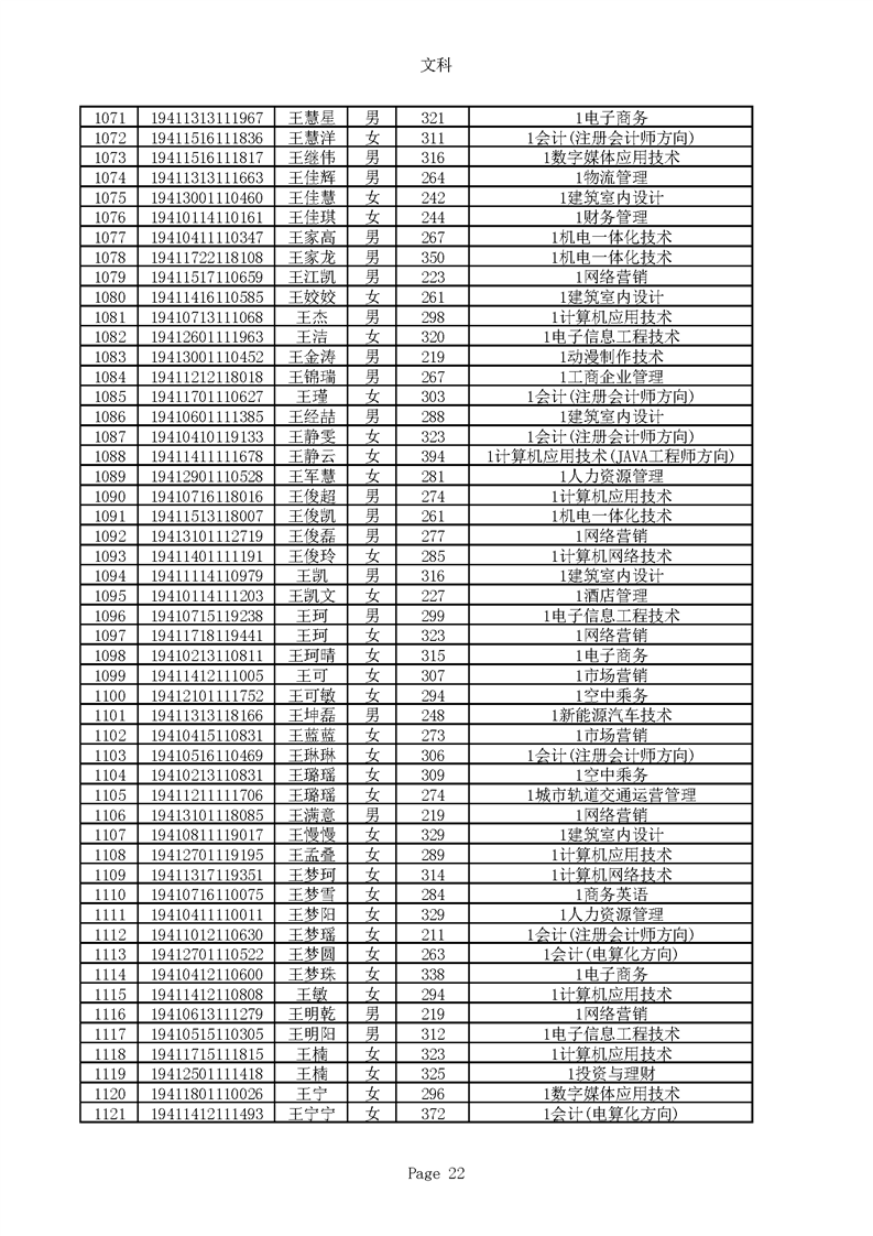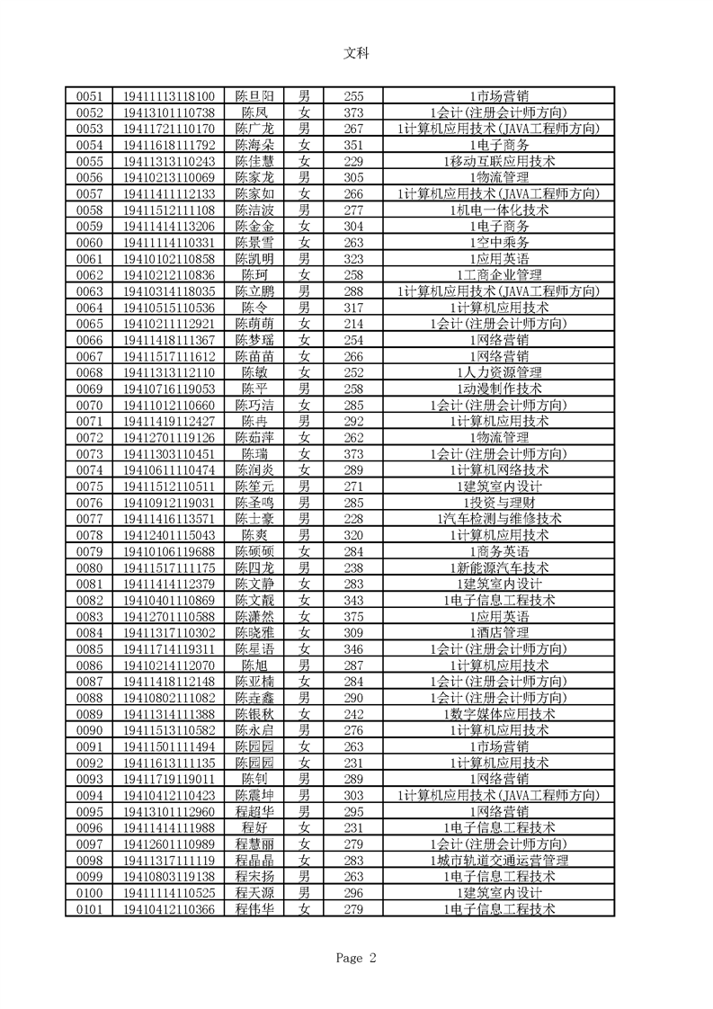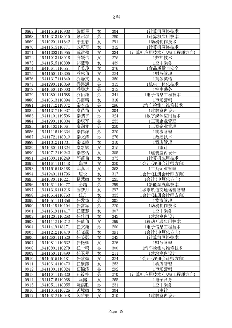 2019年河南高职高专文科平行志愿录取新生名单(按姓氏排序)