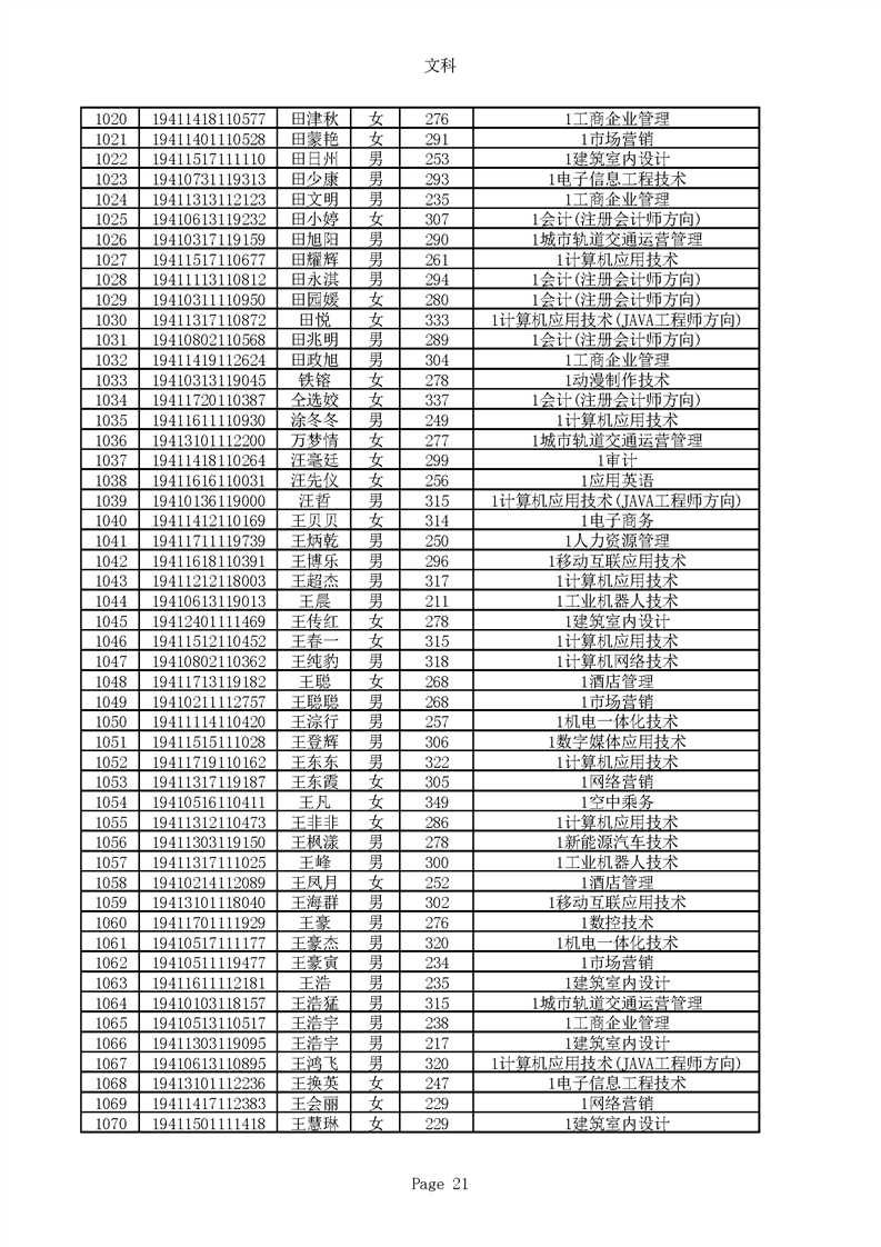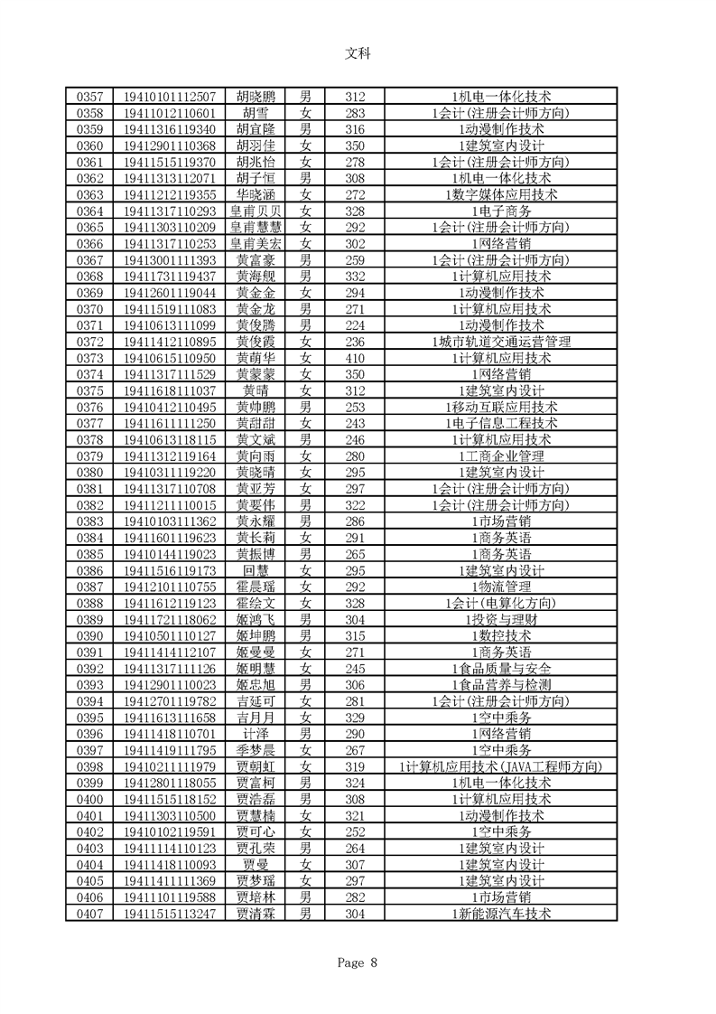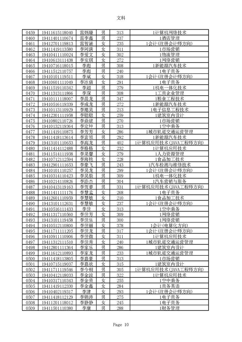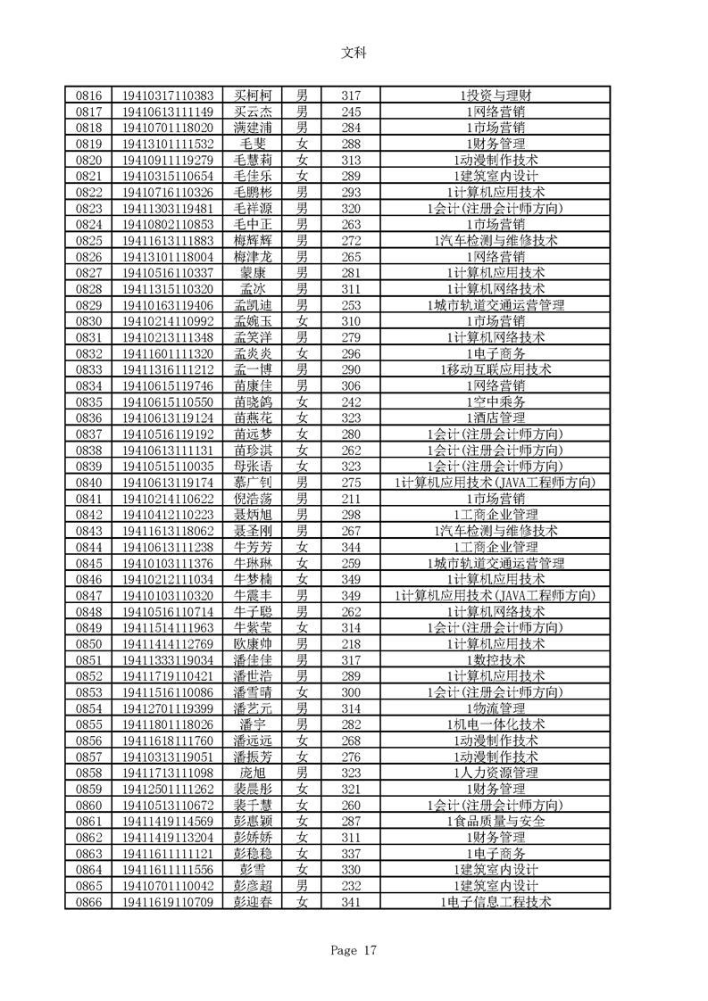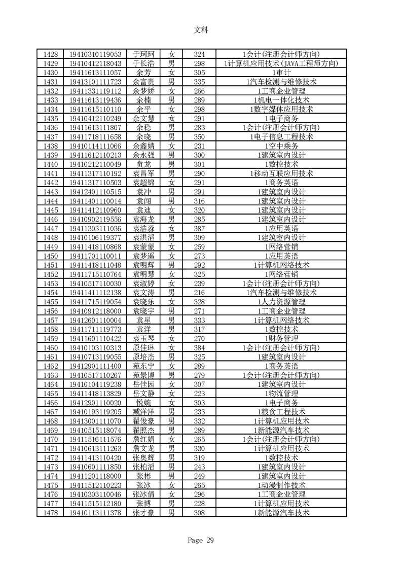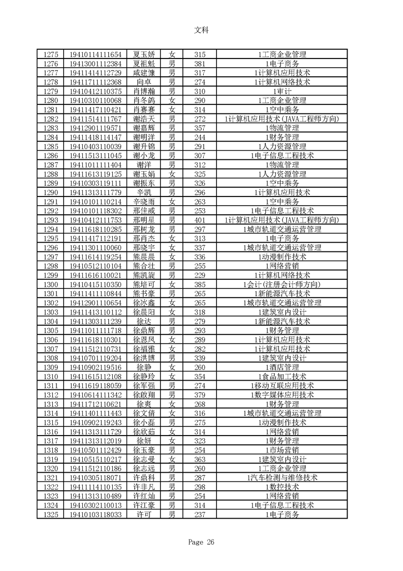 2019年河南高职高专文科平行志愿录取新生名单(按姓氏排序)