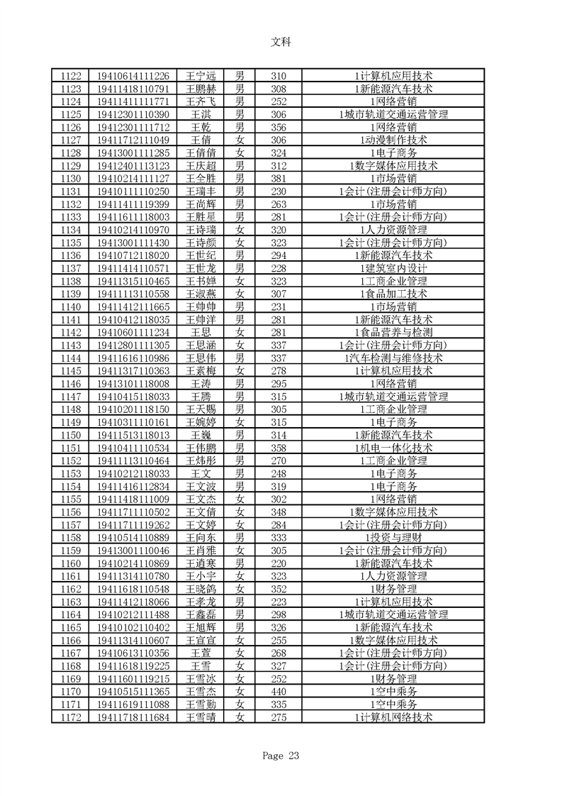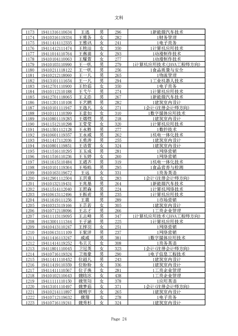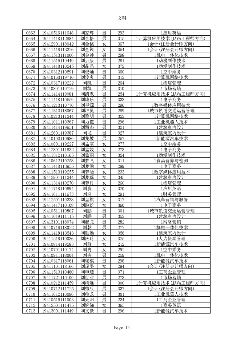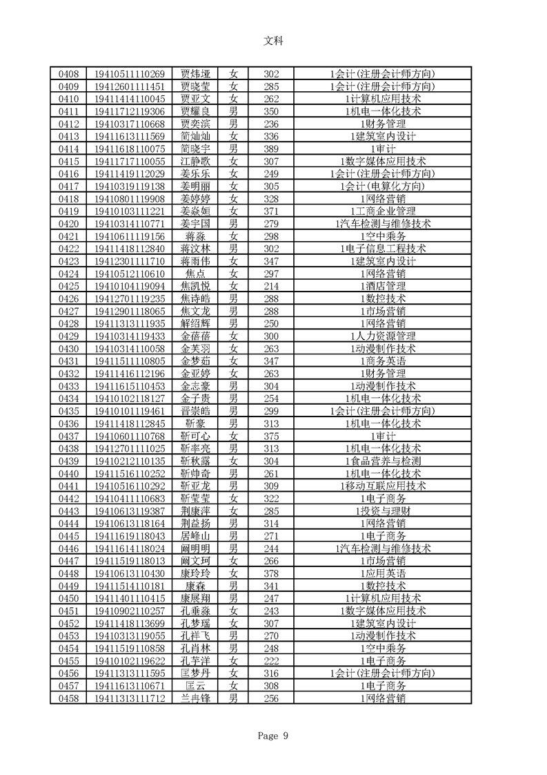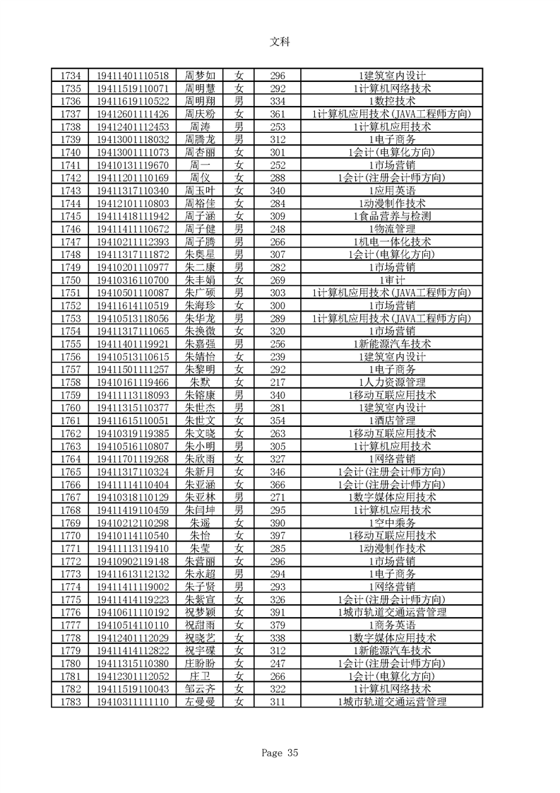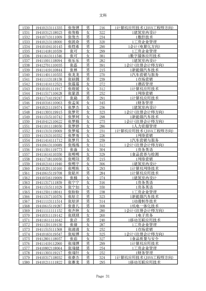 2019年河南高职高专文科平行志愿录取新生名单(按姓氏排序)