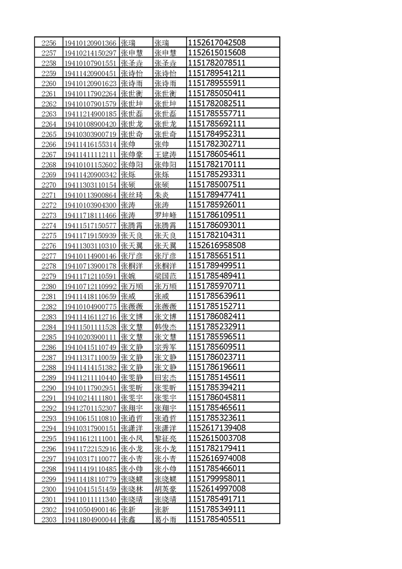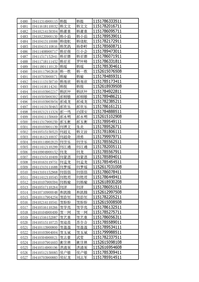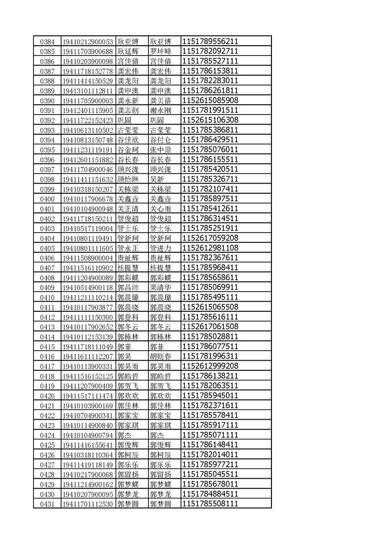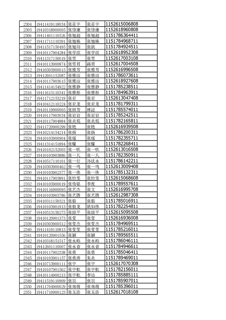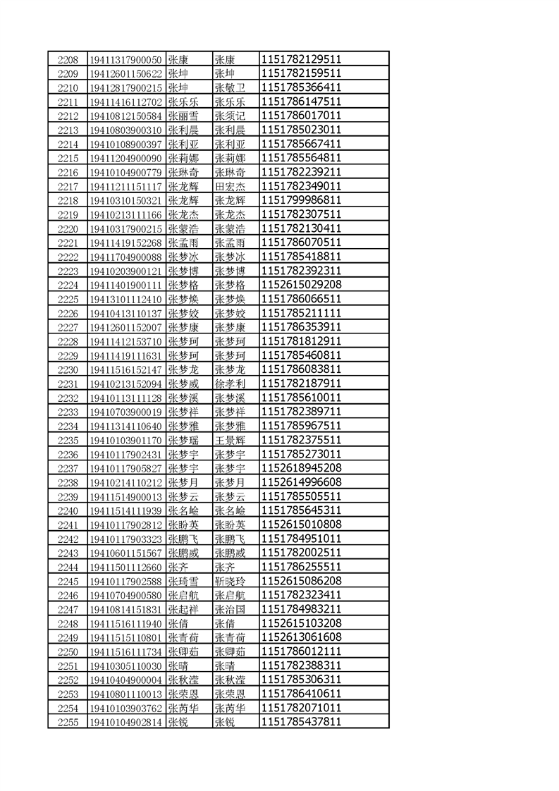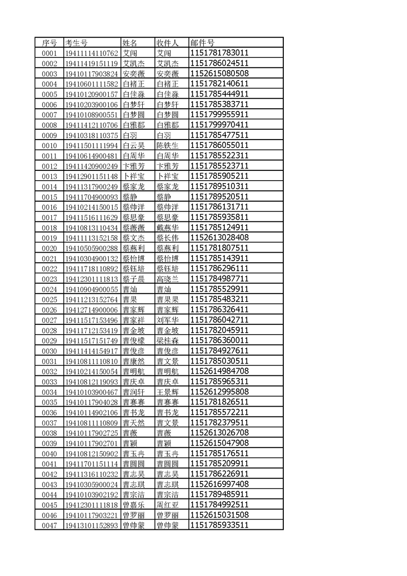 河南工业贸易职业学院2019年单独考试招生新生录取通知书邮件号公示(按姓氏排序)
