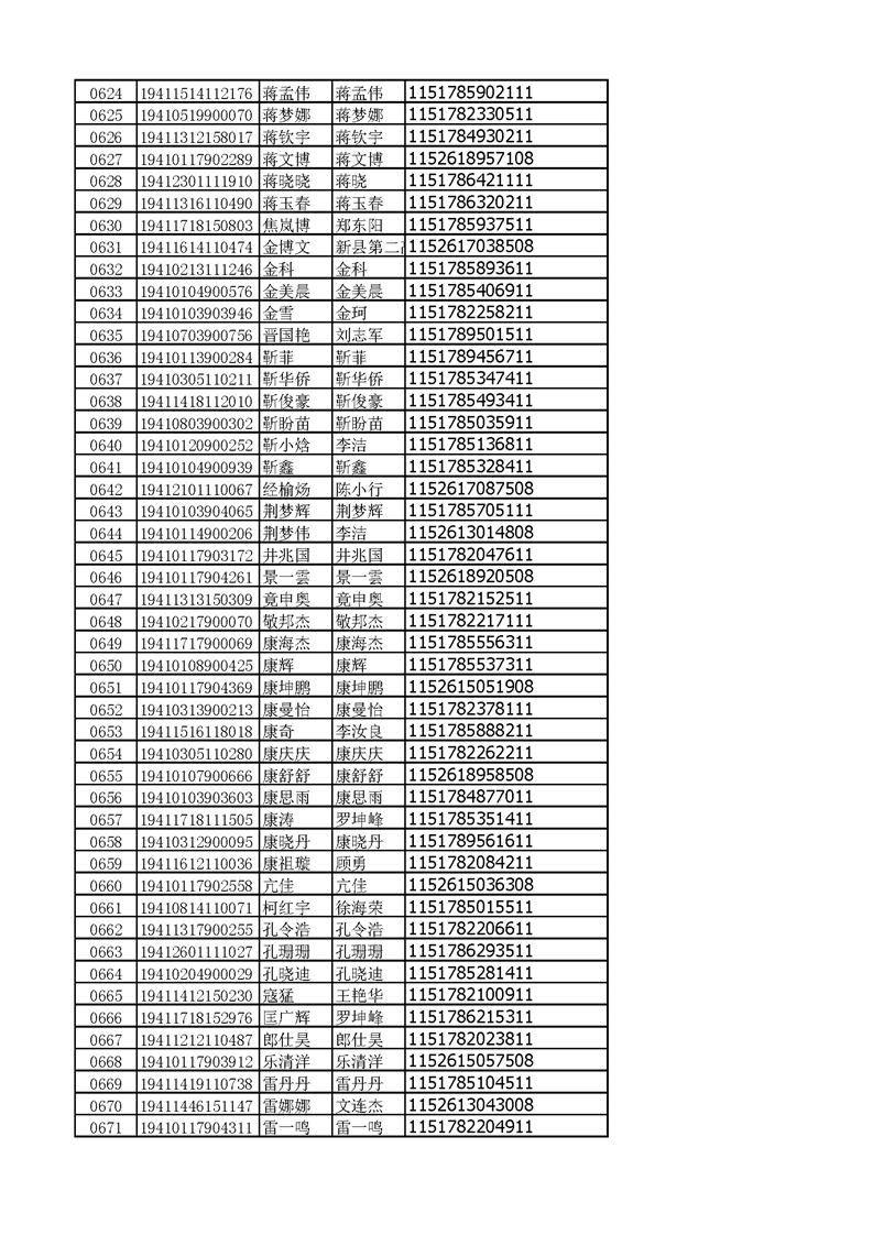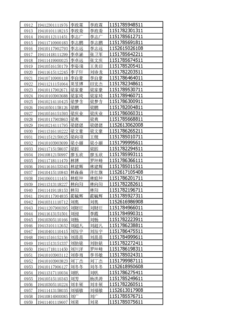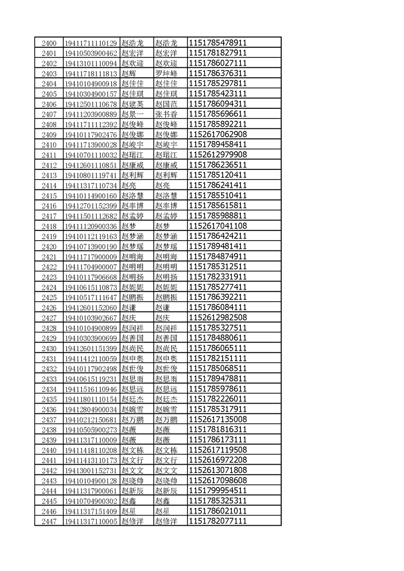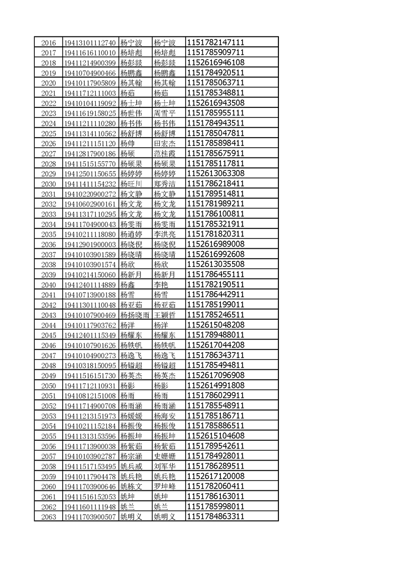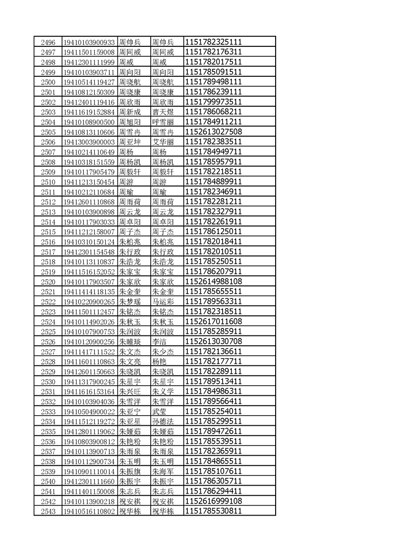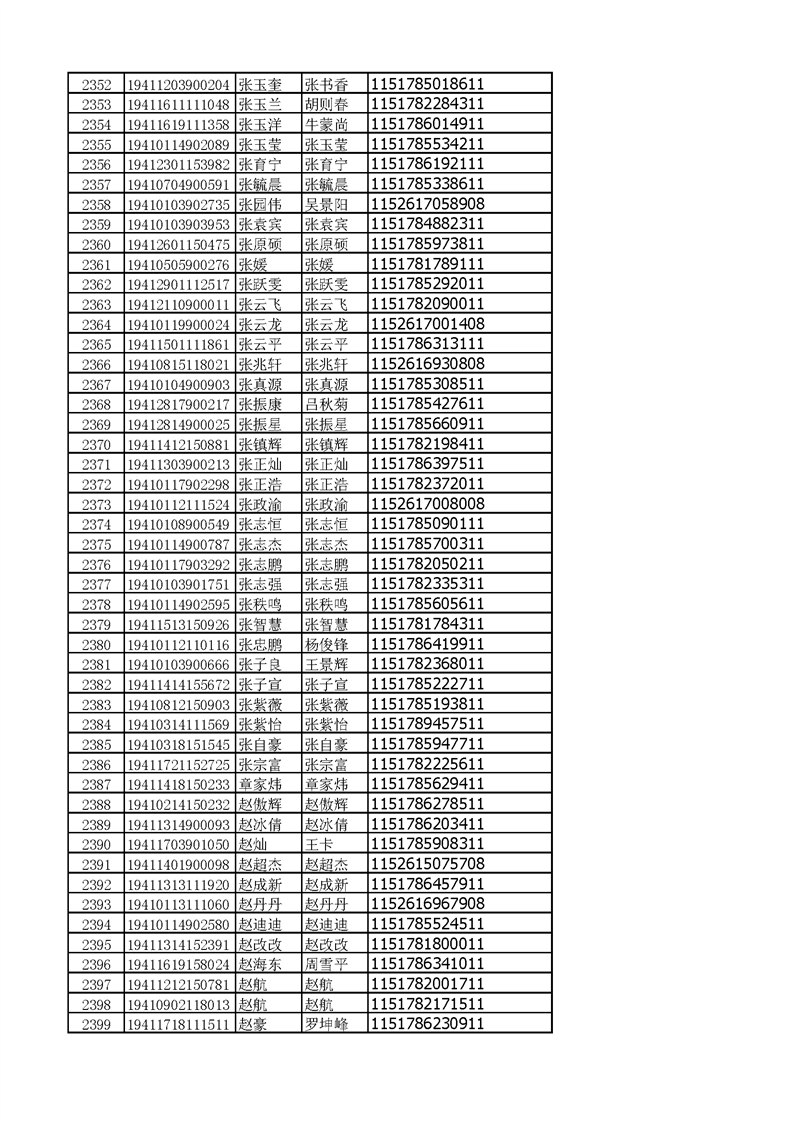河南工业贸易职业学院2019年单独考试招生新生录取通知书邮件号公示(按姓氏排序)