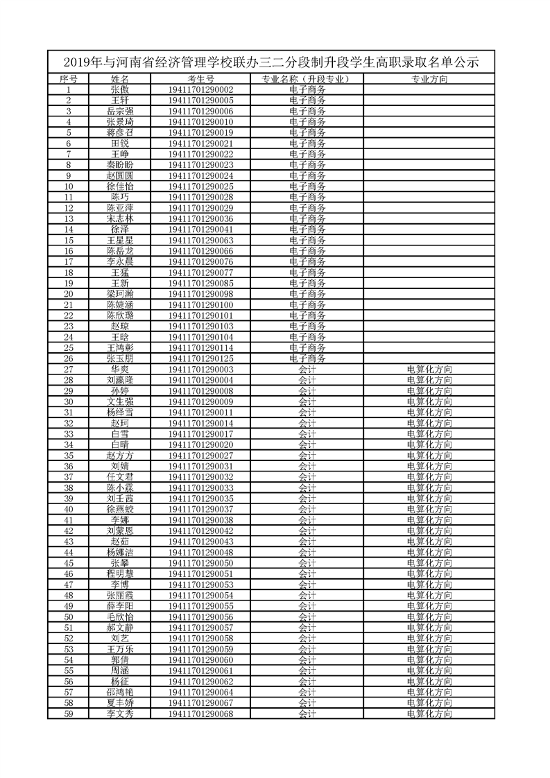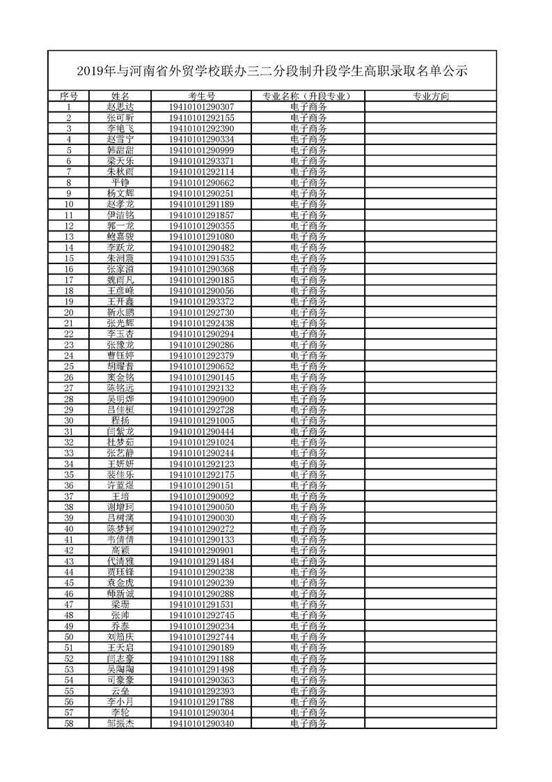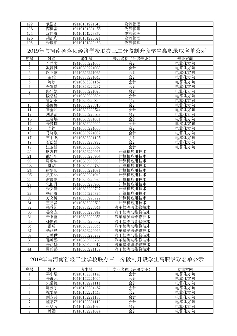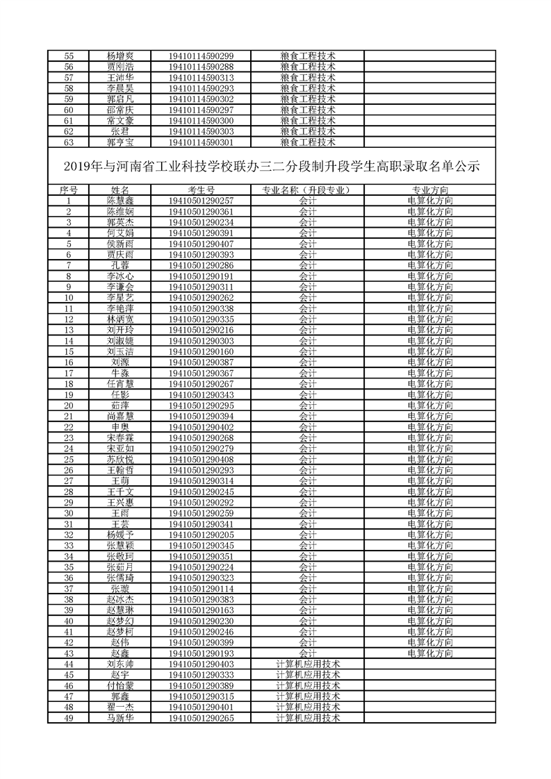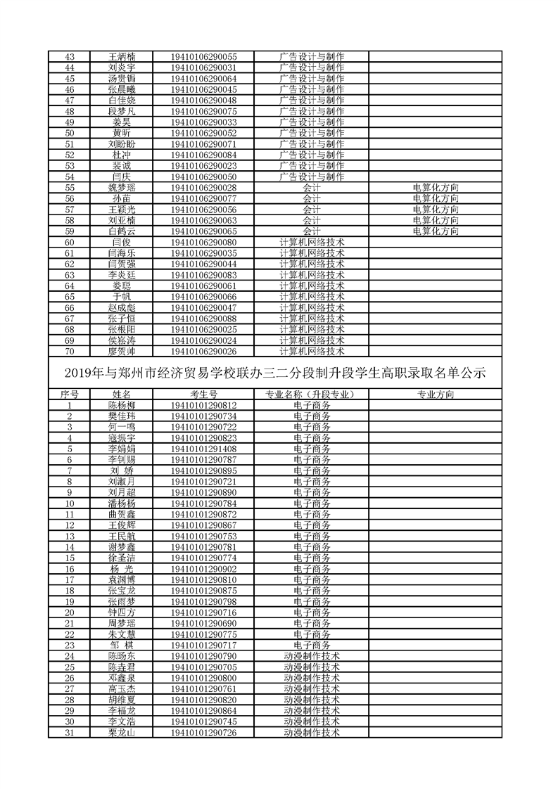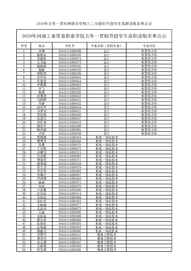 2019年五年一贯制和联办学校三二分段制升段学生高职录取名单公示