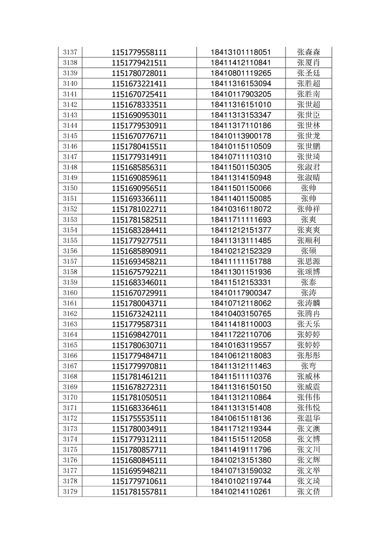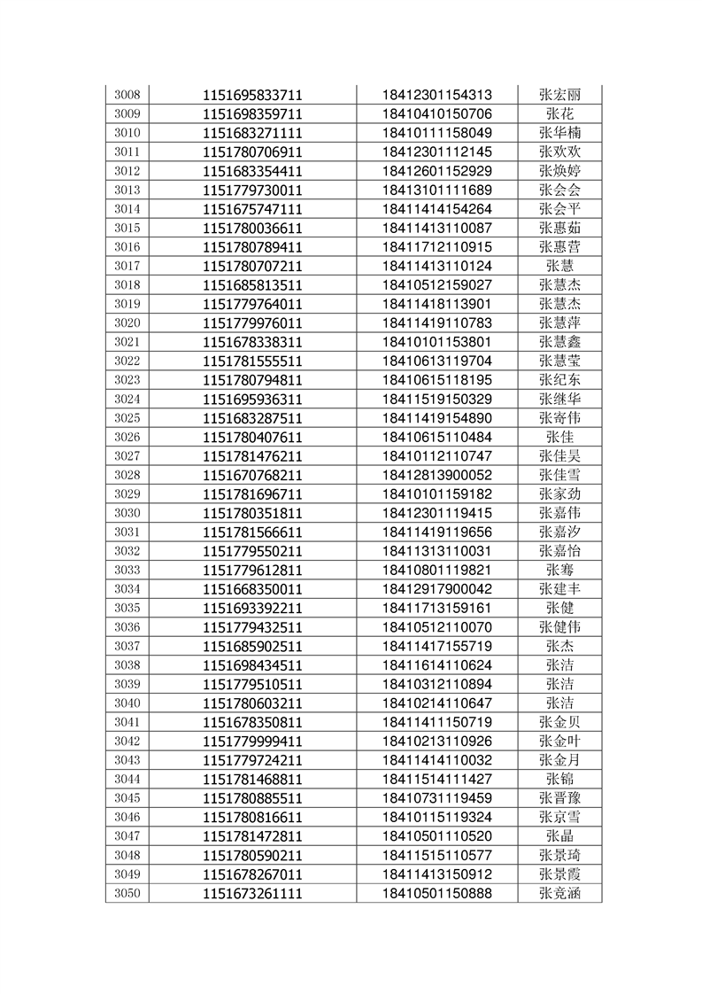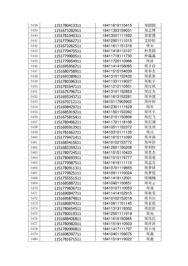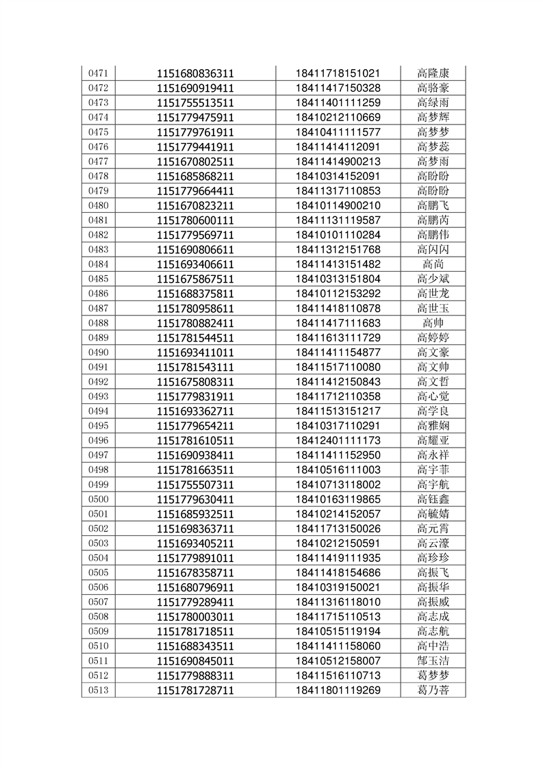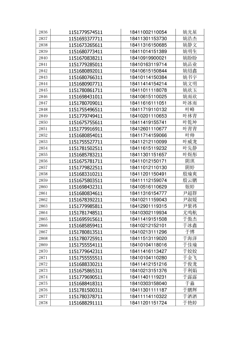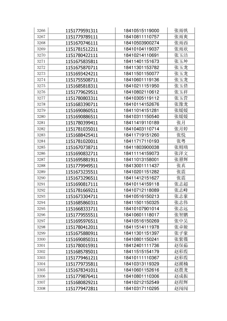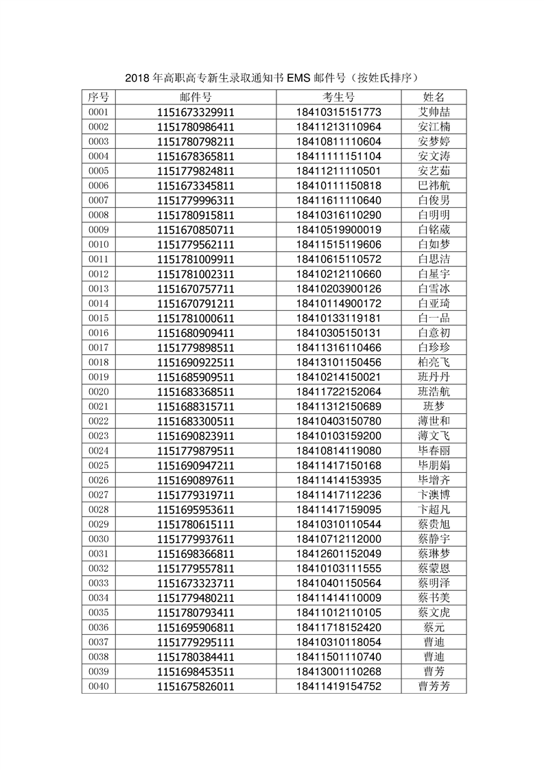 2018年高职高专新生录取通知书EMS邮件号(按姓氏排序)