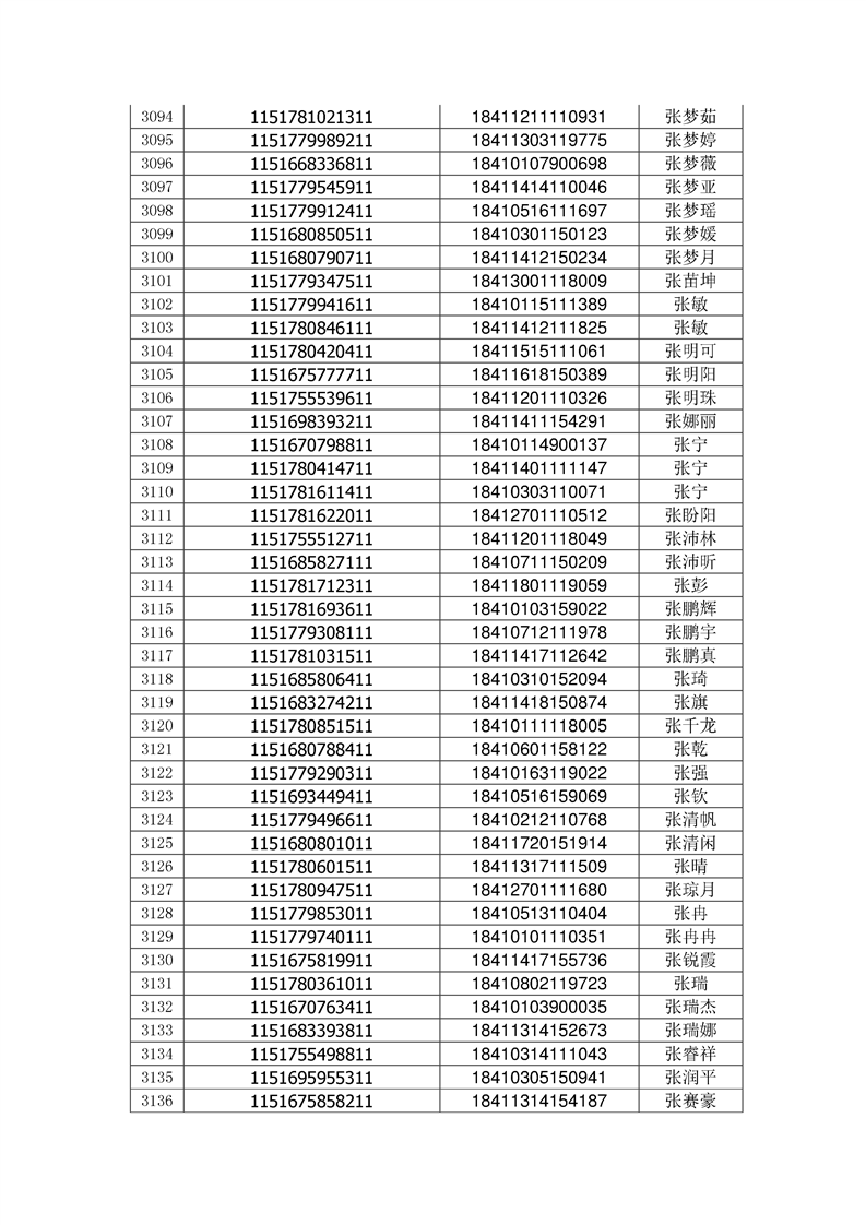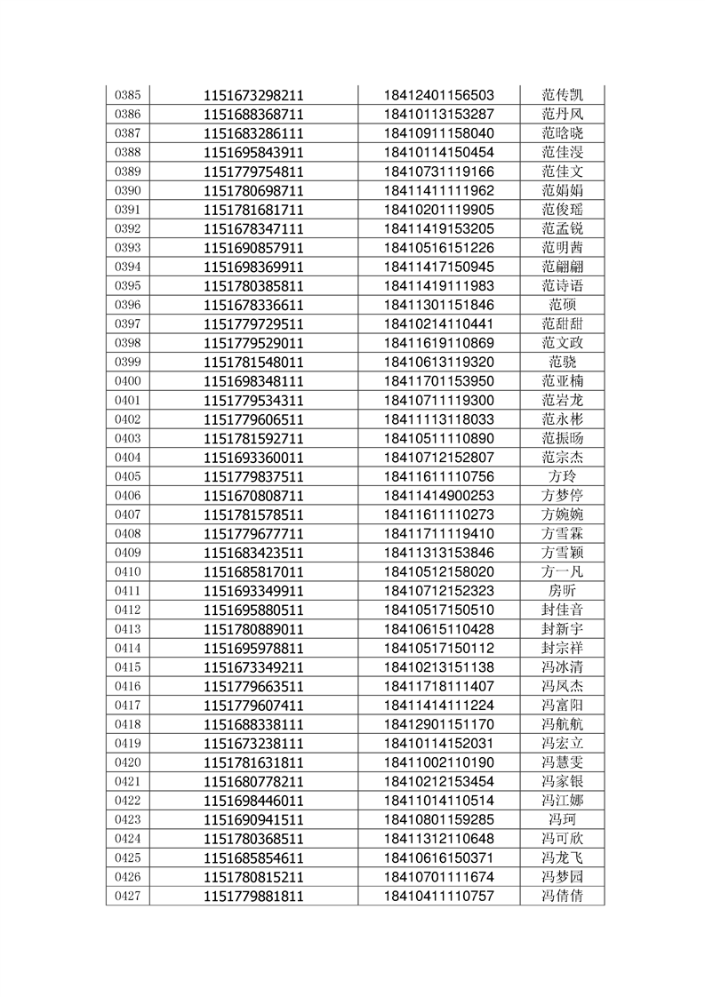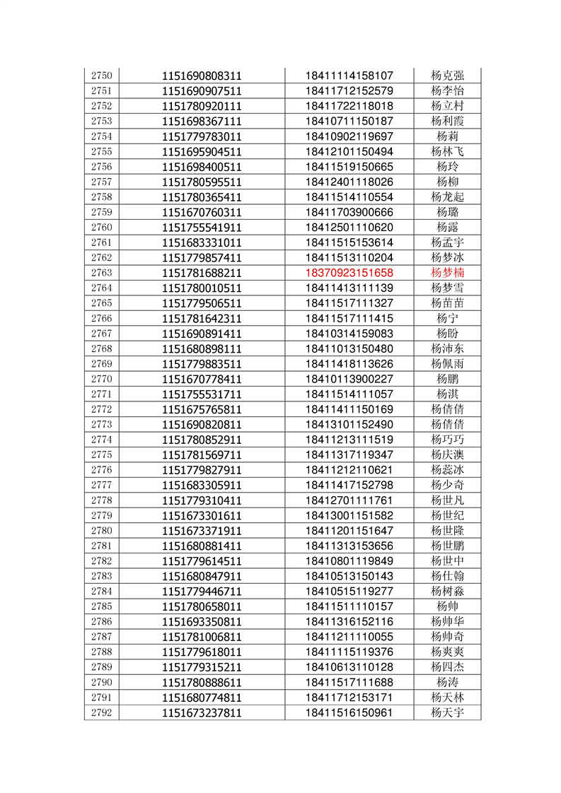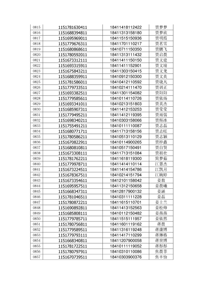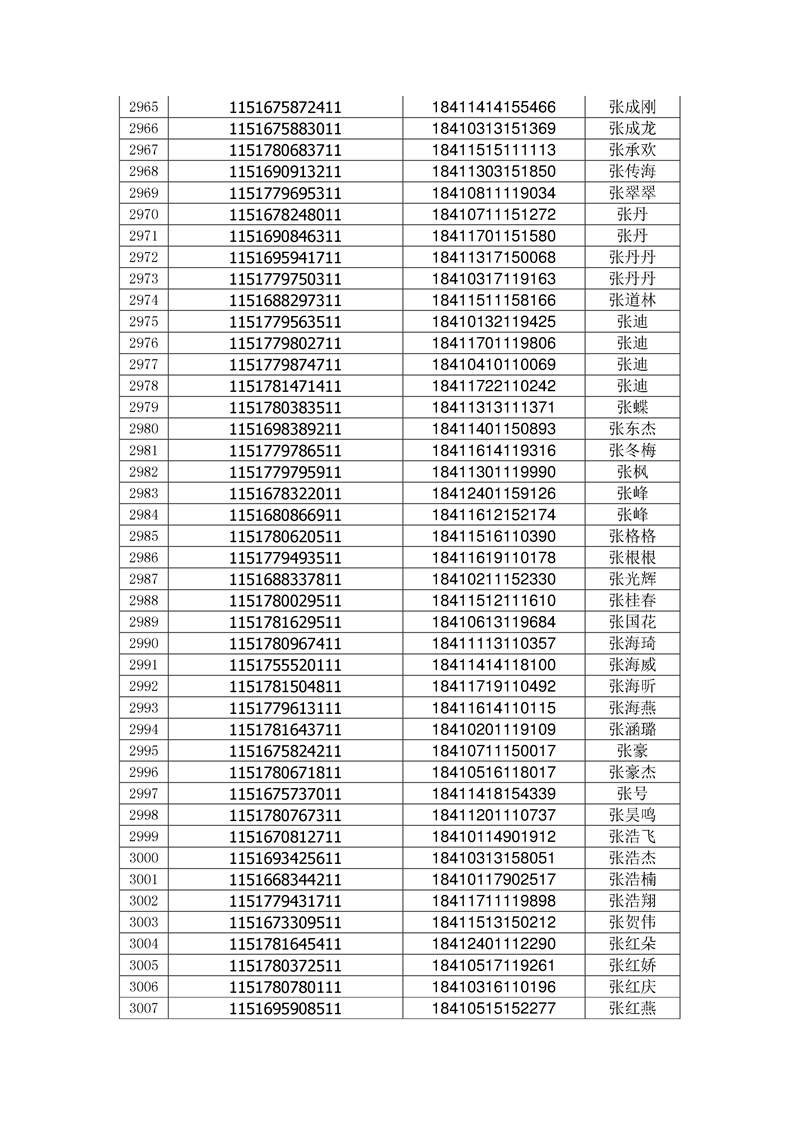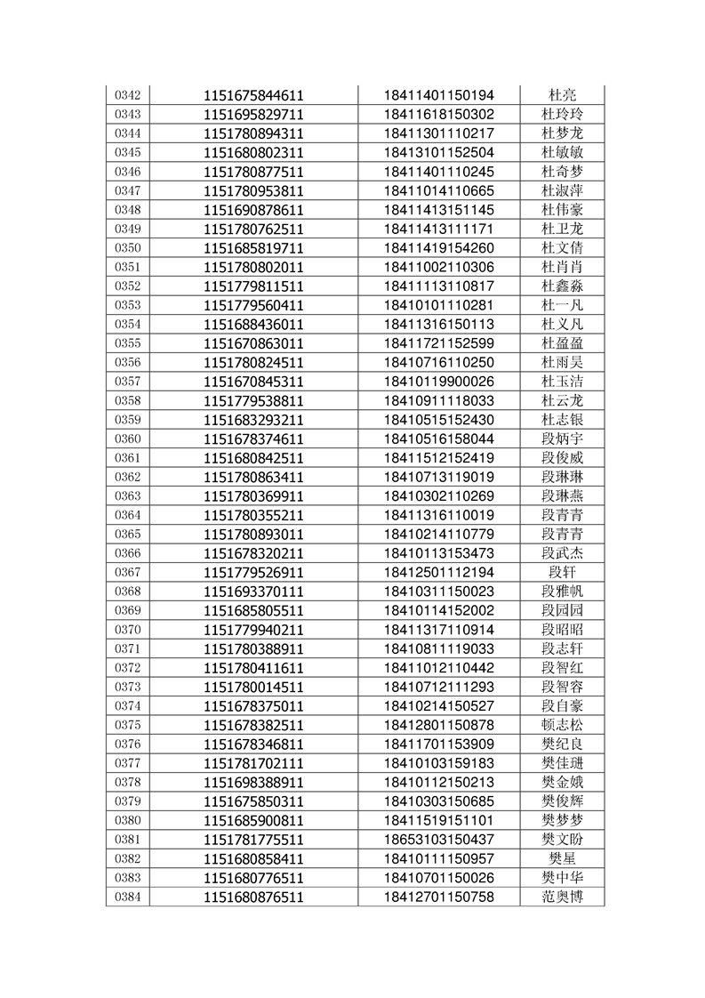 2018年高职高专新生录取通知书EMS邮件号(按姓氏排序)