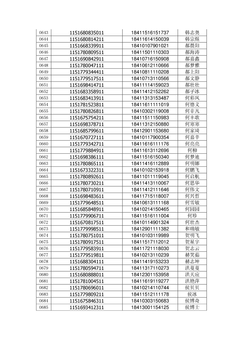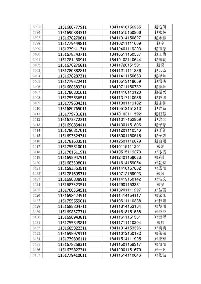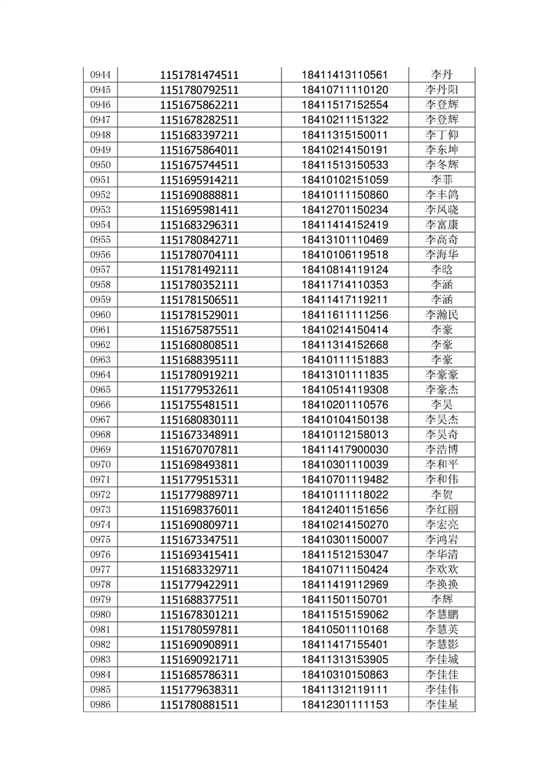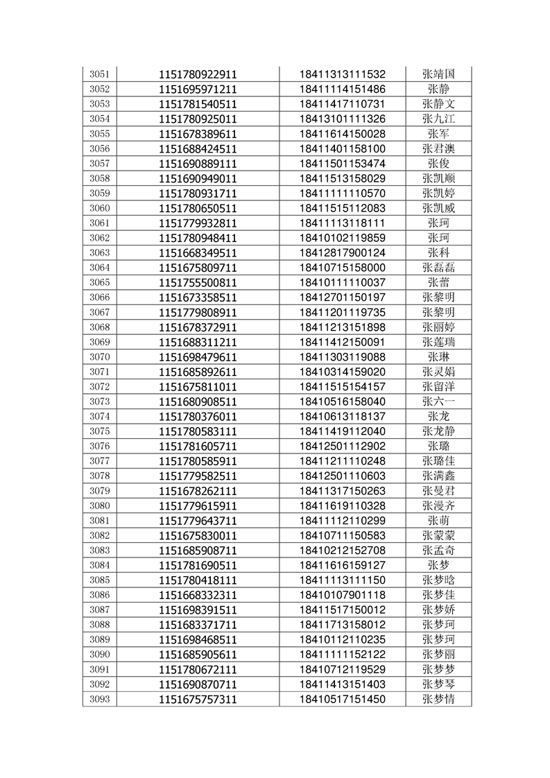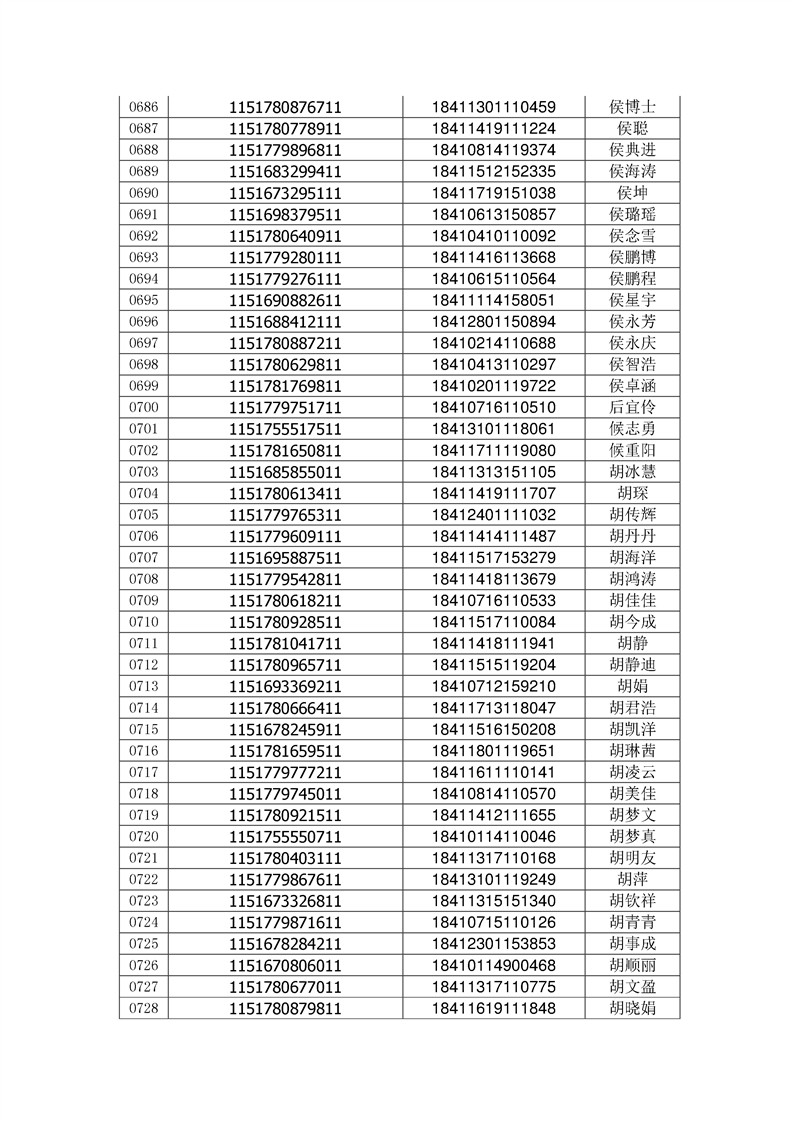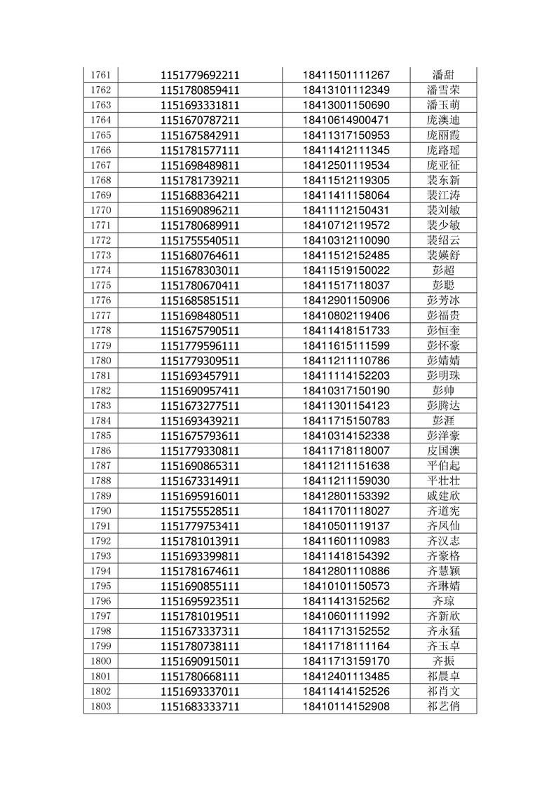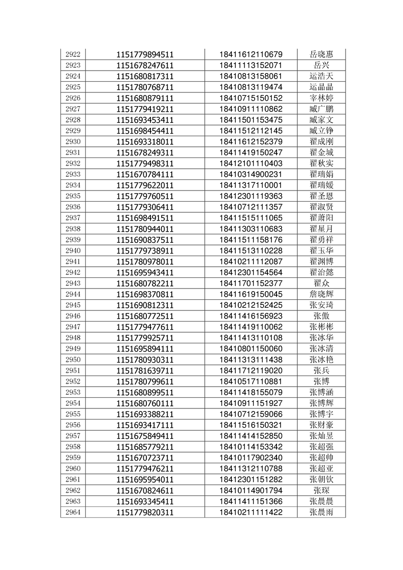 2018年高职高专新生录取通知书EMS邮件号(按姓氏排序)