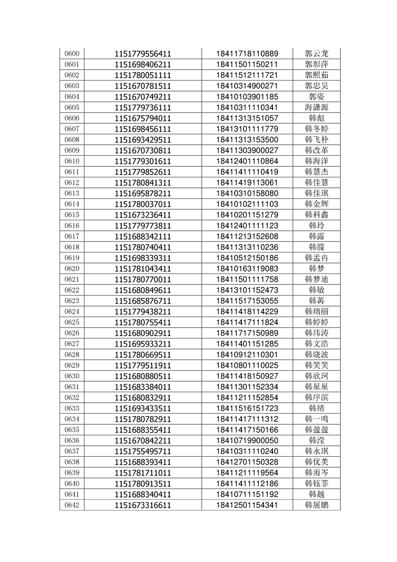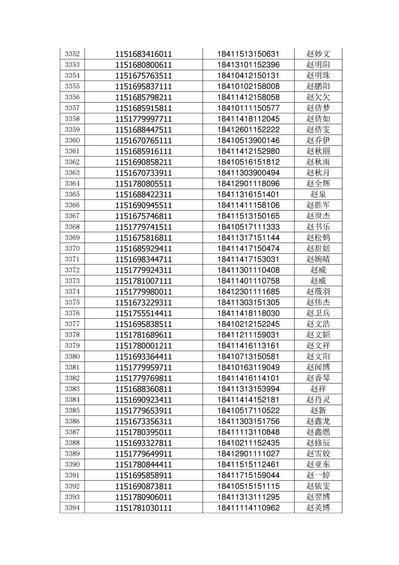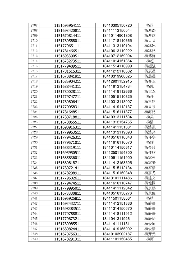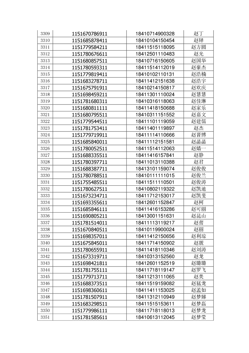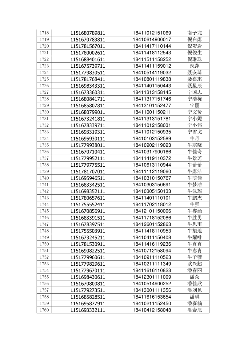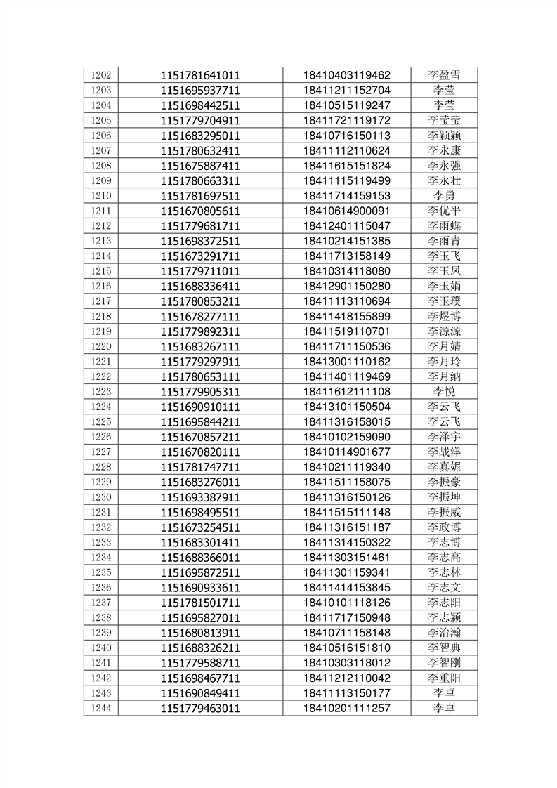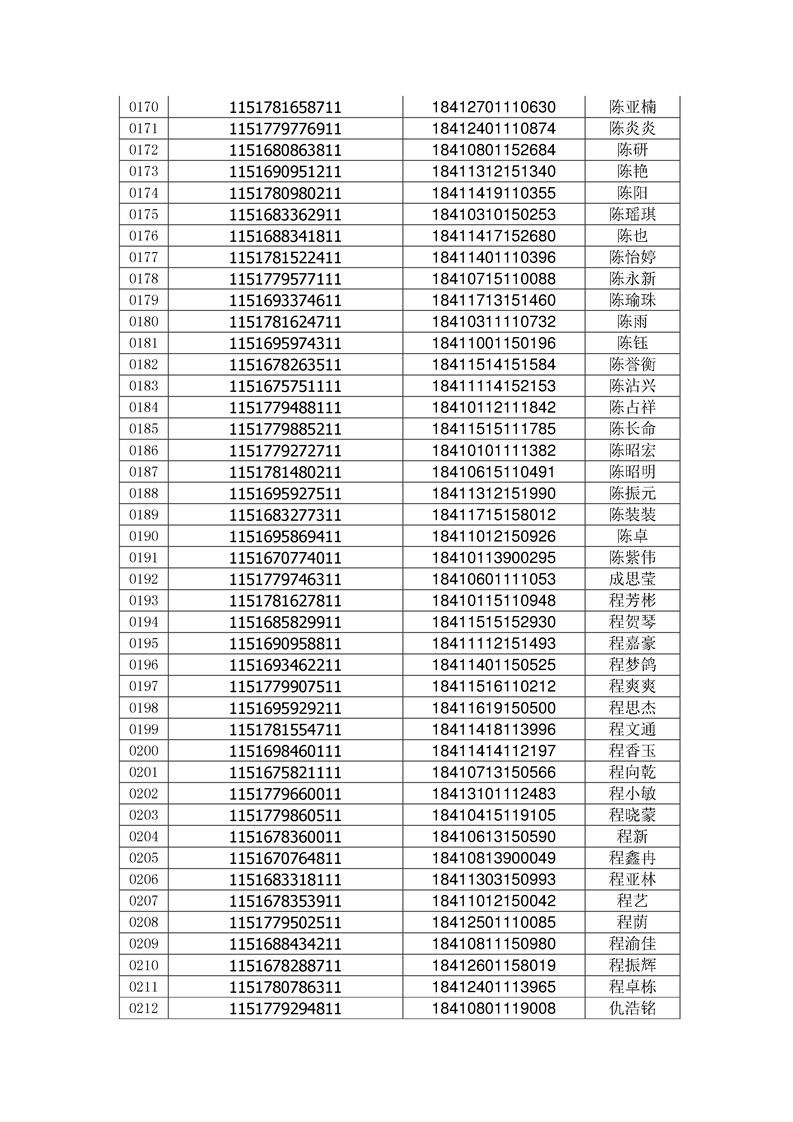 2018年高职高专新生录取通知书EMS邮件号(按姓氏排序)