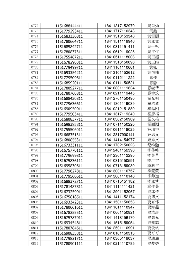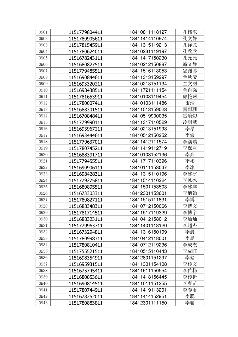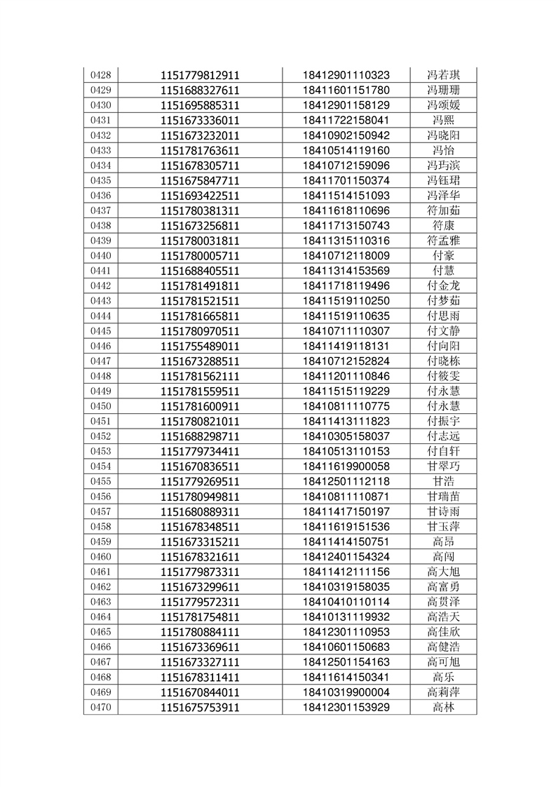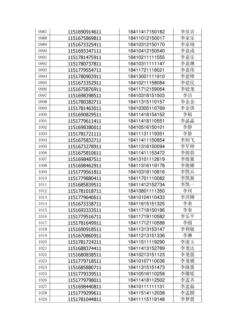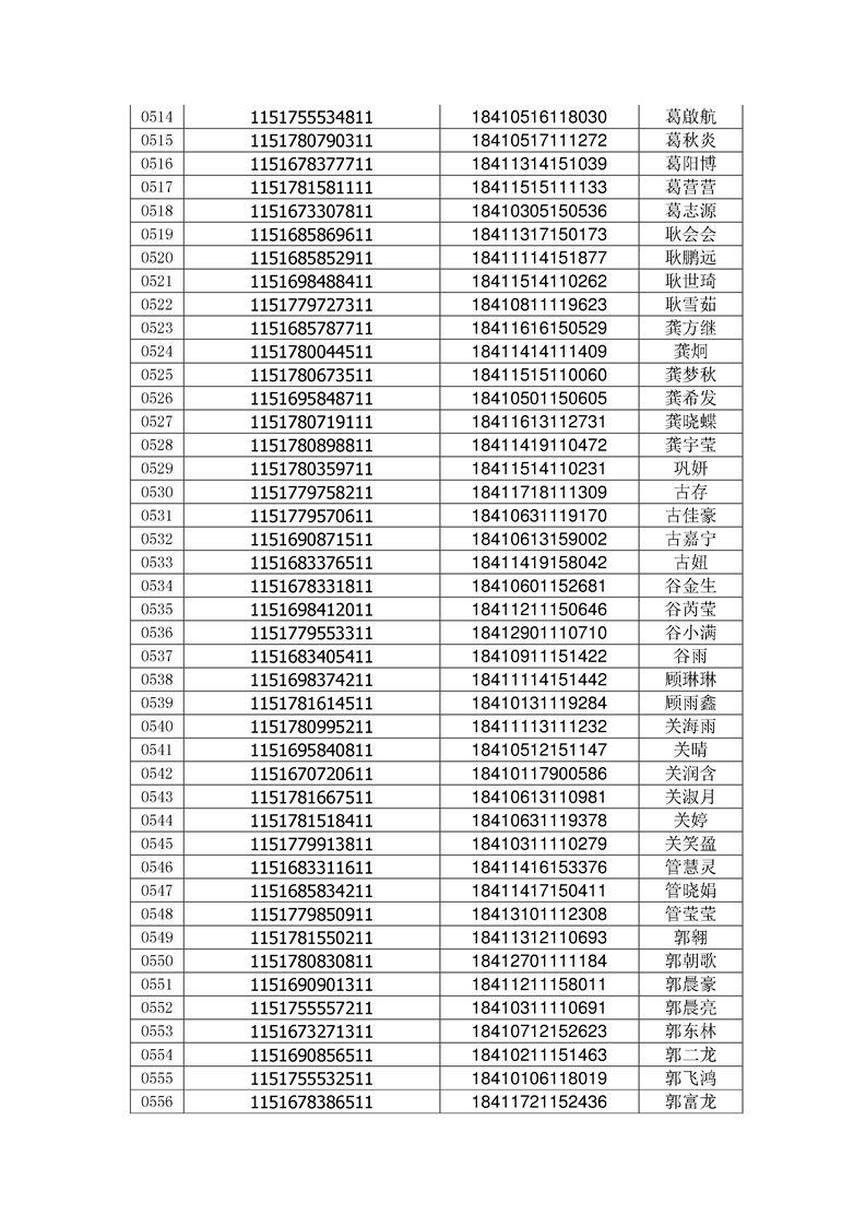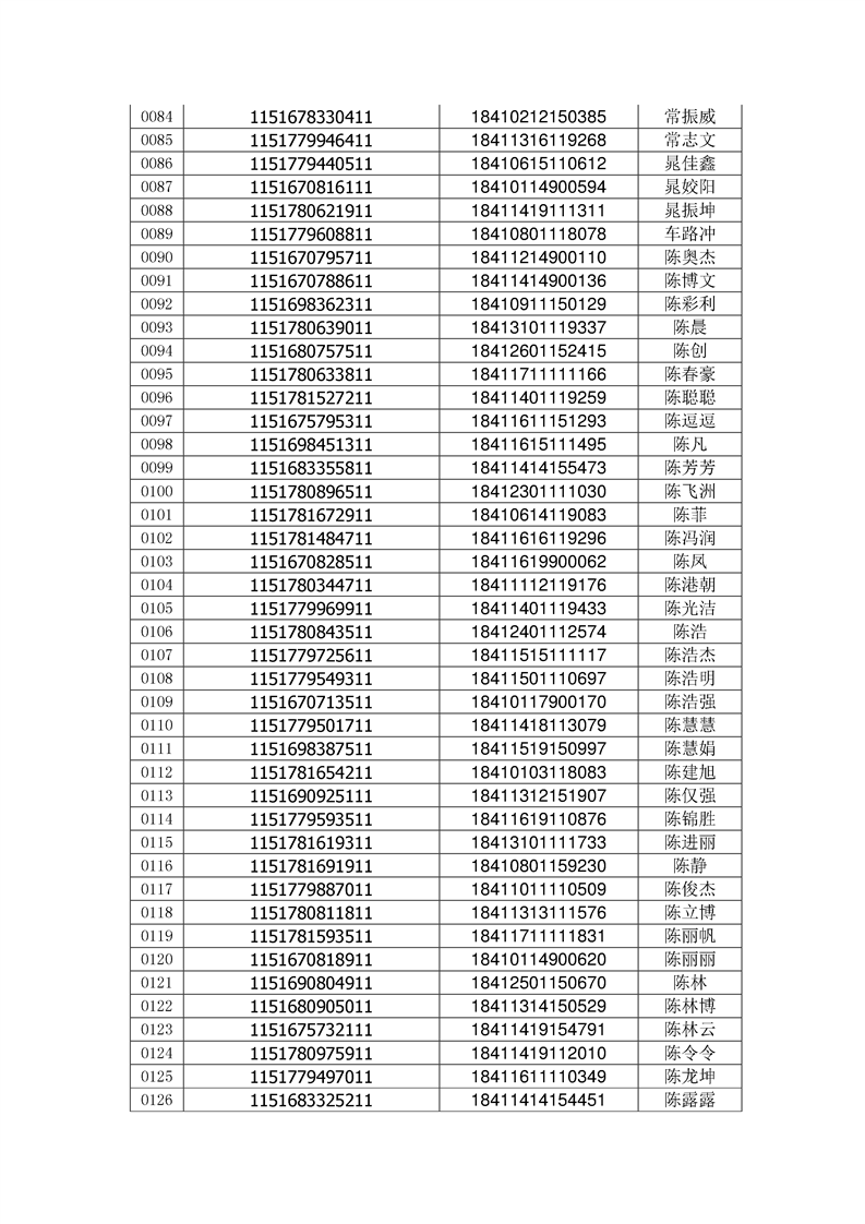2018年高职高专新生录取通知书EMS邮件号(按姓氏排序)