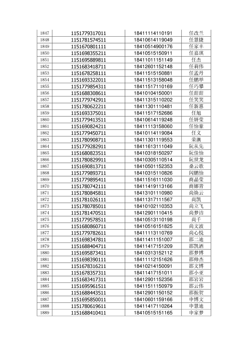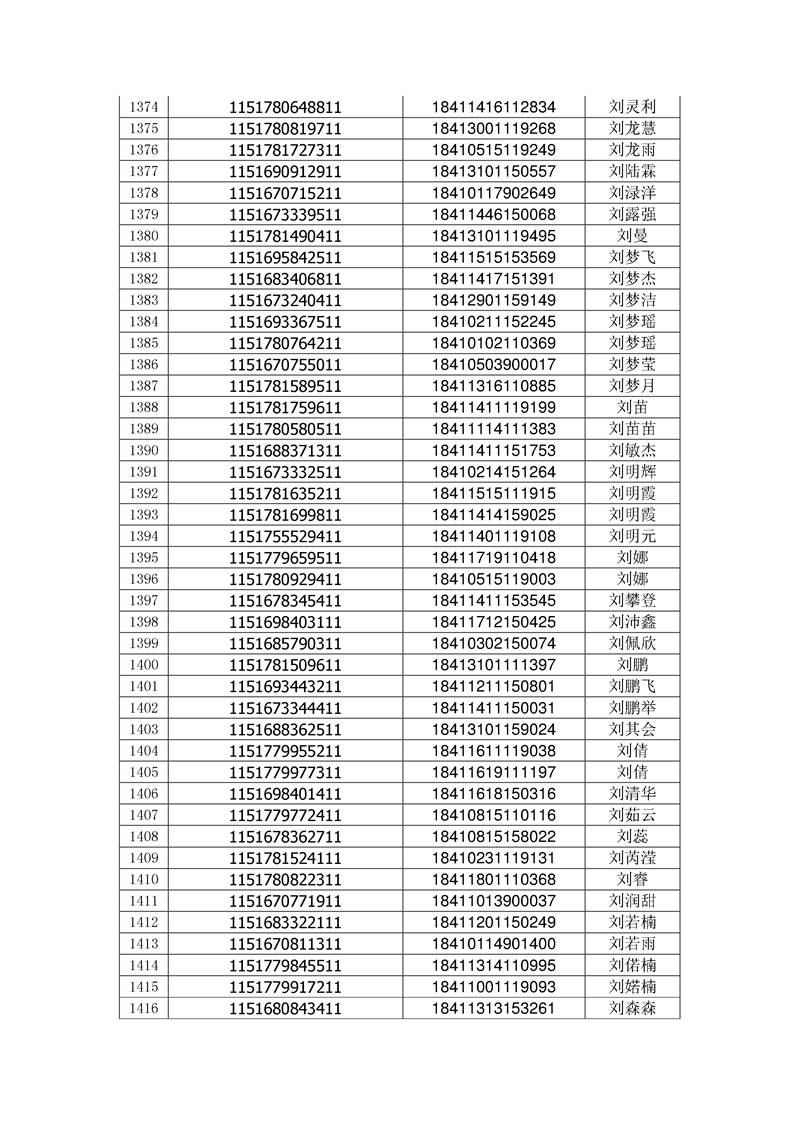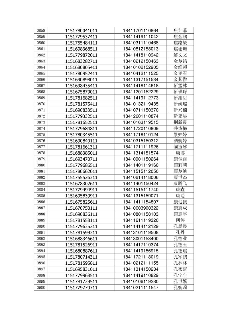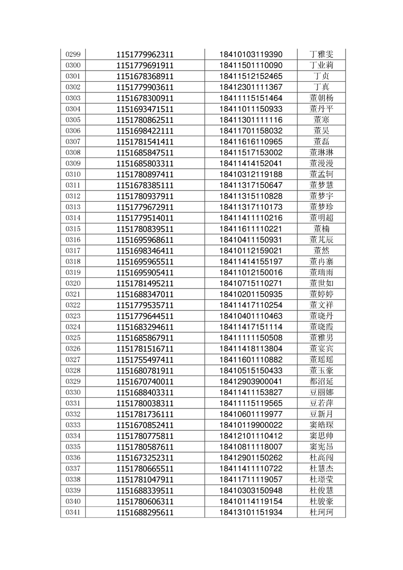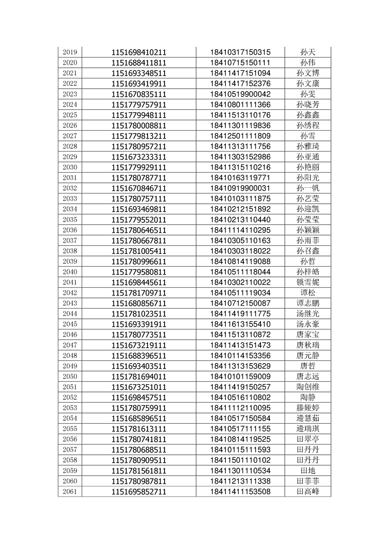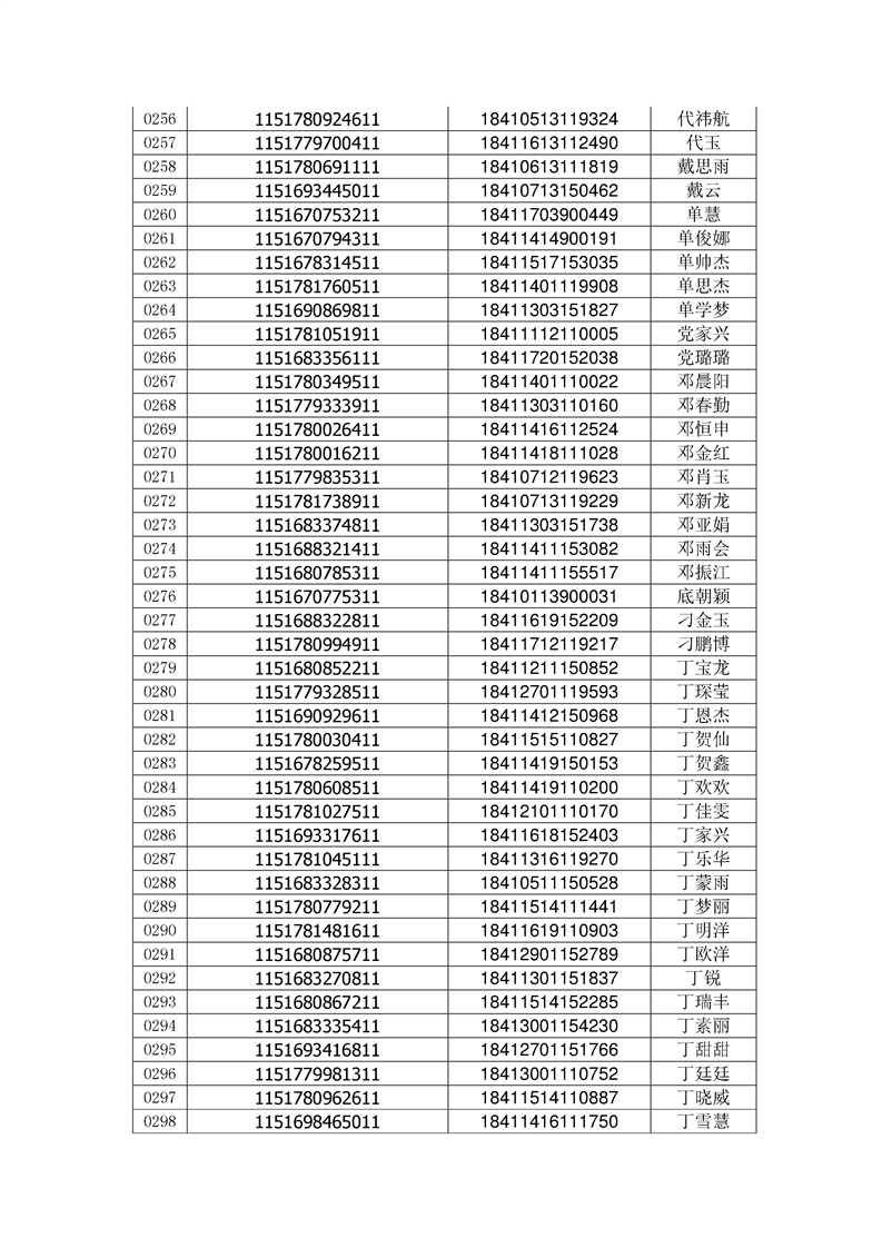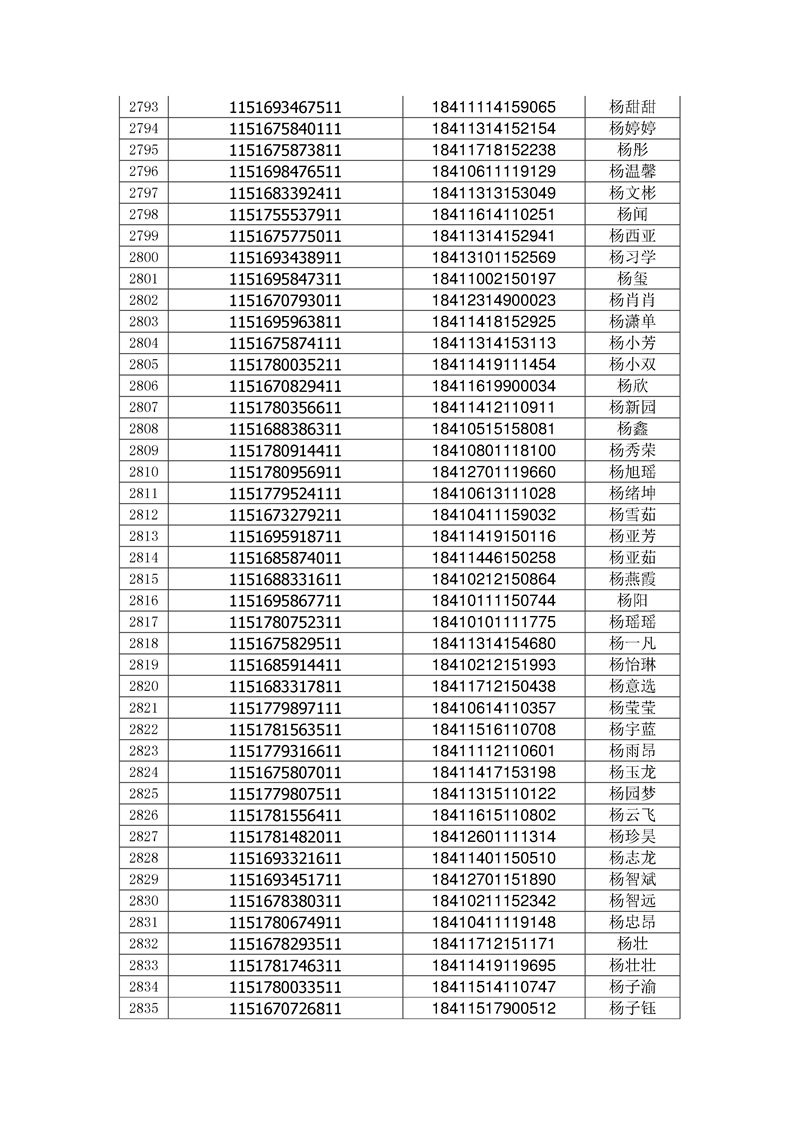 2018年高职高专新生录取通知书EMS邮件号(按姓氏排序)